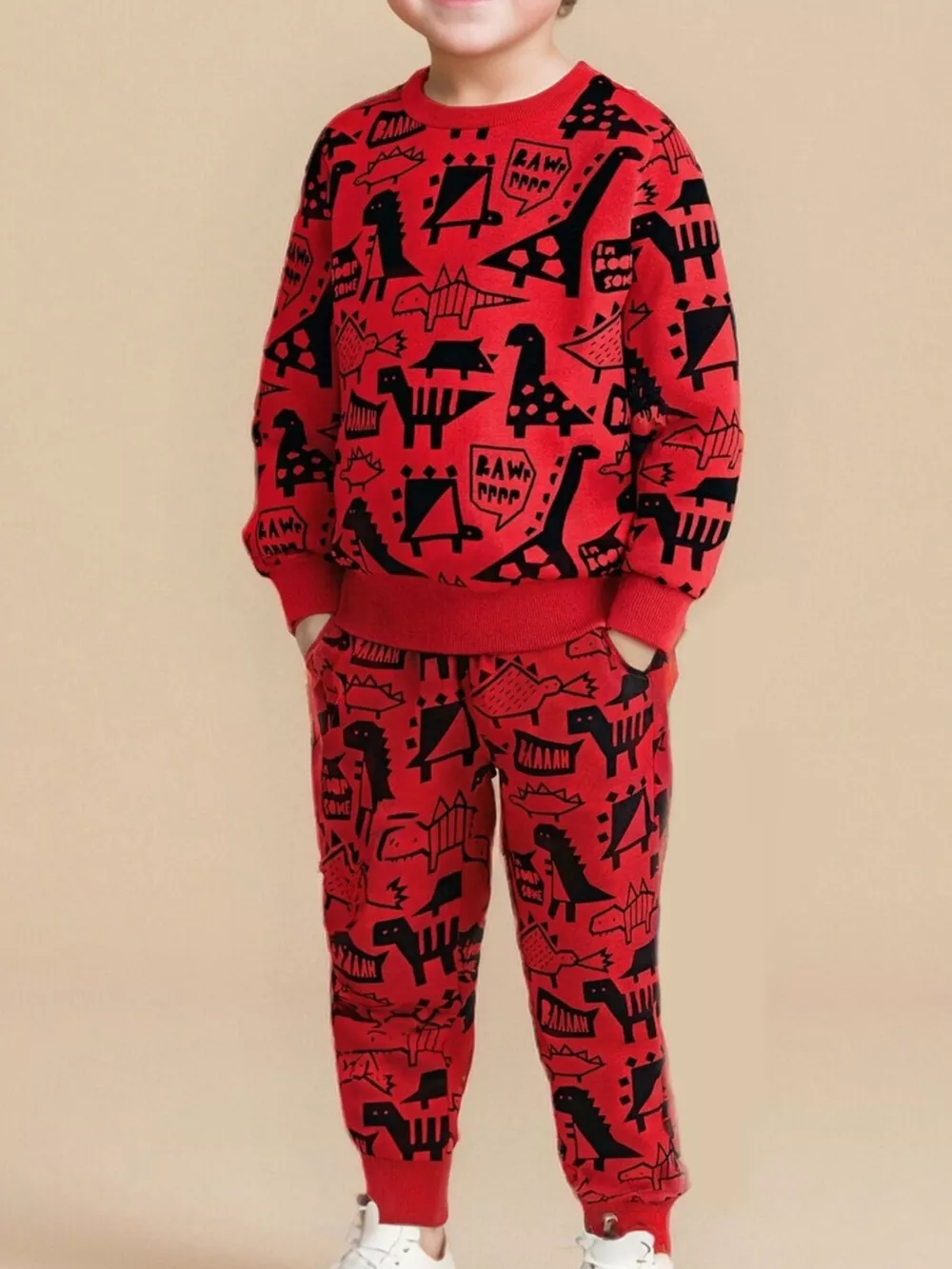 Children's Dinosaur Print Long Sleeve Sweatshirt & Pants Set