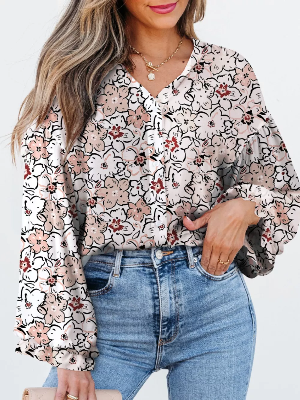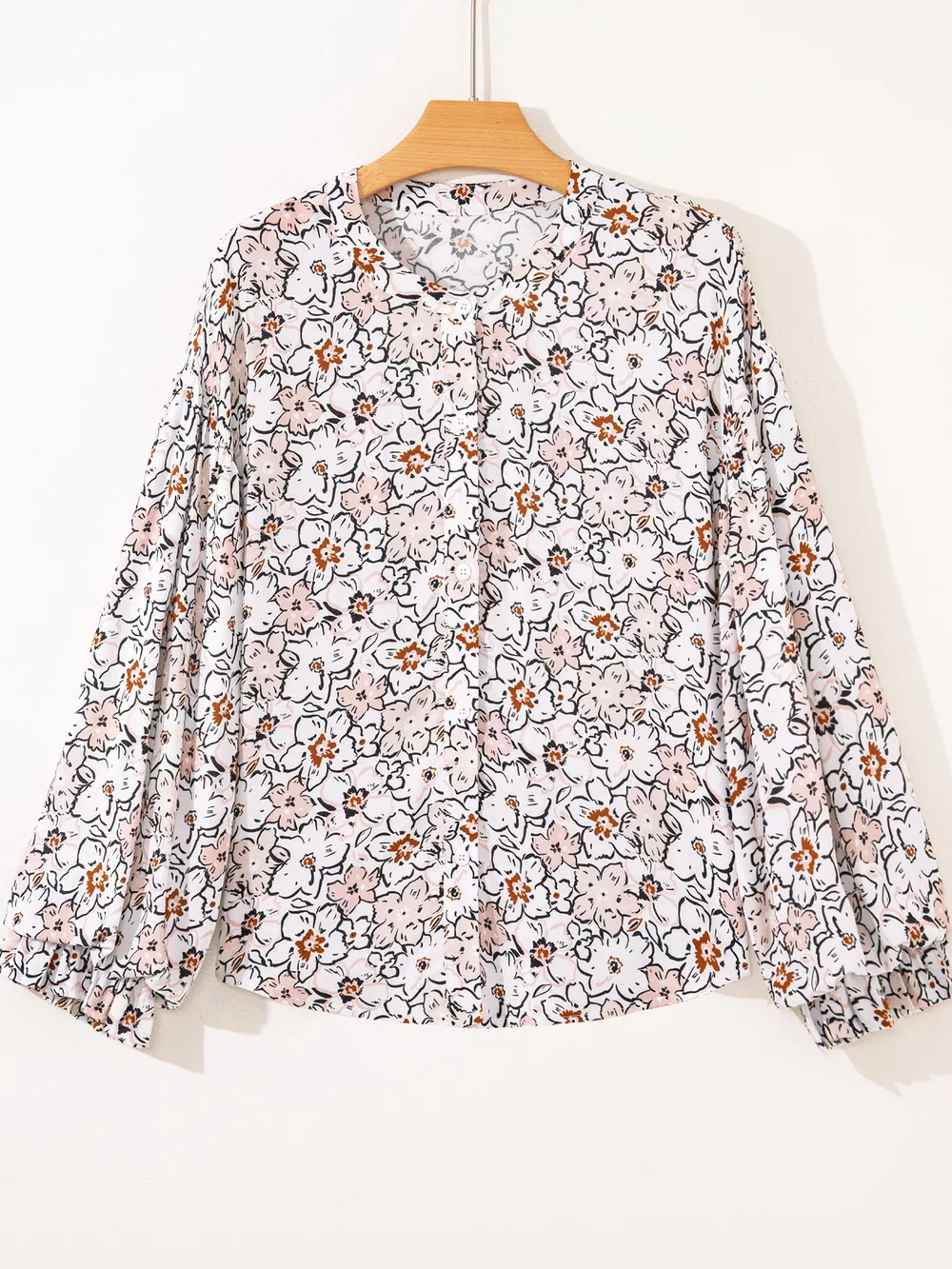 Floral Print Frilled Puff Sleeve Button Down Shirt
