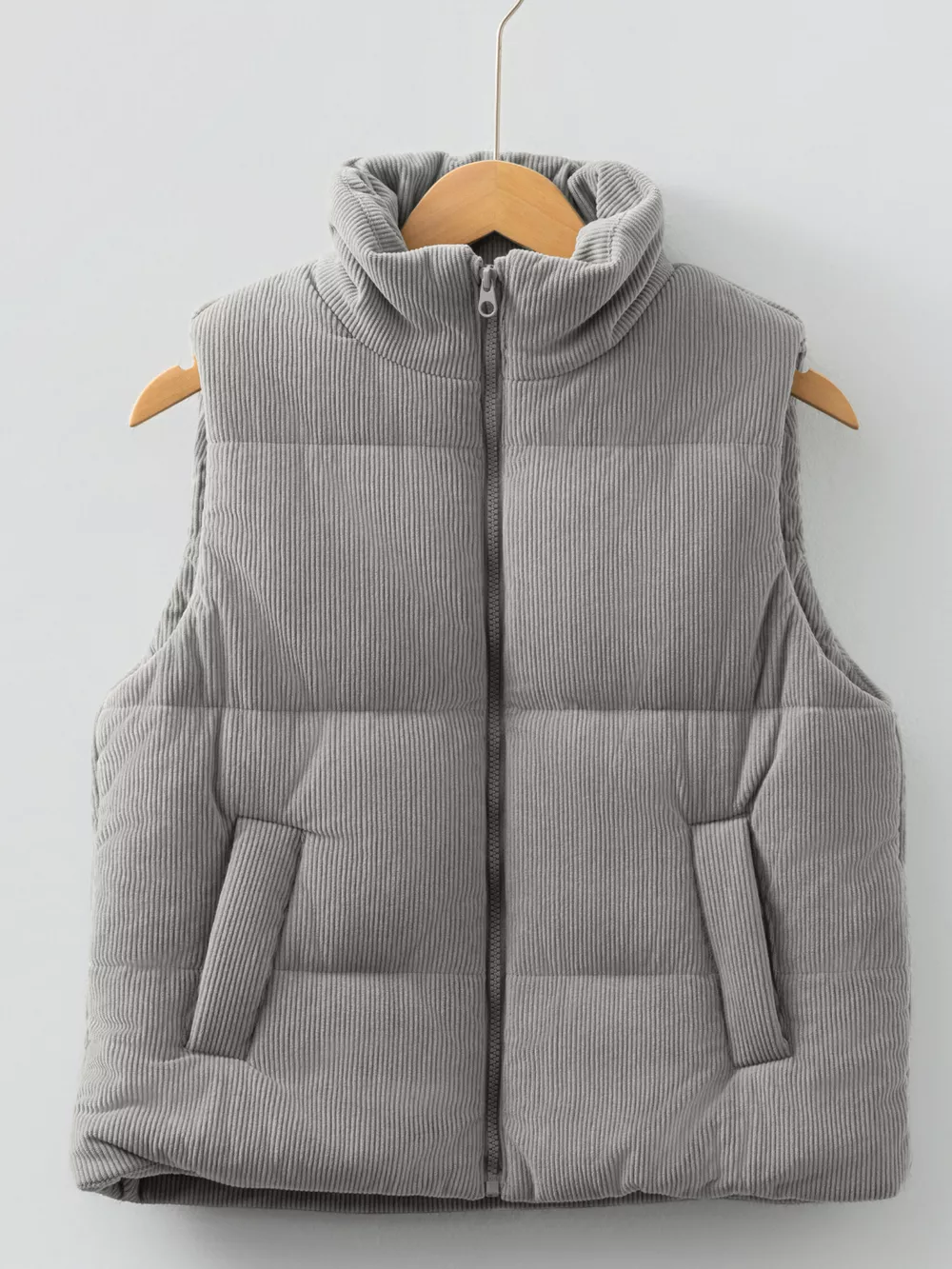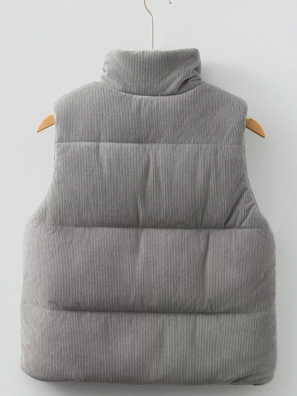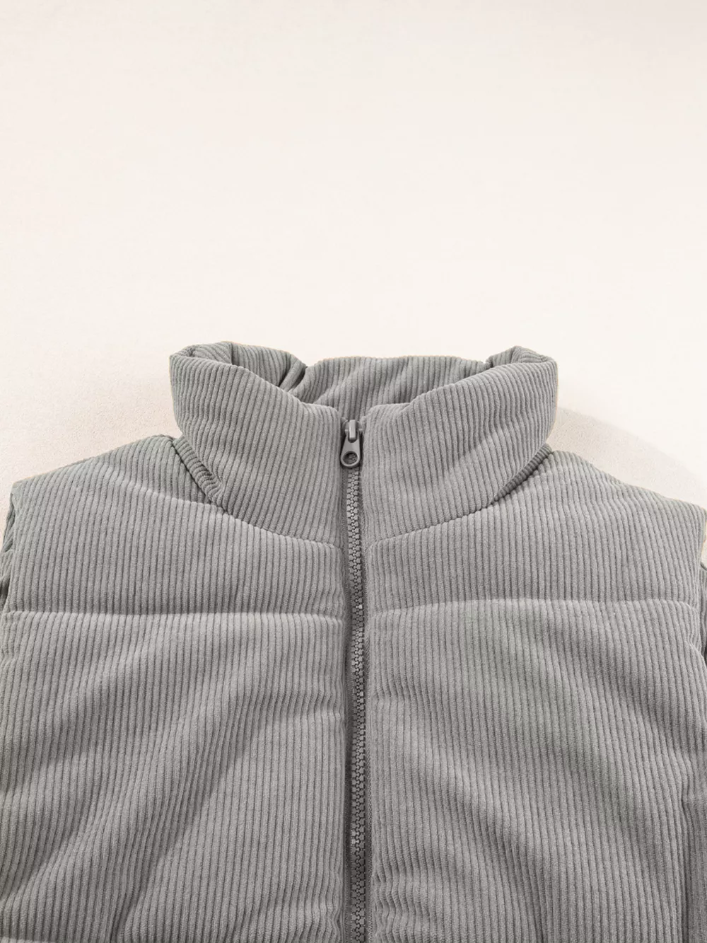 Corduroy Stand Neck Zipped Puffer Vest