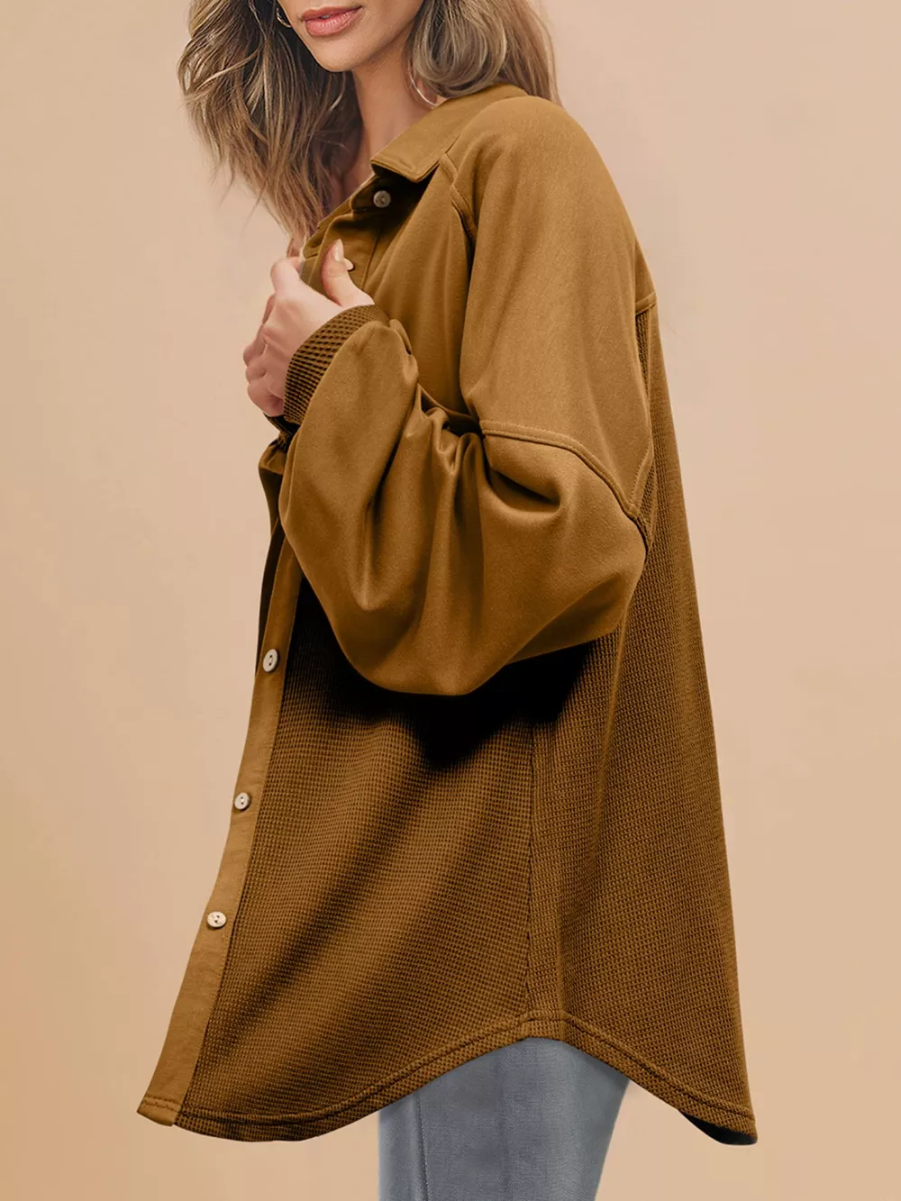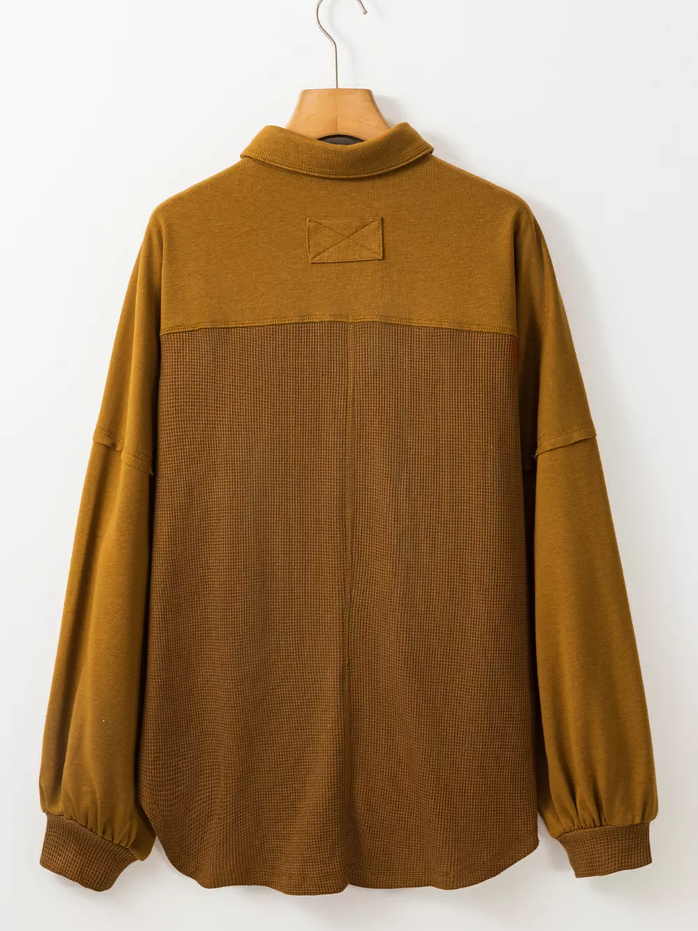Waffle Knit Patchwork Exposed Seam Loose Shacket