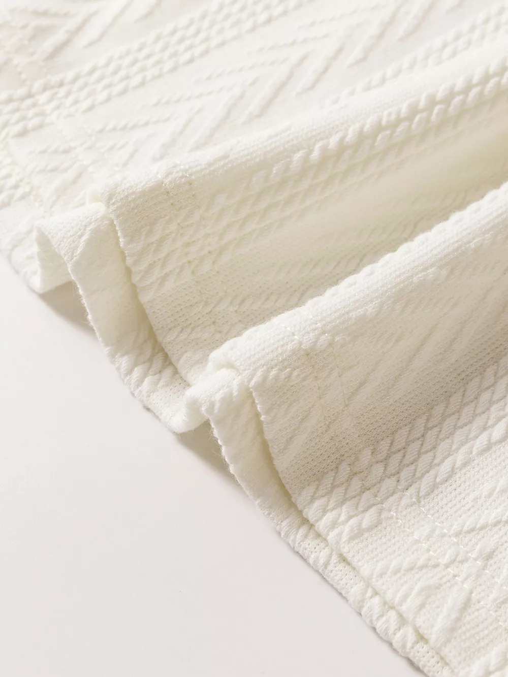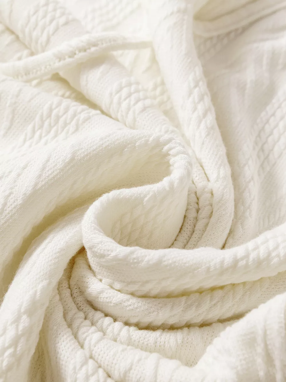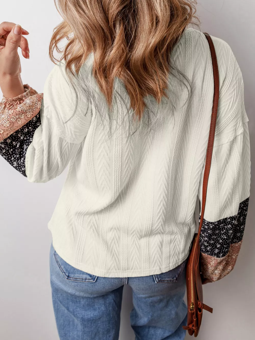 Floral Patchwork Textured Knit Drawstring V Neck Blouse