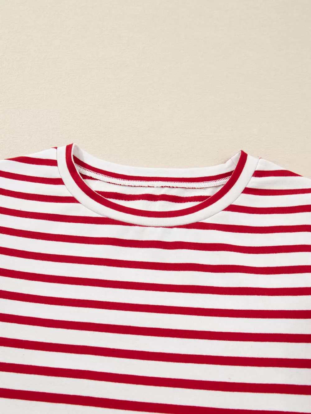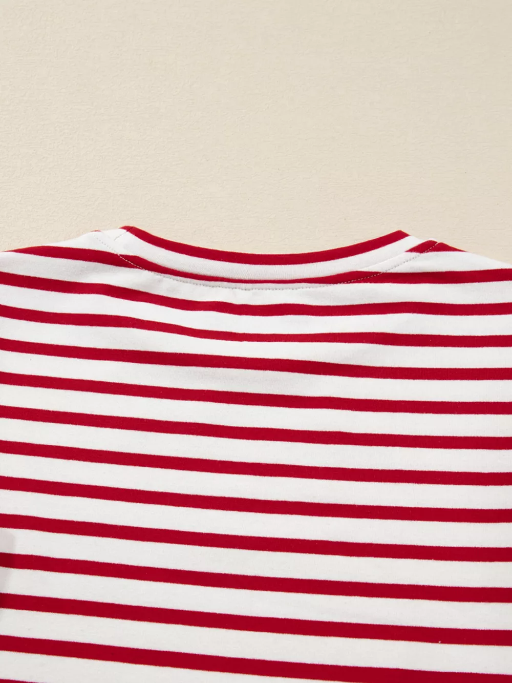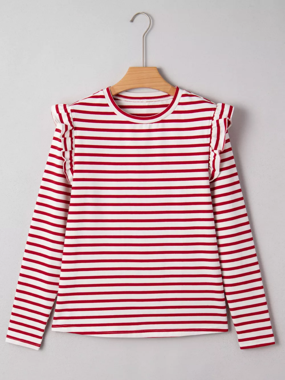 Stripe Round Neck Ruffle Trim Long Sleeve Top
