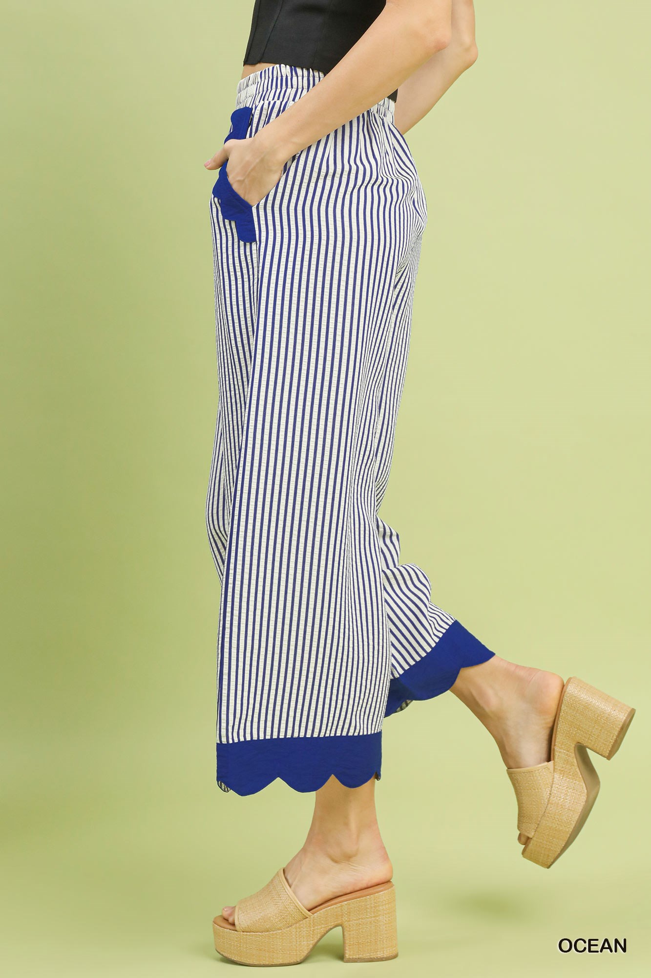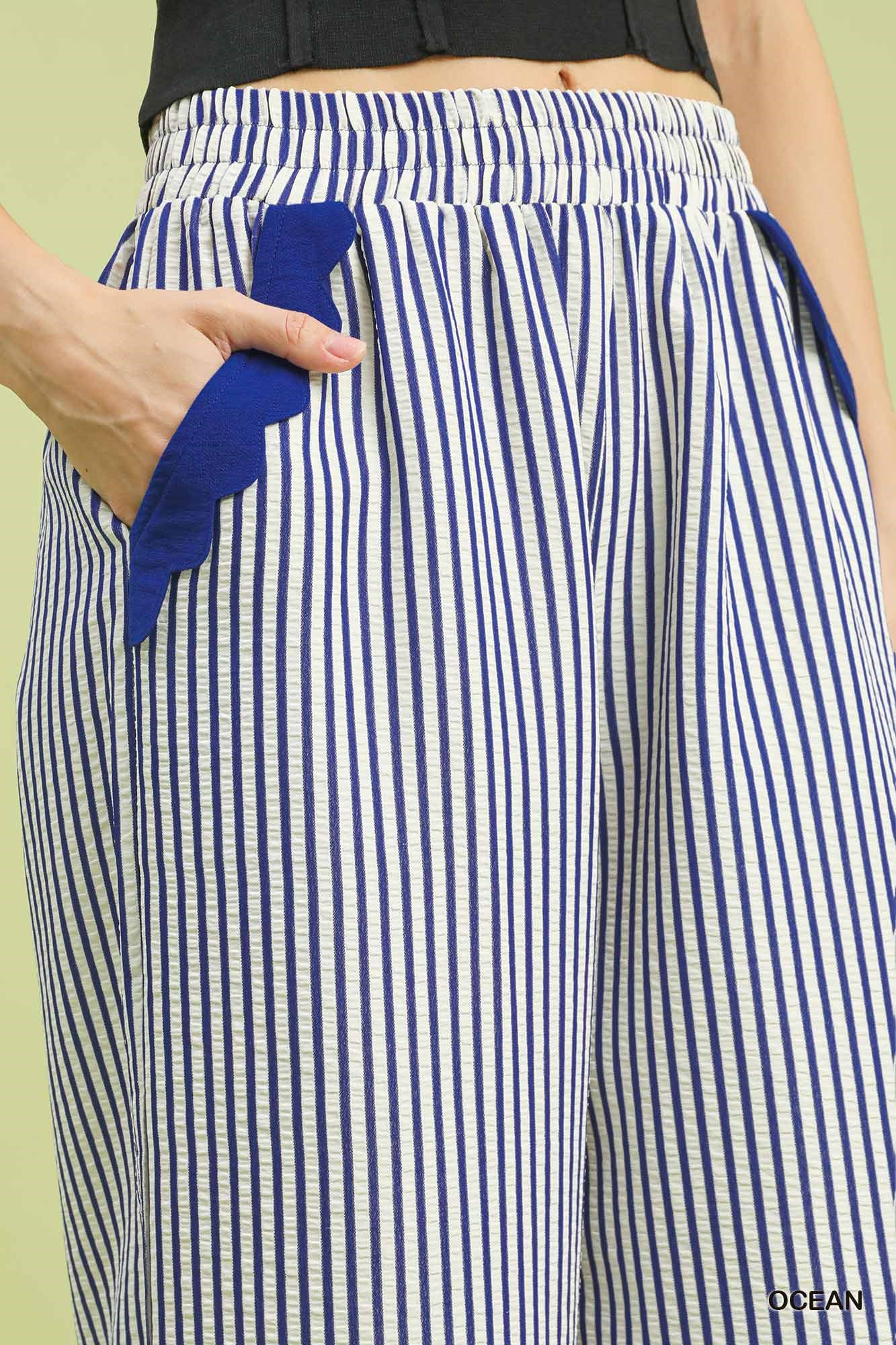 Umgee Stripe Scallop Hem Wide Leg Pants