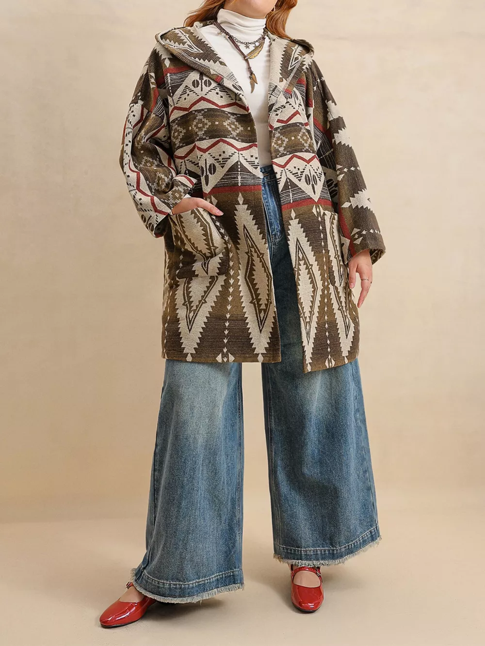 Plus Size Aztec Print Hooded Open Front Cardigan