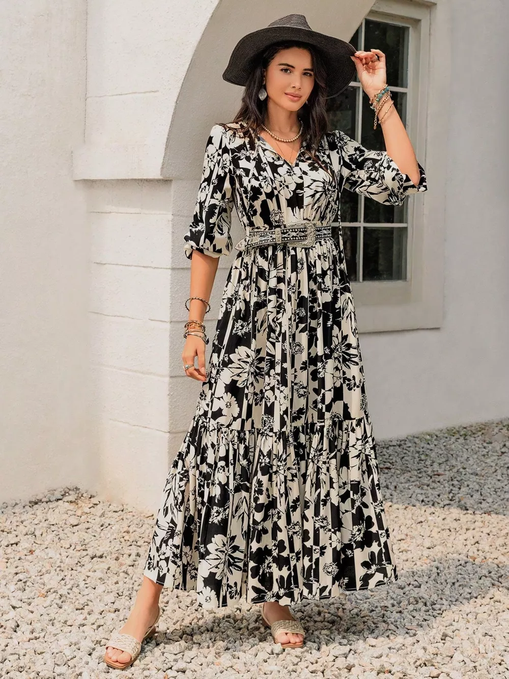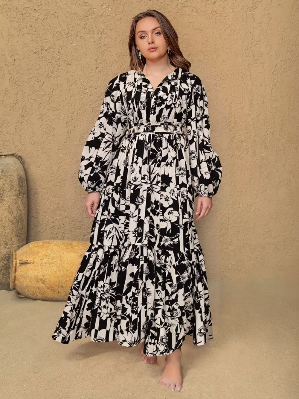 Plus Size Floral Print Balloon Sleeve Maxi Dress