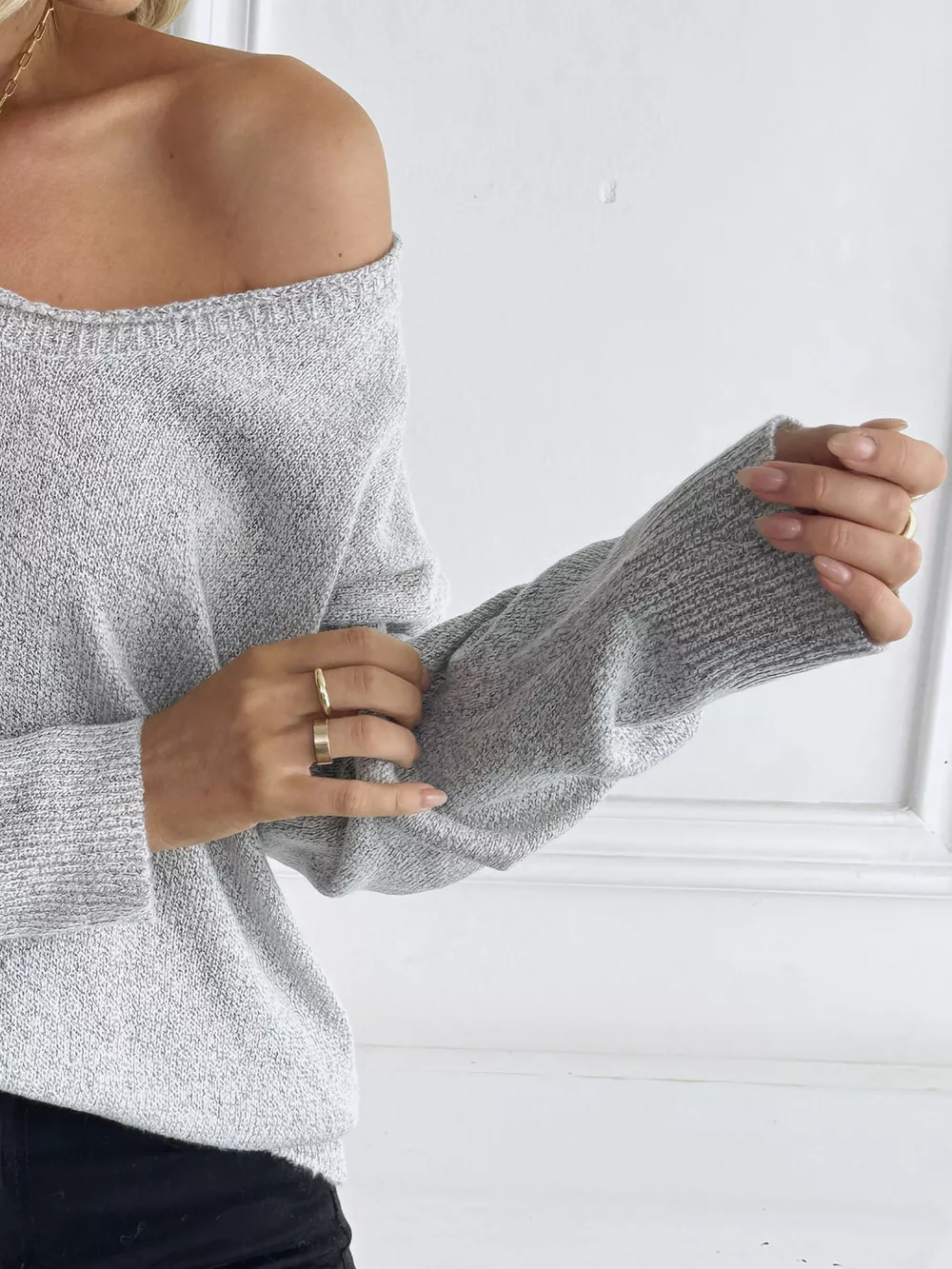 V-Neck Long Sleeve Knit Top