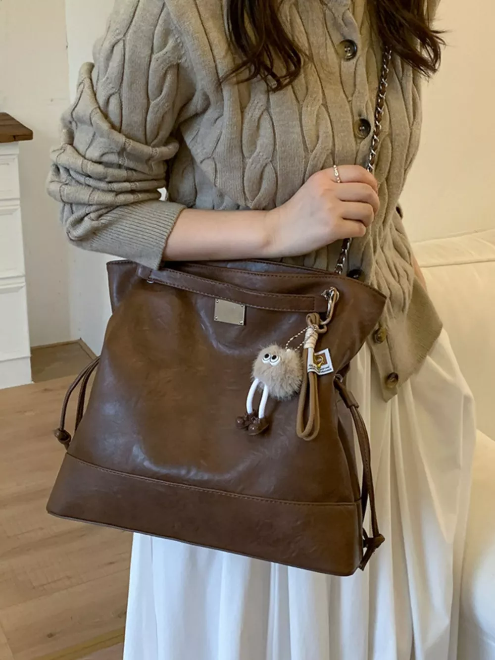 Chain Strap Faux Leather Tote Bag