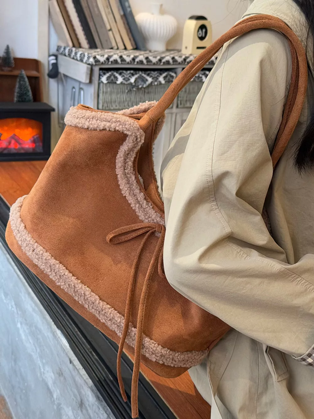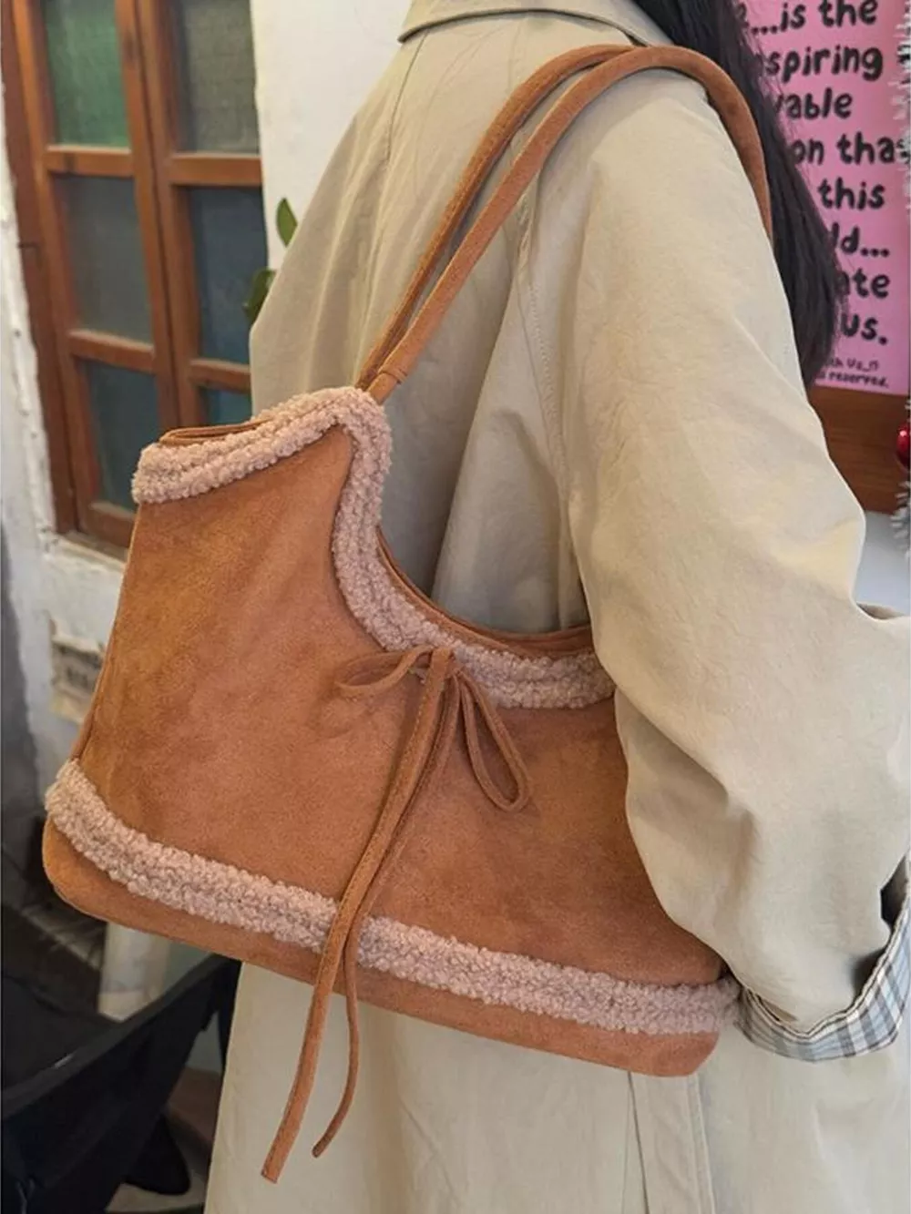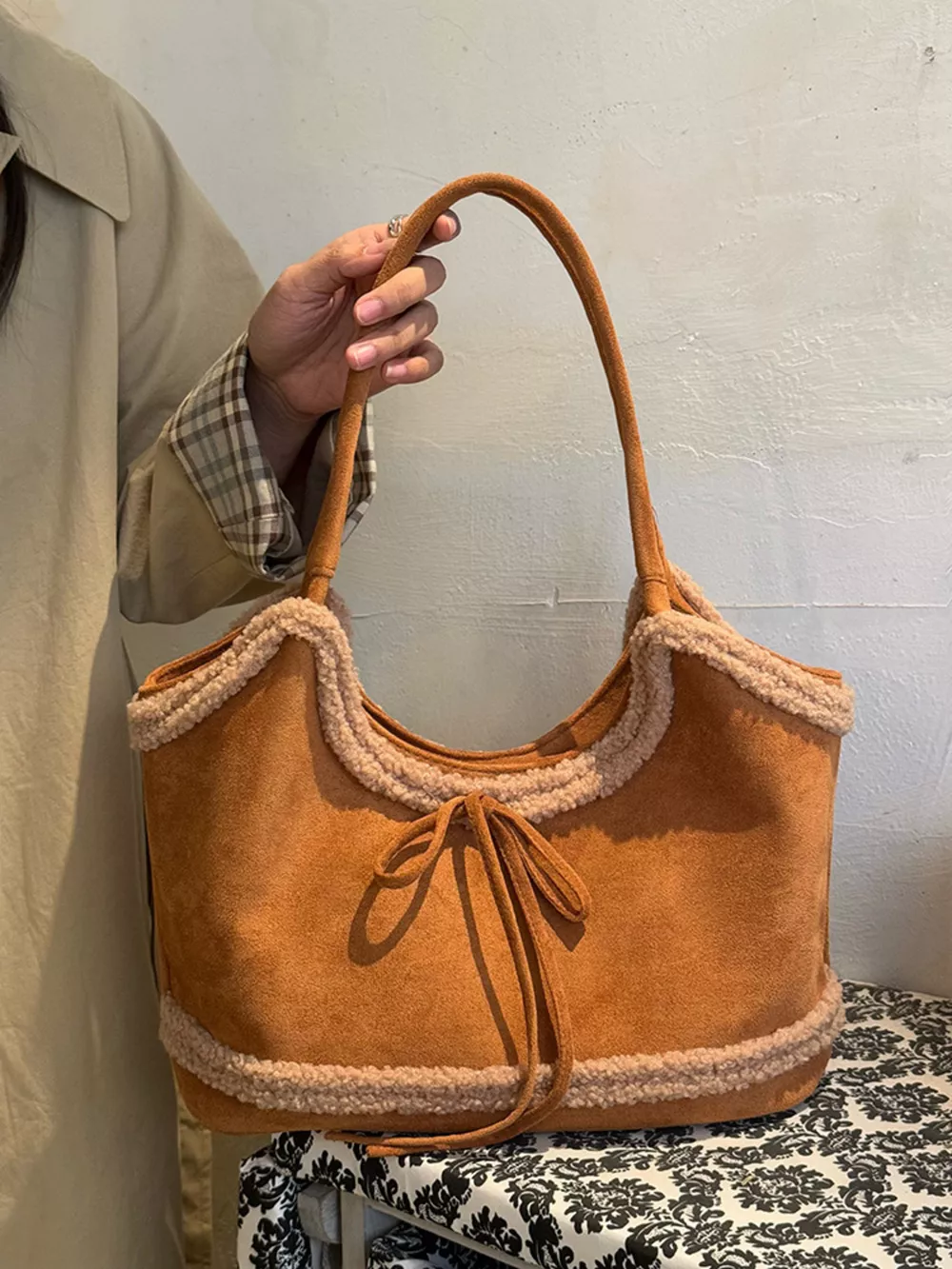 Plush Trim Shoulder Bag