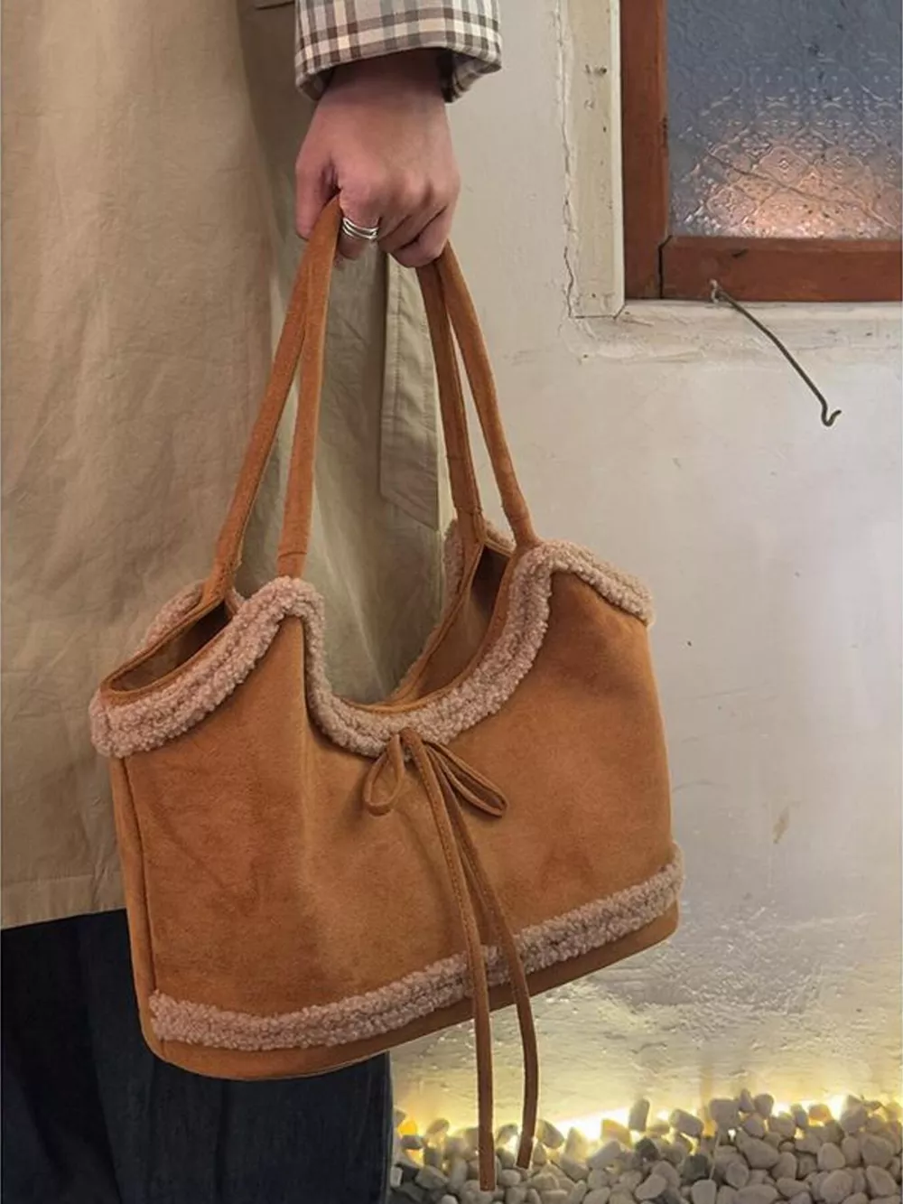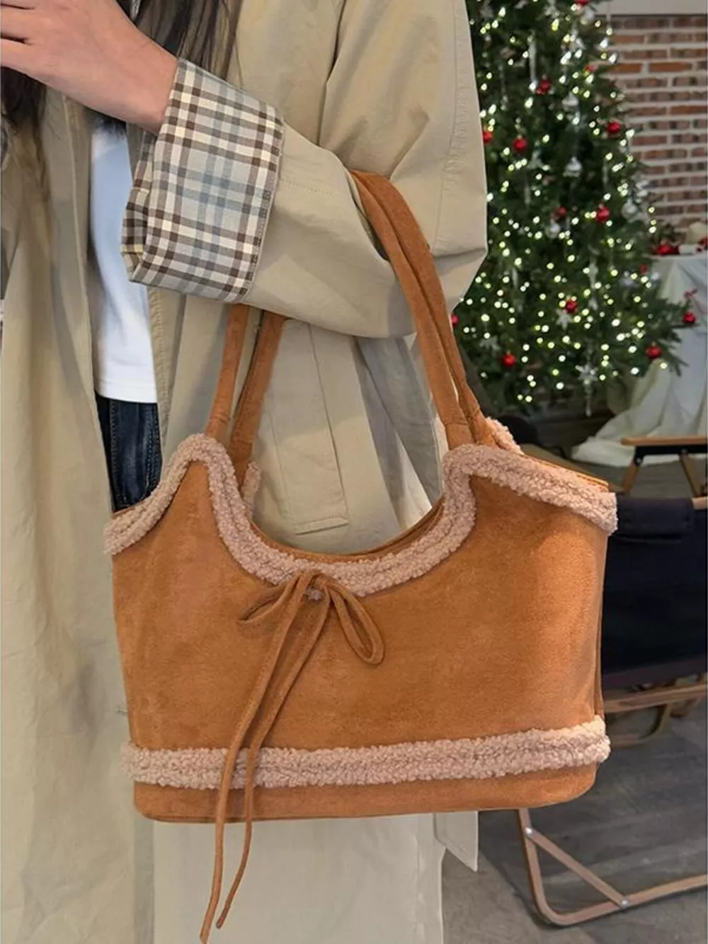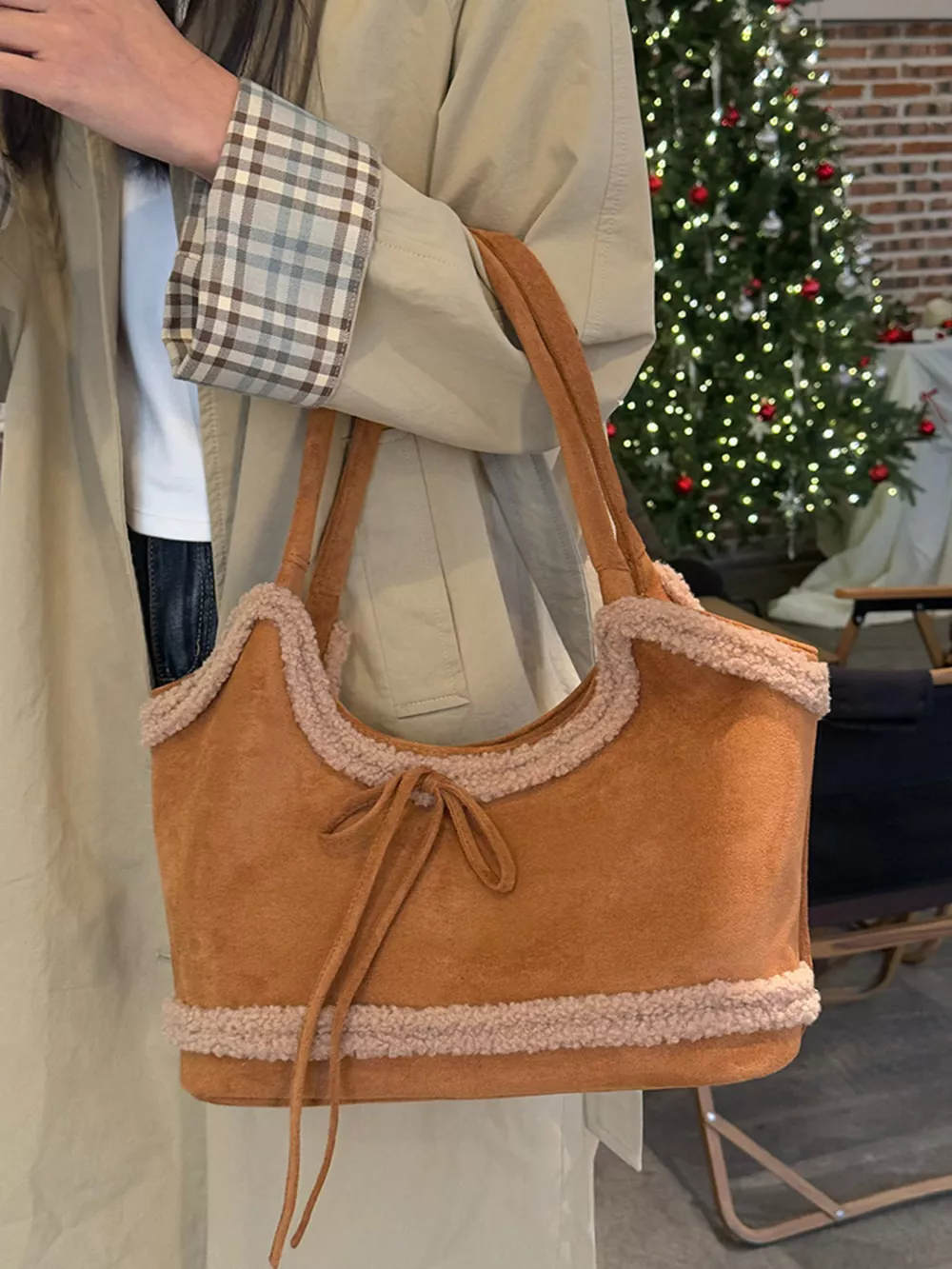 Plush Trim Shoulder Bag