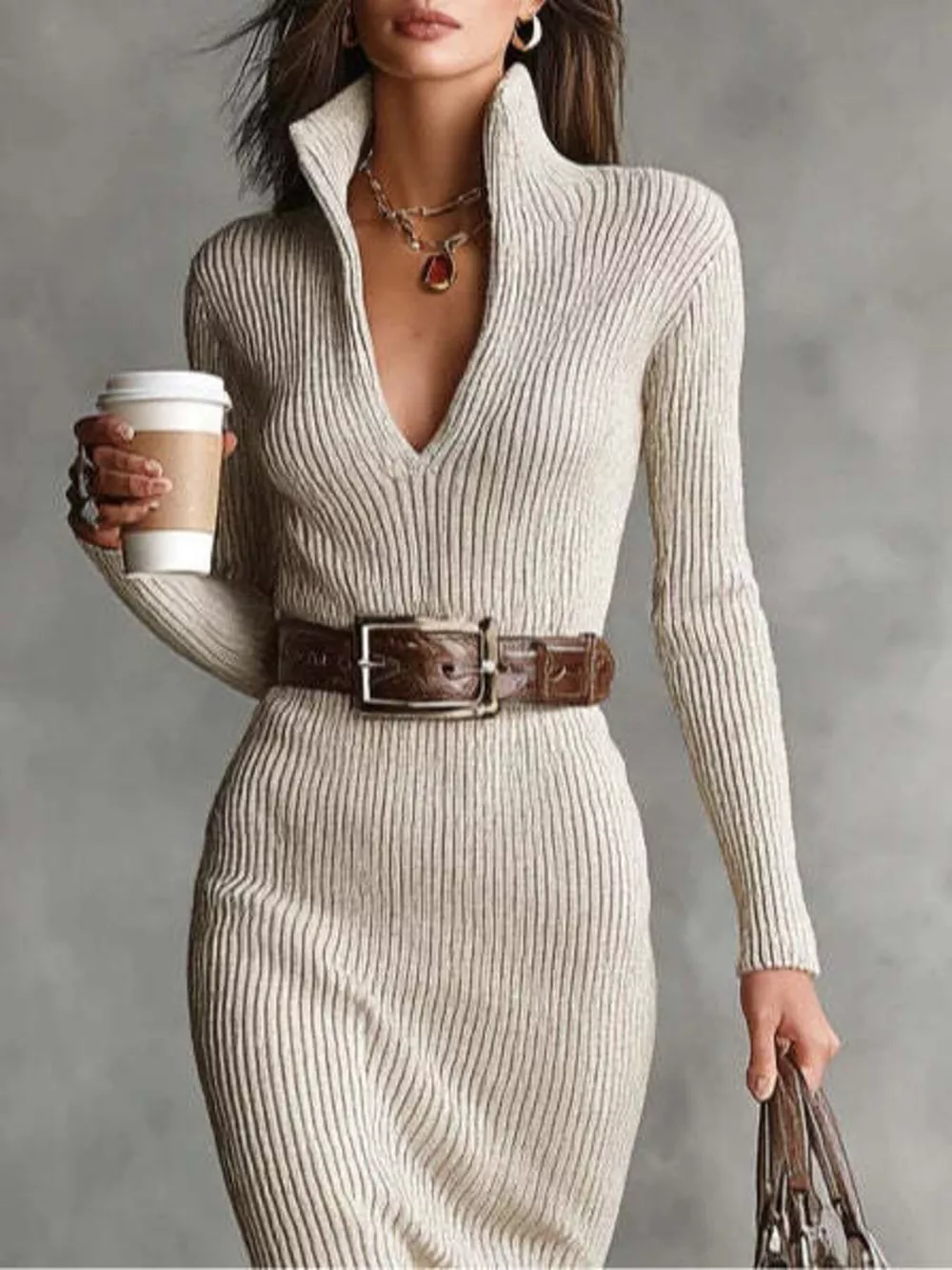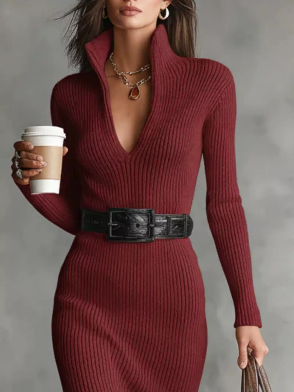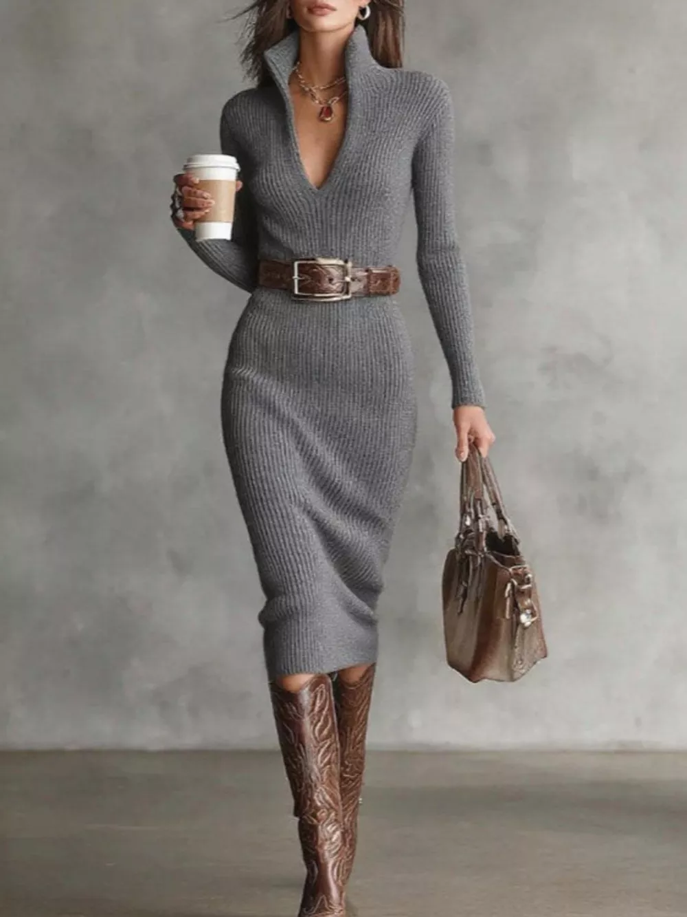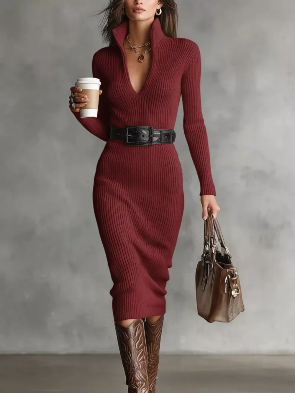 Full Size Ribbed Knit Turtleneck Sweater Dress Plus Size