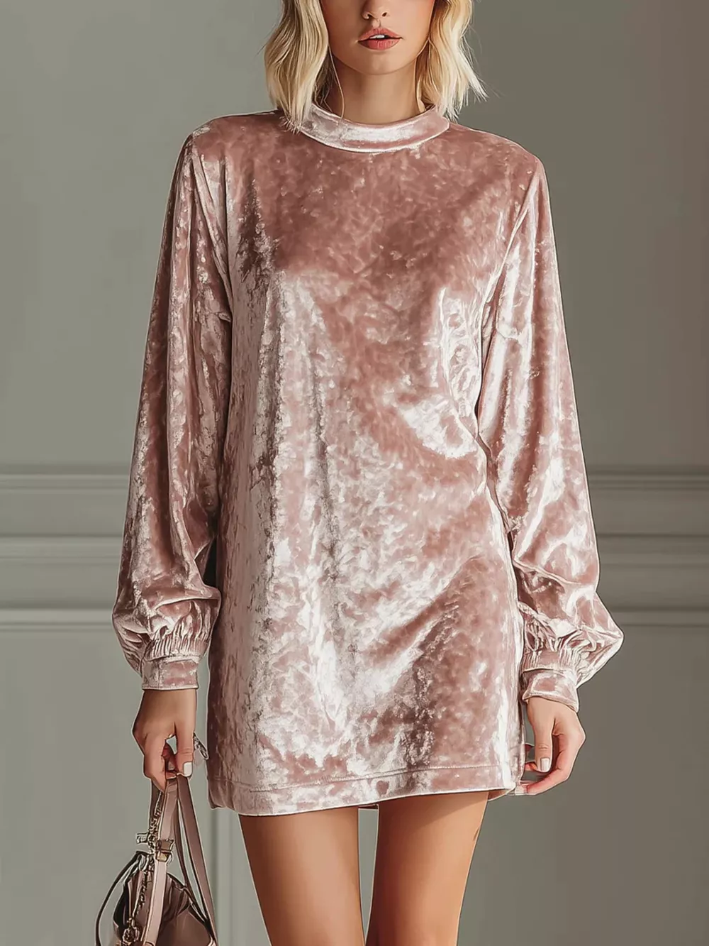 Full Size Velvet Long Sleeve Mini Dress Plus Size