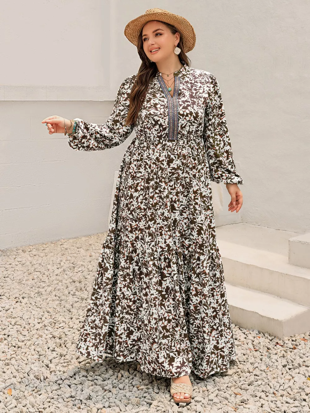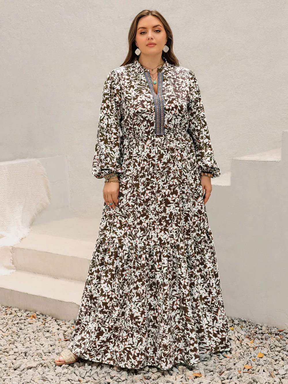 Plus Size Floral Print Long Sleeve Maxi Dress