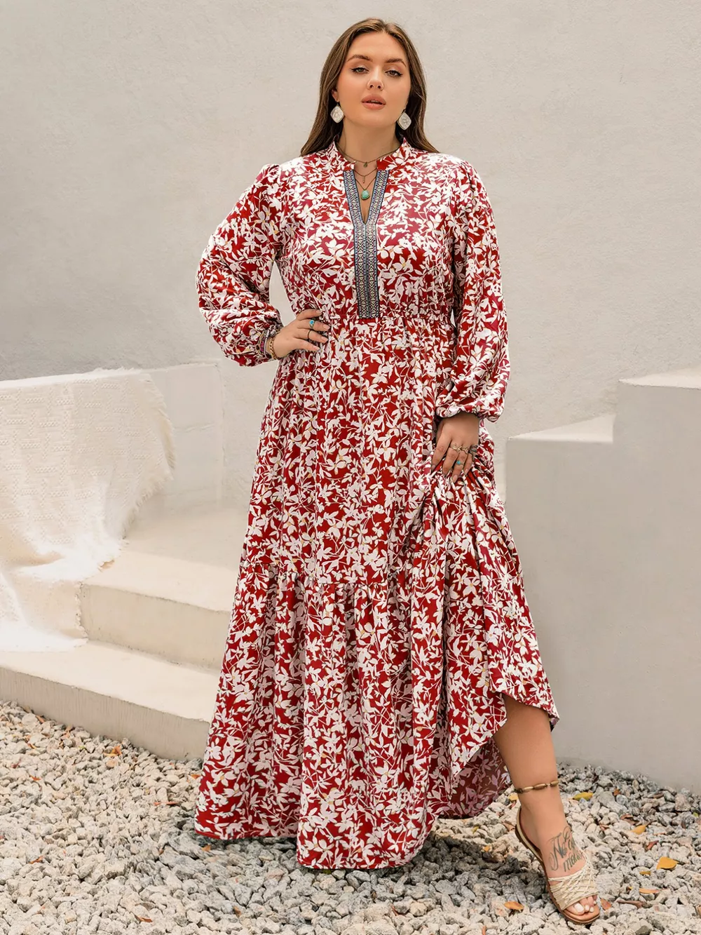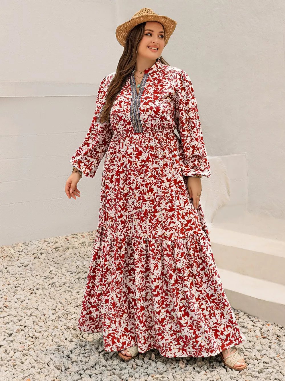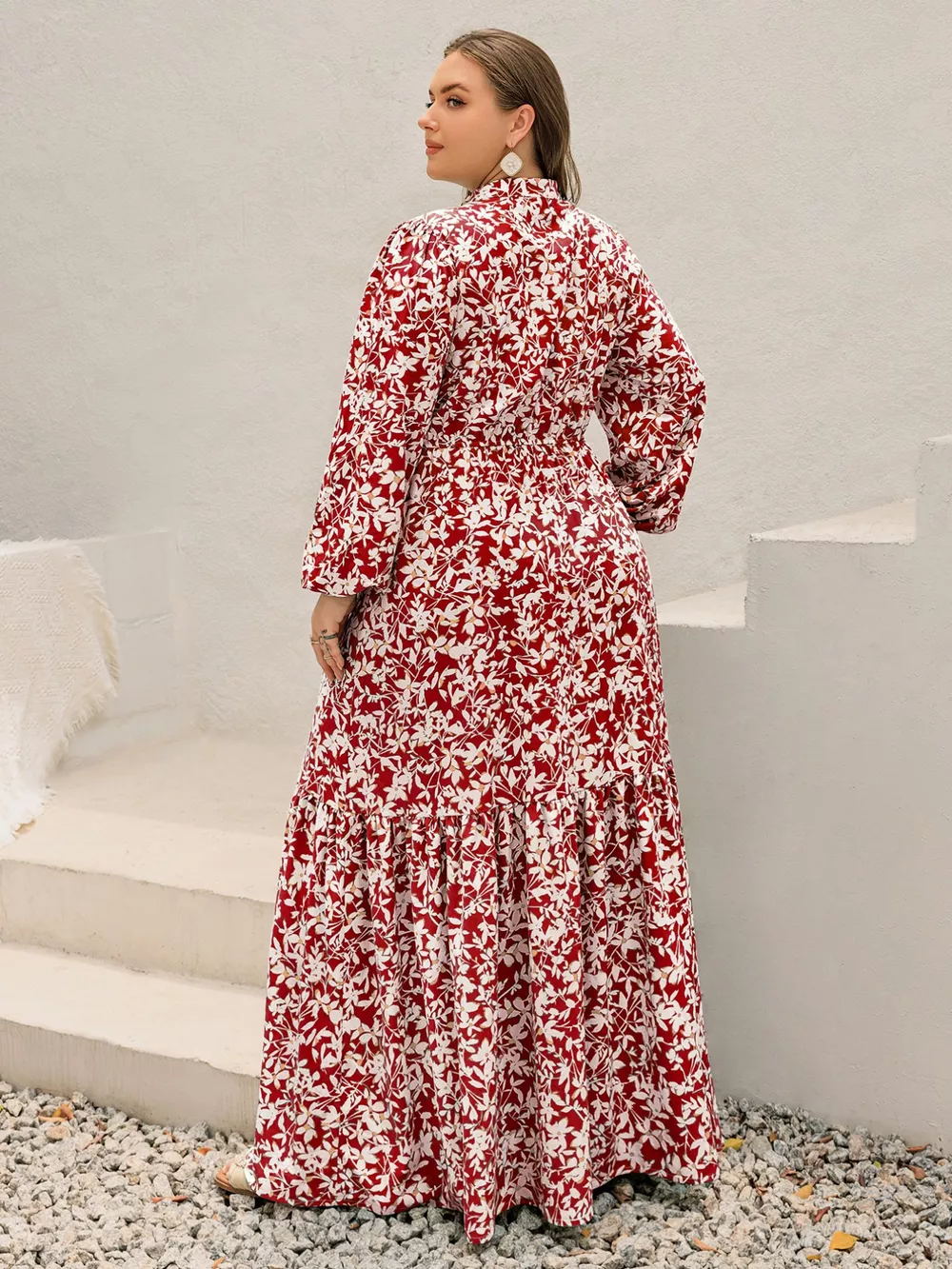 Plus Size Floral Print Long Sleeve Maxi Dress