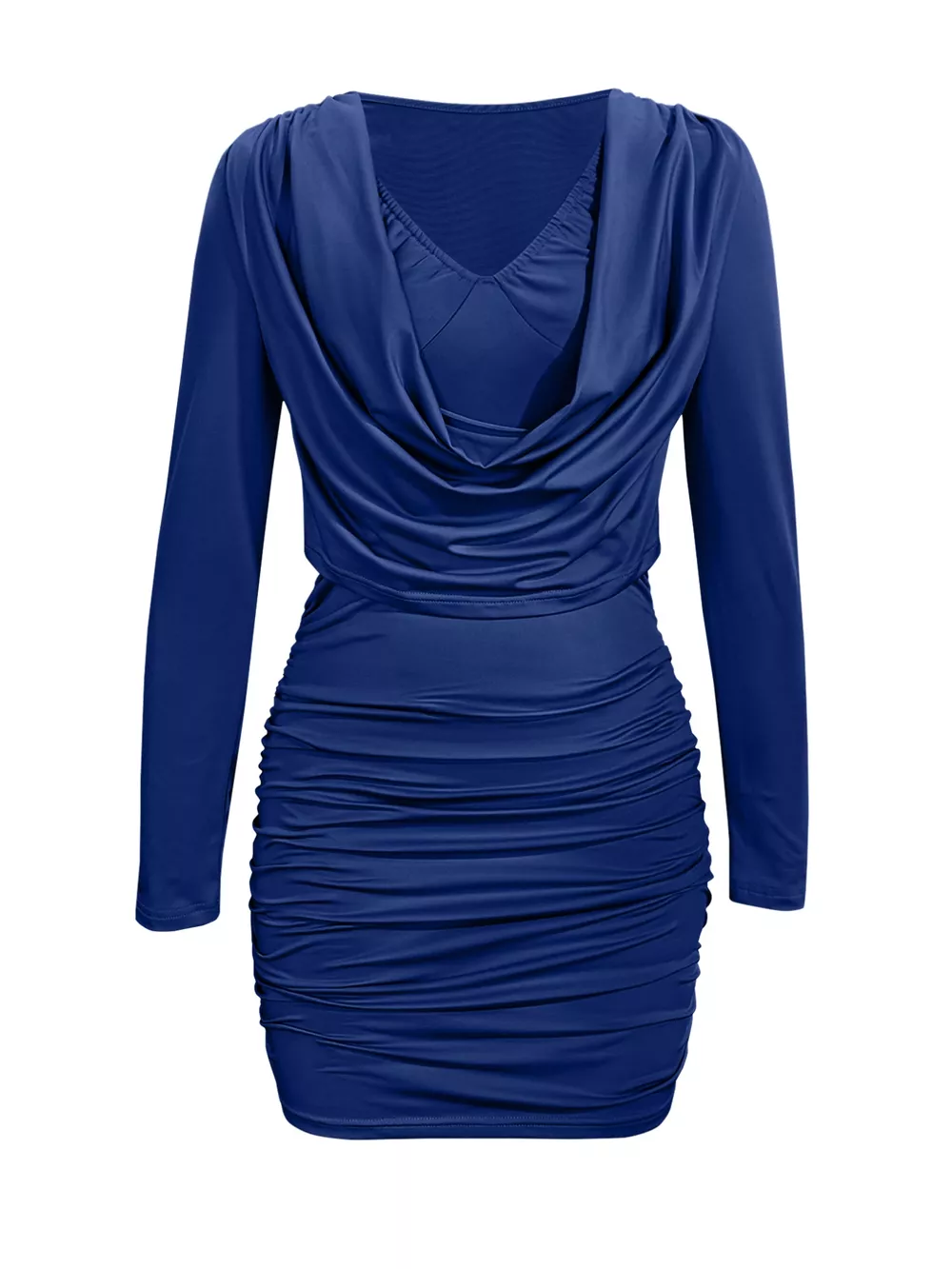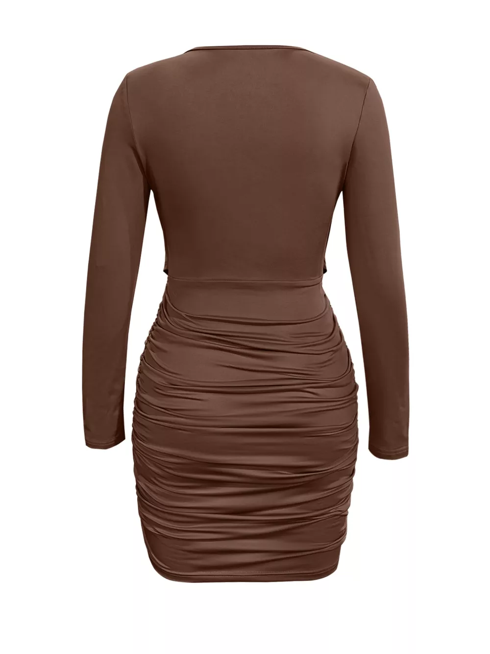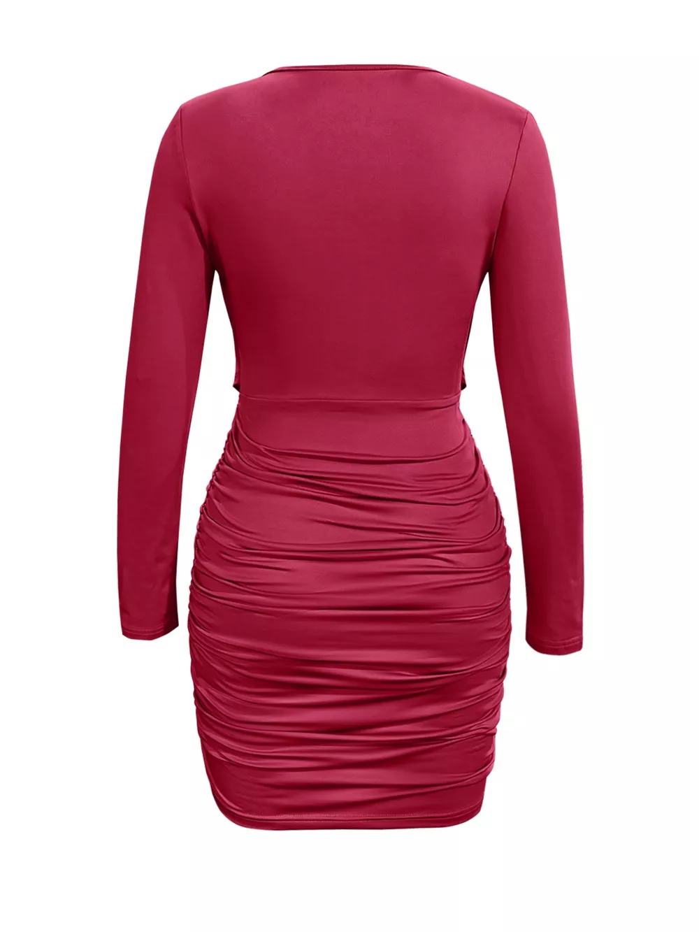 Draped V-Neck Long Sleeve Bodycon Mini Dress