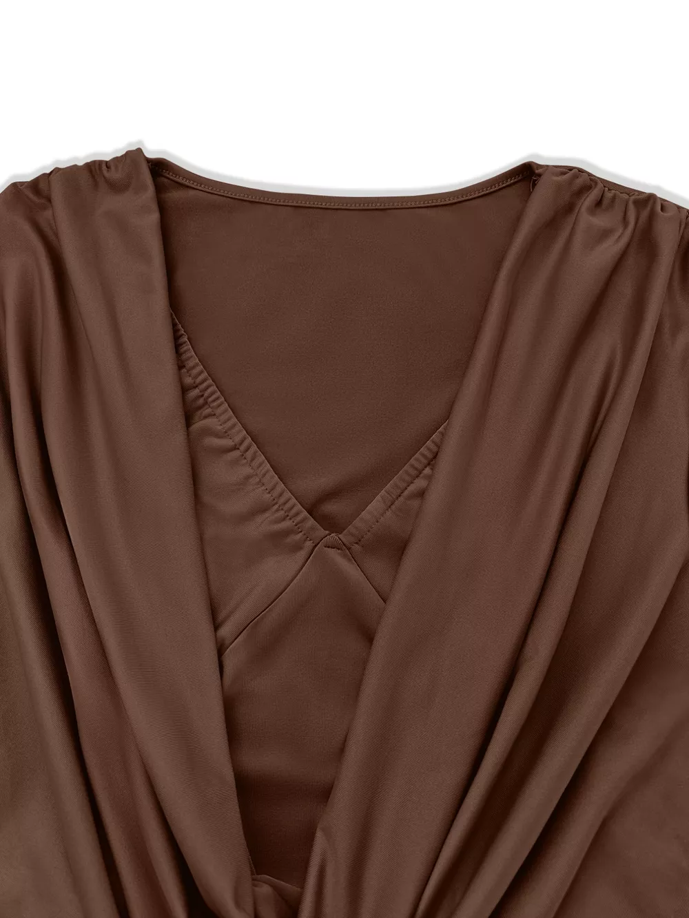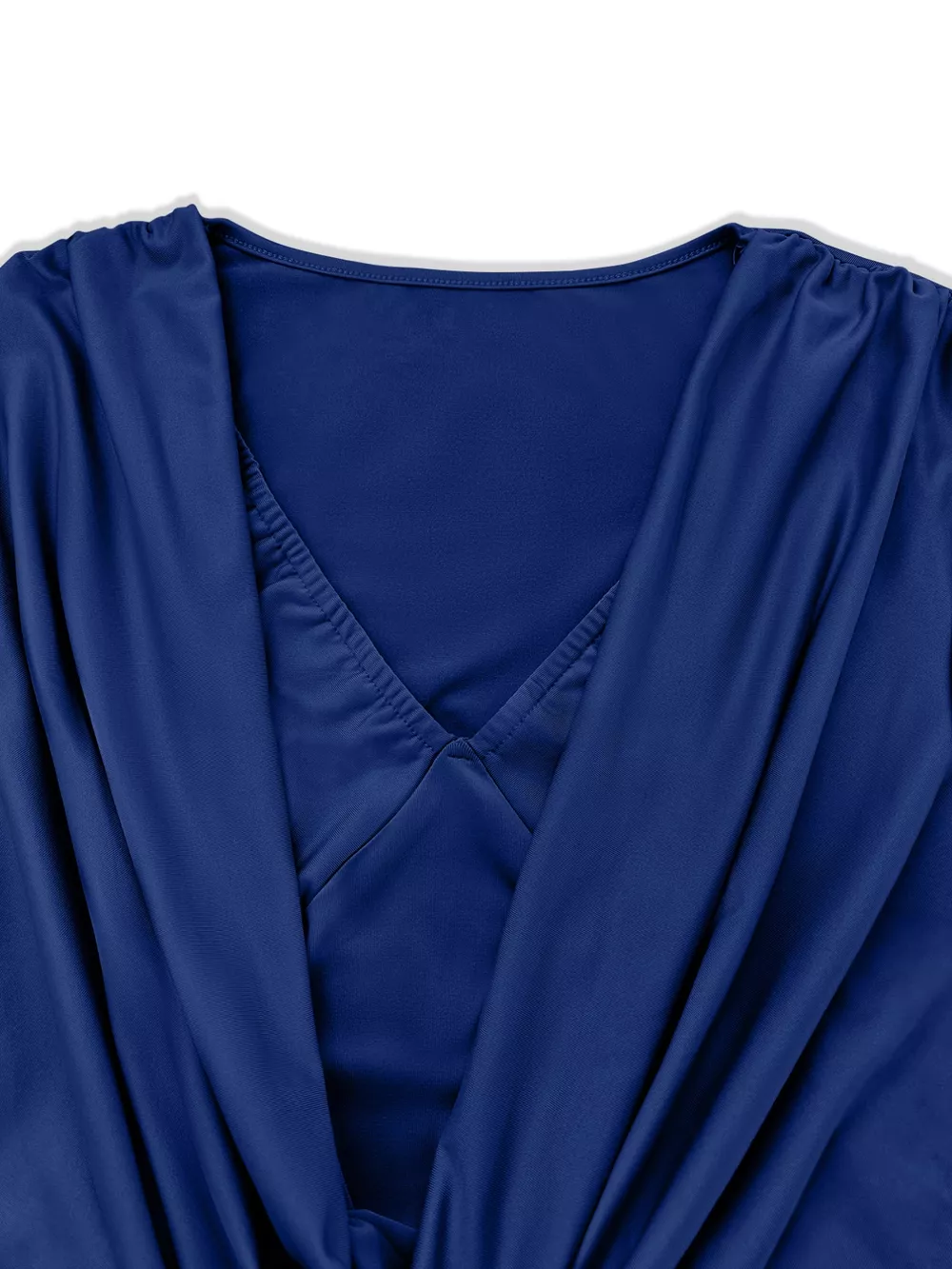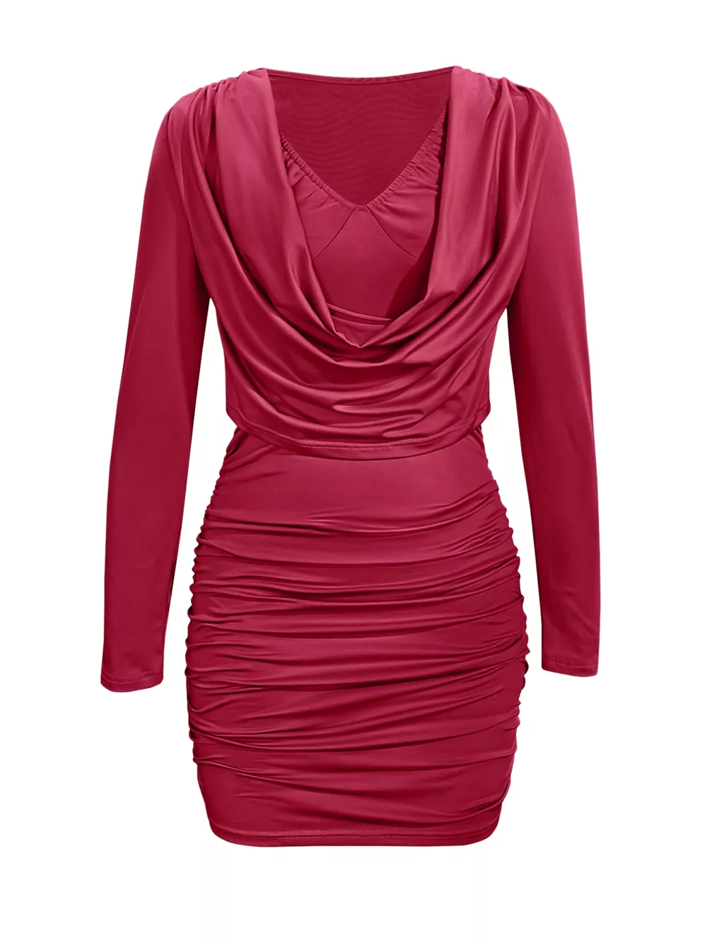 Draped V-Neck Long Sleeve Bodycon Mini Dress