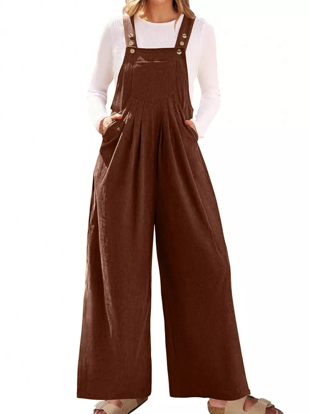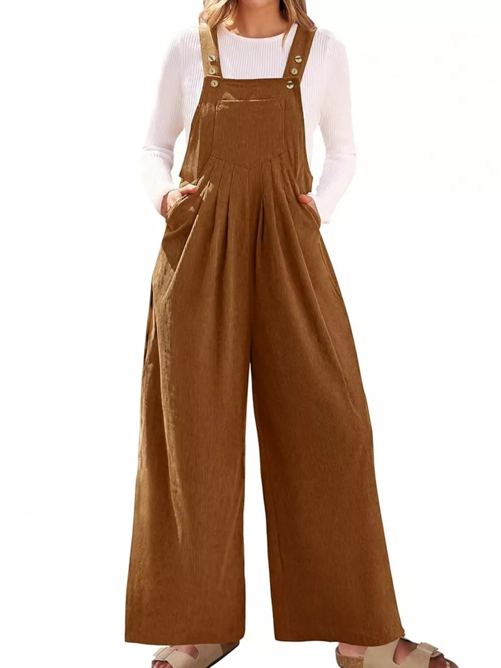 This Romper & Jumpsuit is a stylish and comfortable choice for women. Made from soft corduroy, it features a flattering front ruched design and a wide leg cut for a relaxed fit. The adjustable straps and functional pockets add convenience, while the square neckline provides a modern touch. Perfect for casual outings or dressed up for a more formal occasion, this jumpsuit is a versatile addition to any wardrobe. The corduroy material provides a vintage look and feel, while the ruched detailing adds a touch of sophistication. Available in a range of colors, this jumpsuit is sure to become a favorite.