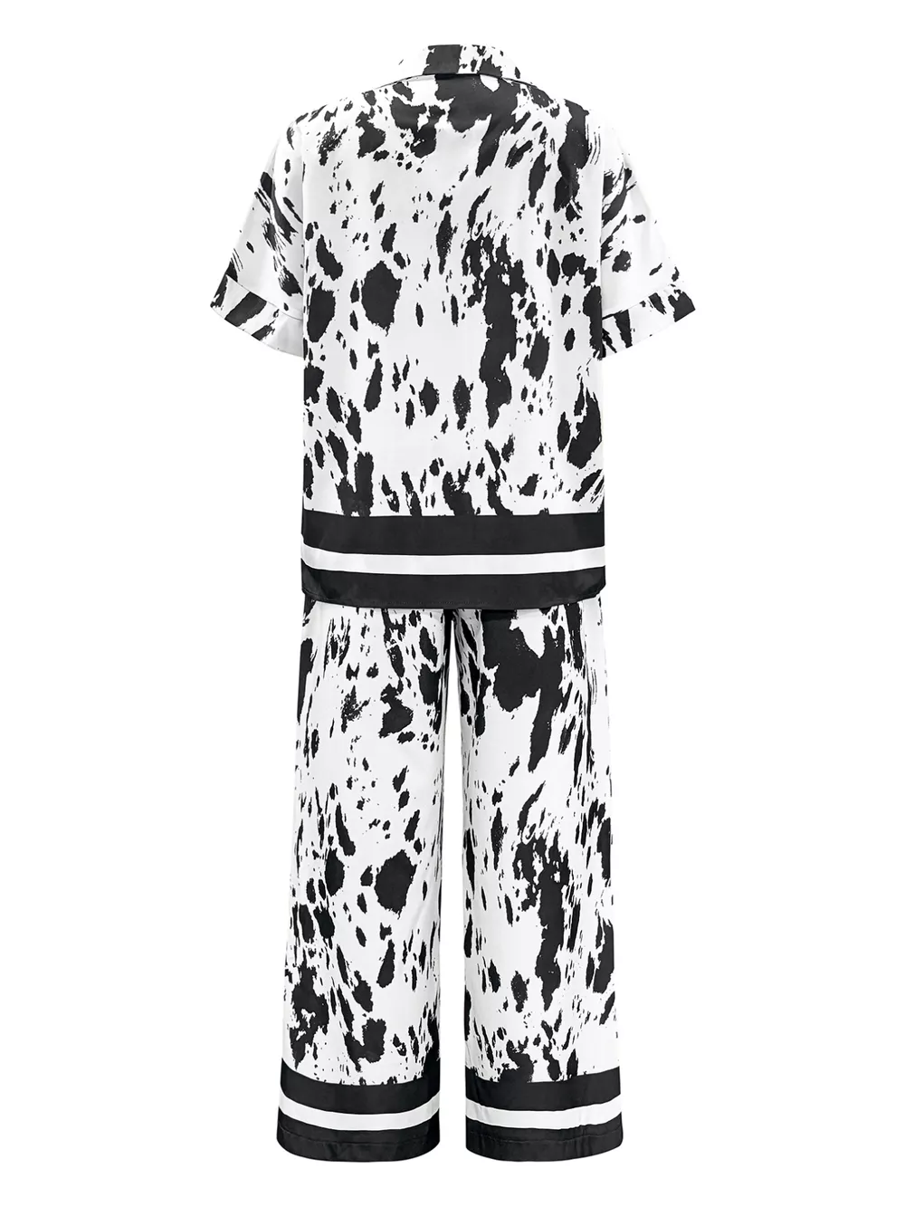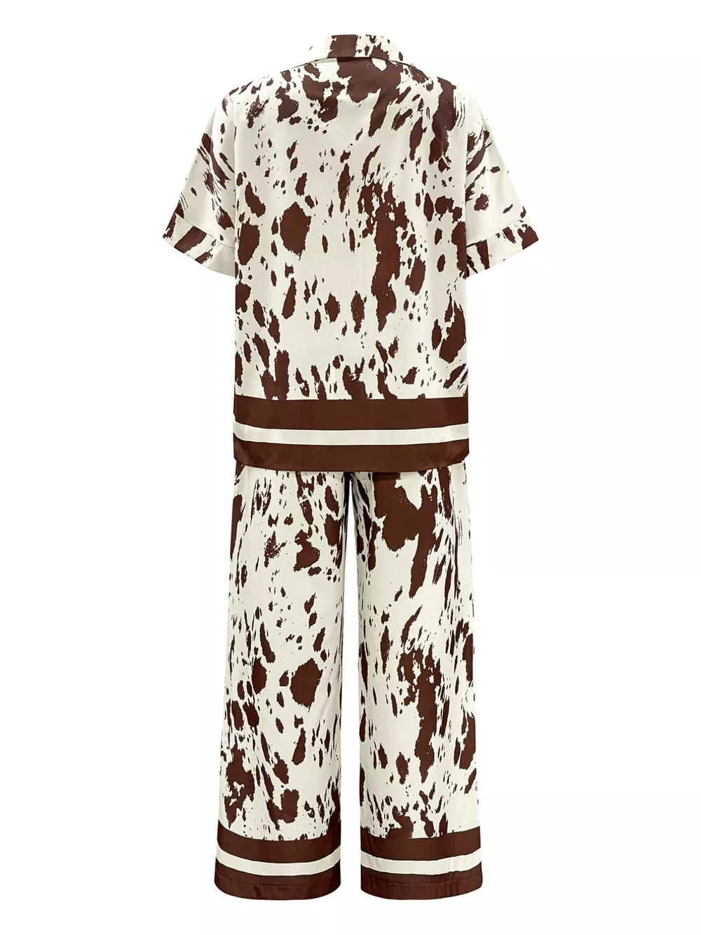 Printed Relaxed Fit Top and Wide Leg Pants Set