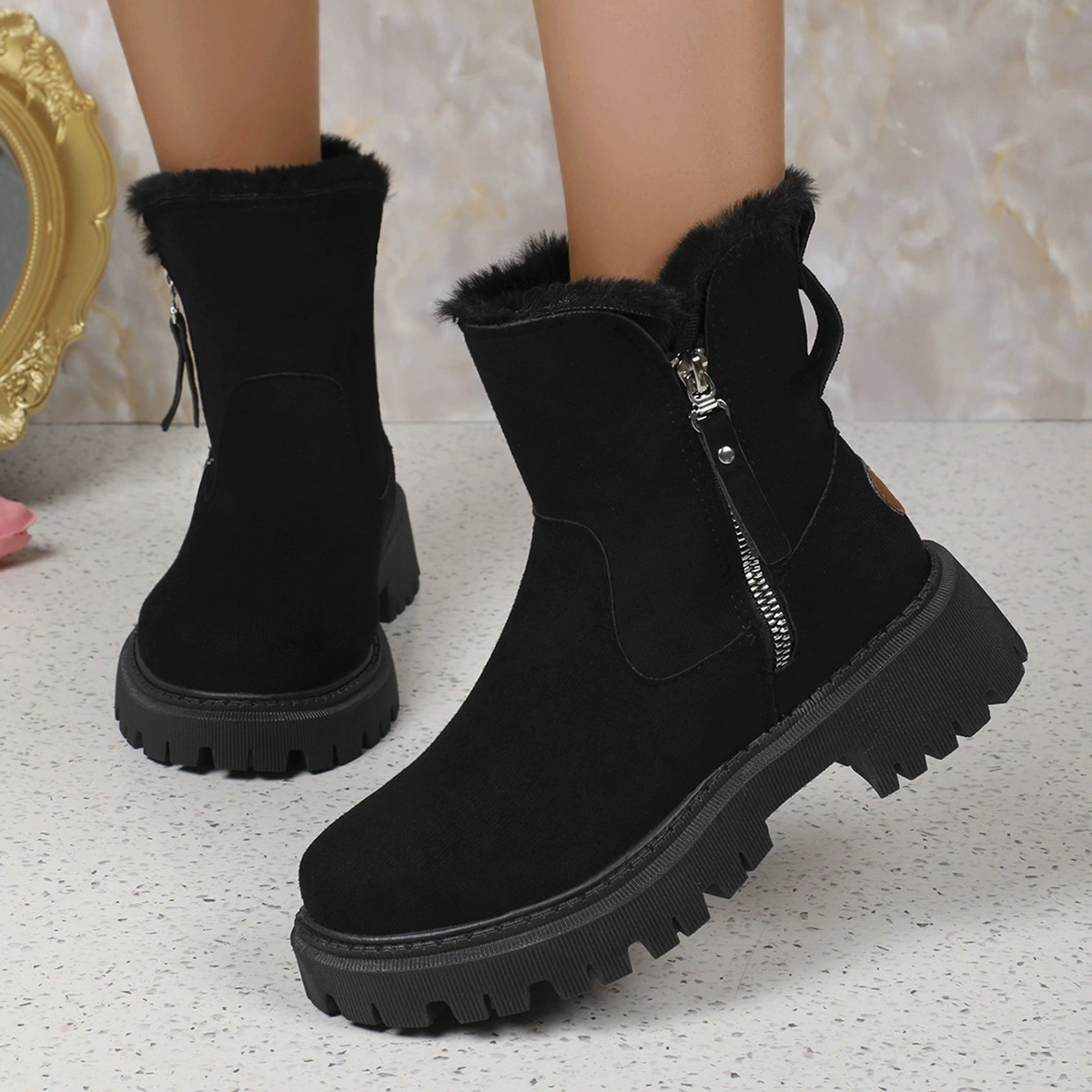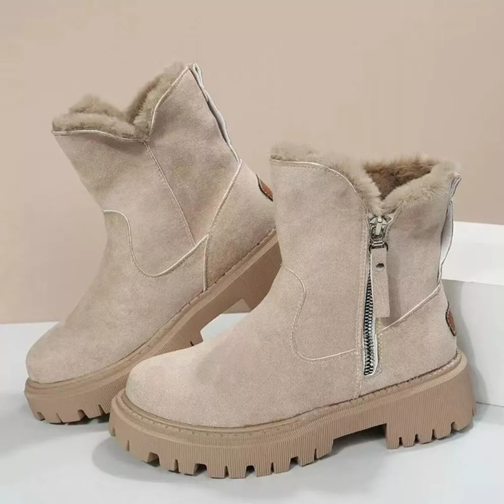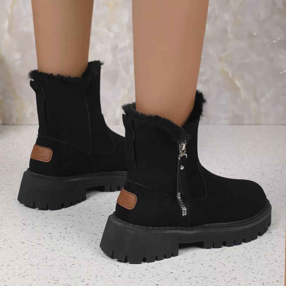 Fuzzy Lined Ankle Boots with Zipper