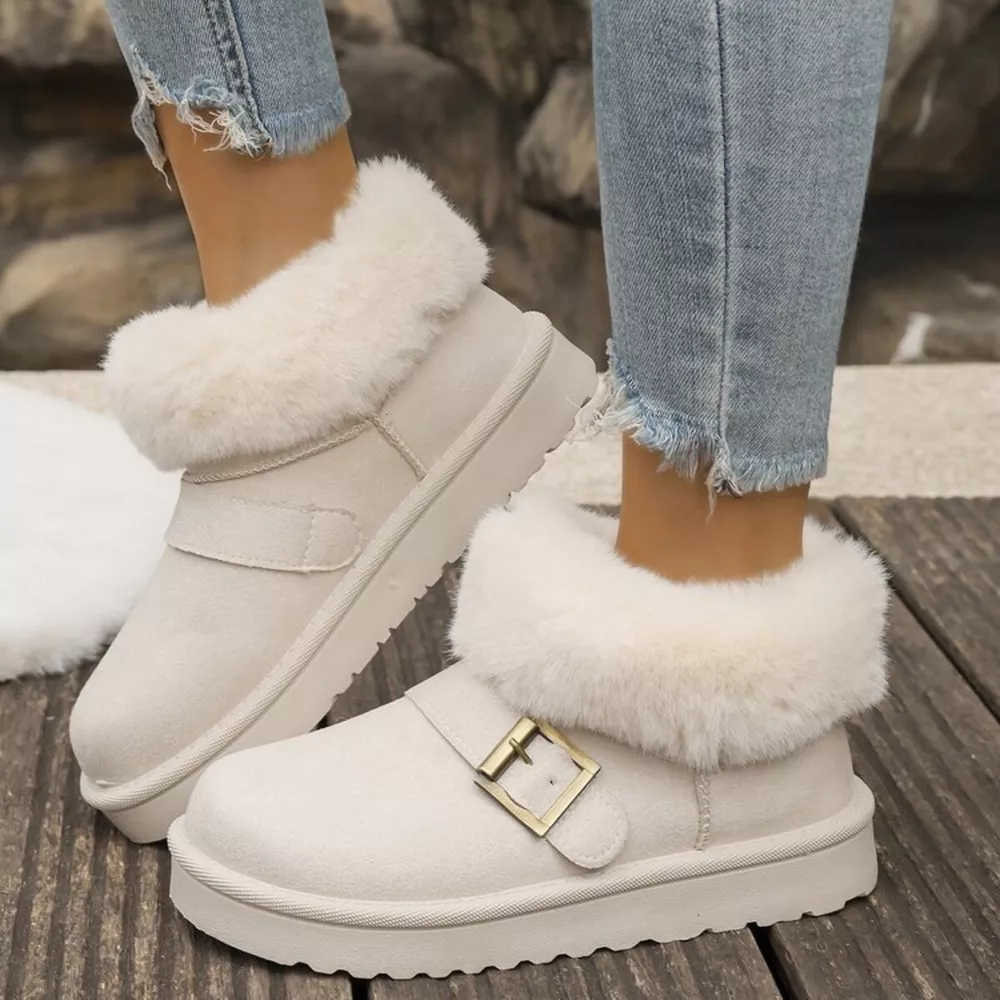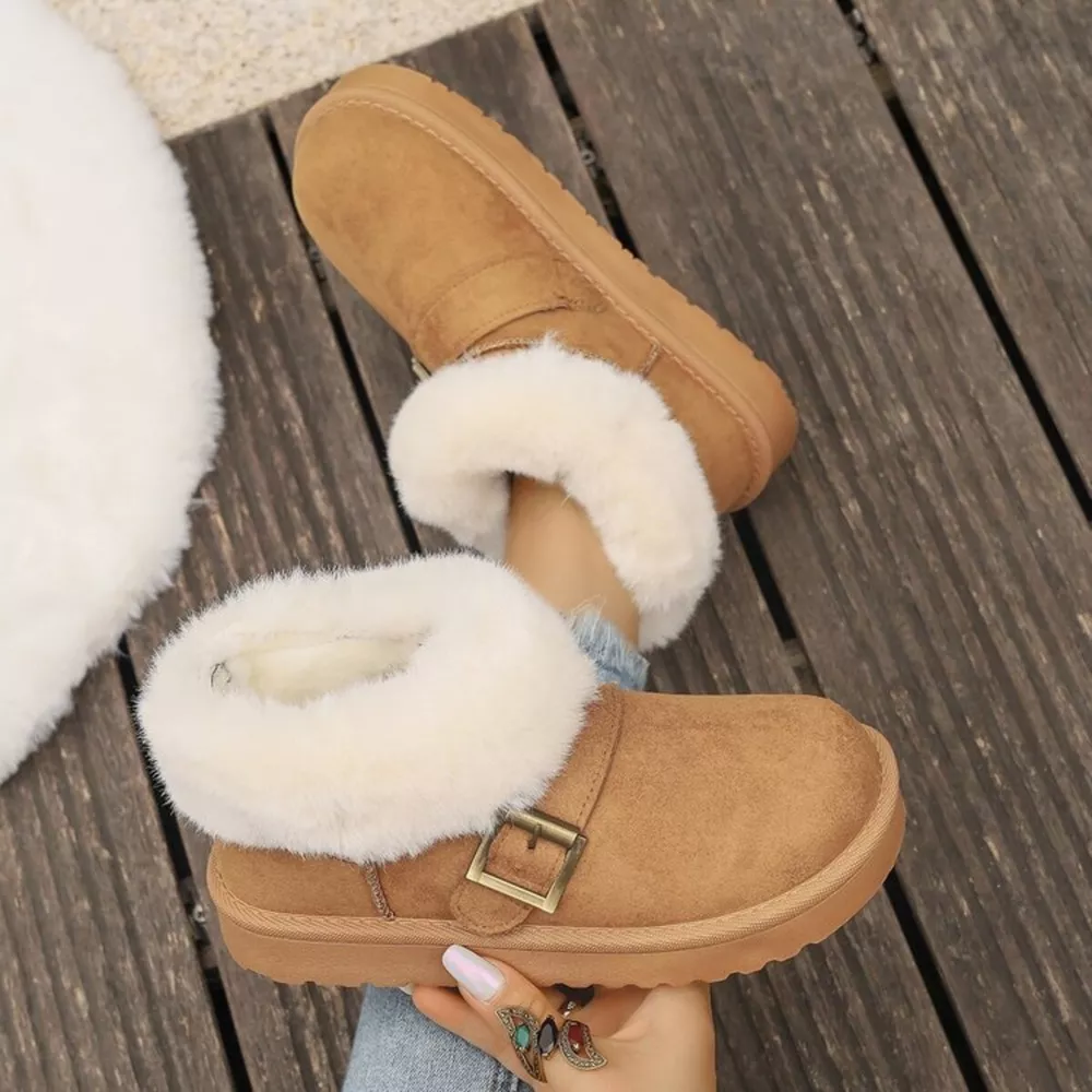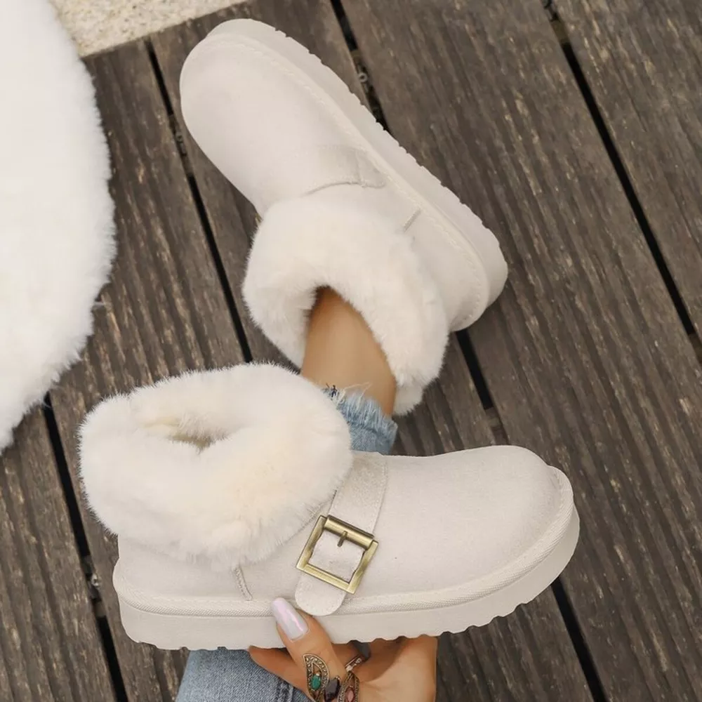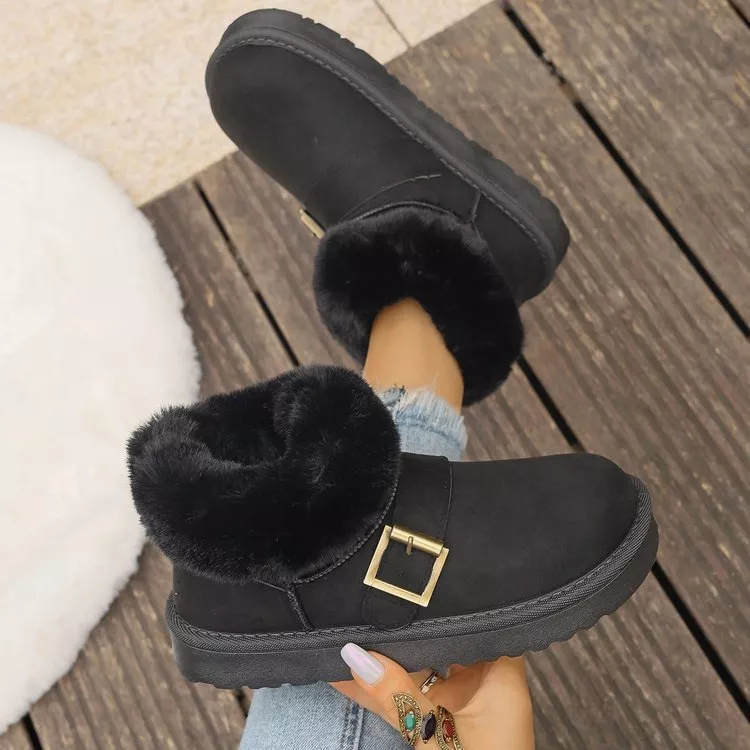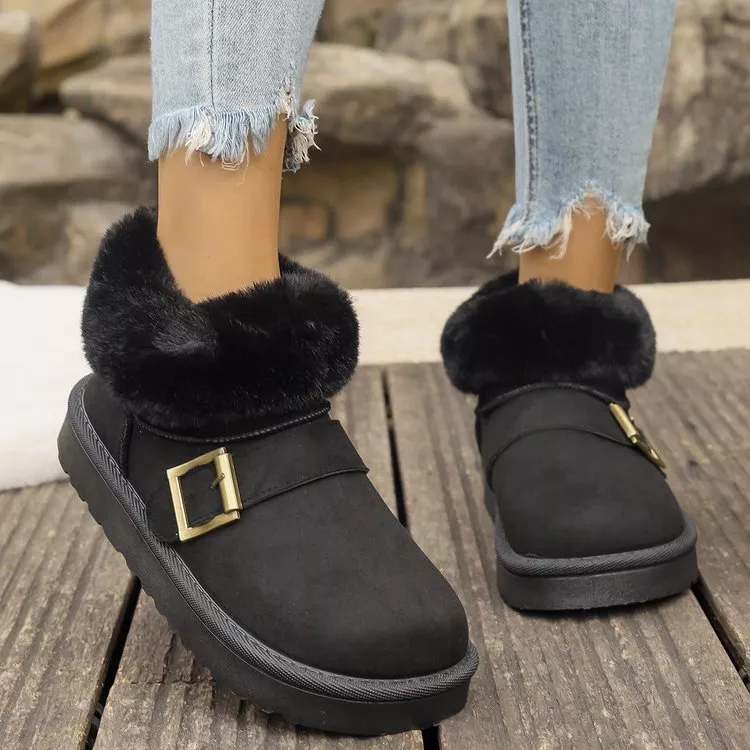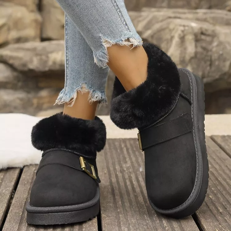 Fuzzy Trim Buckle Accent Winter Boots
