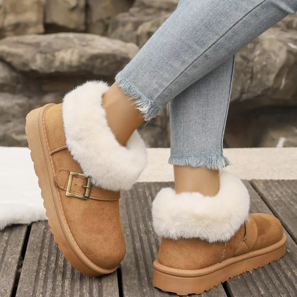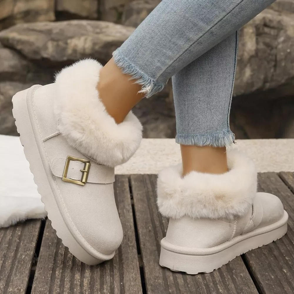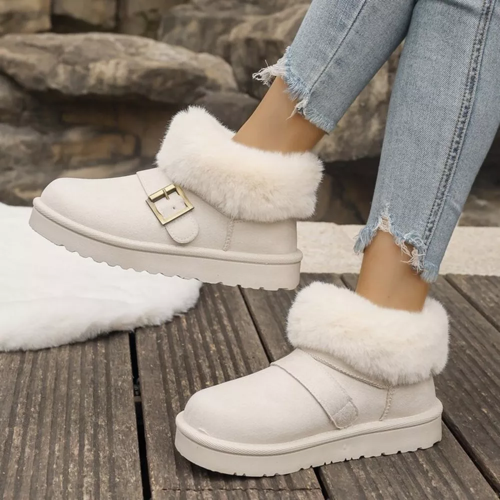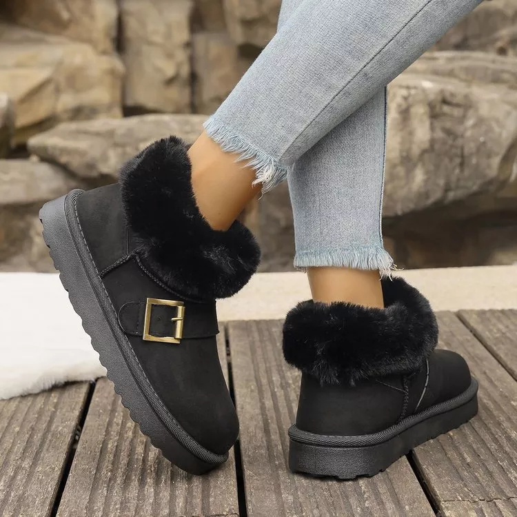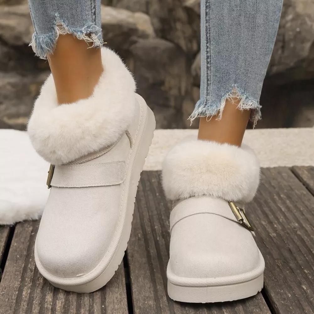 Fuzzy Trim Buckle Accent Winter Boots