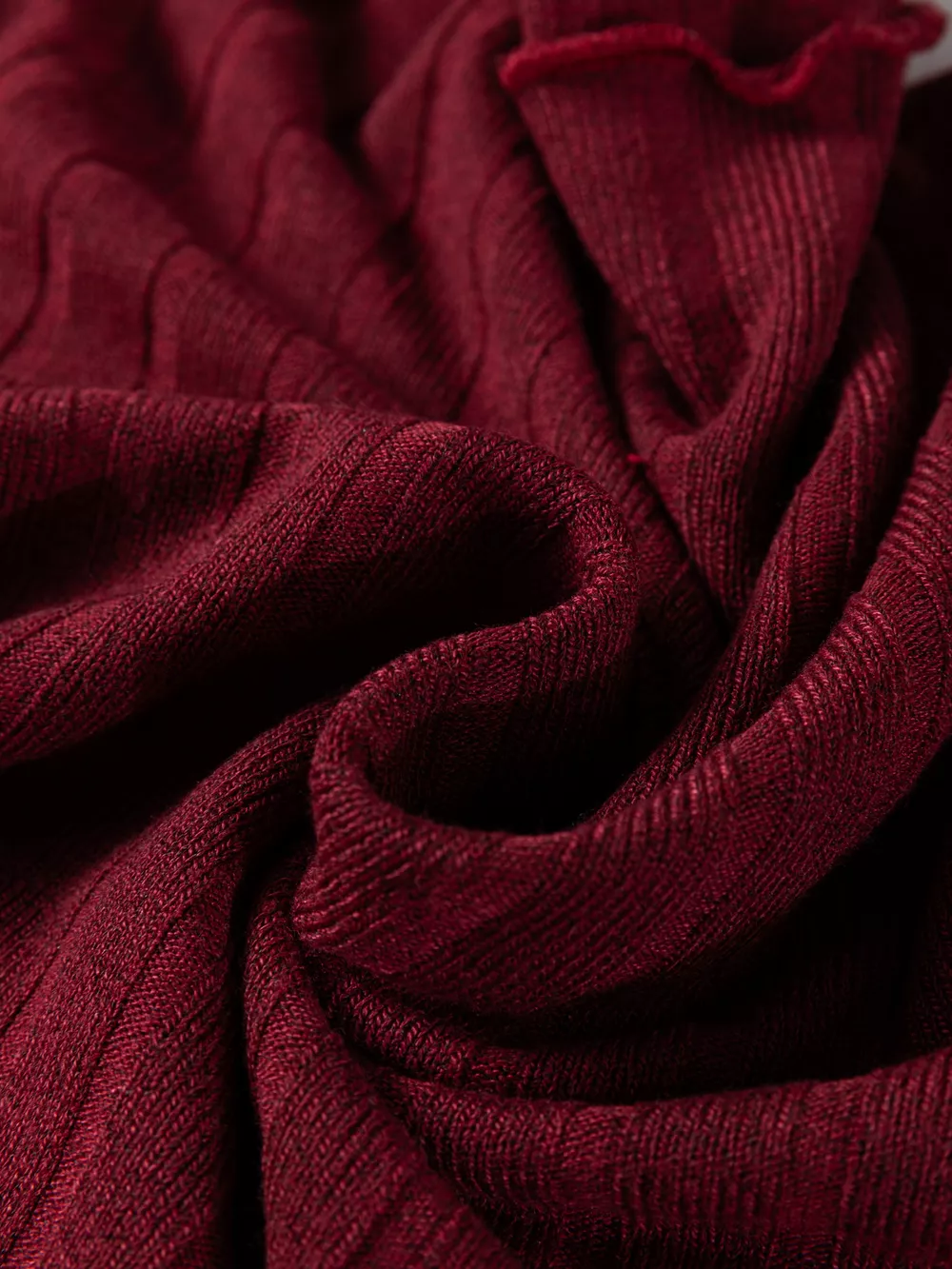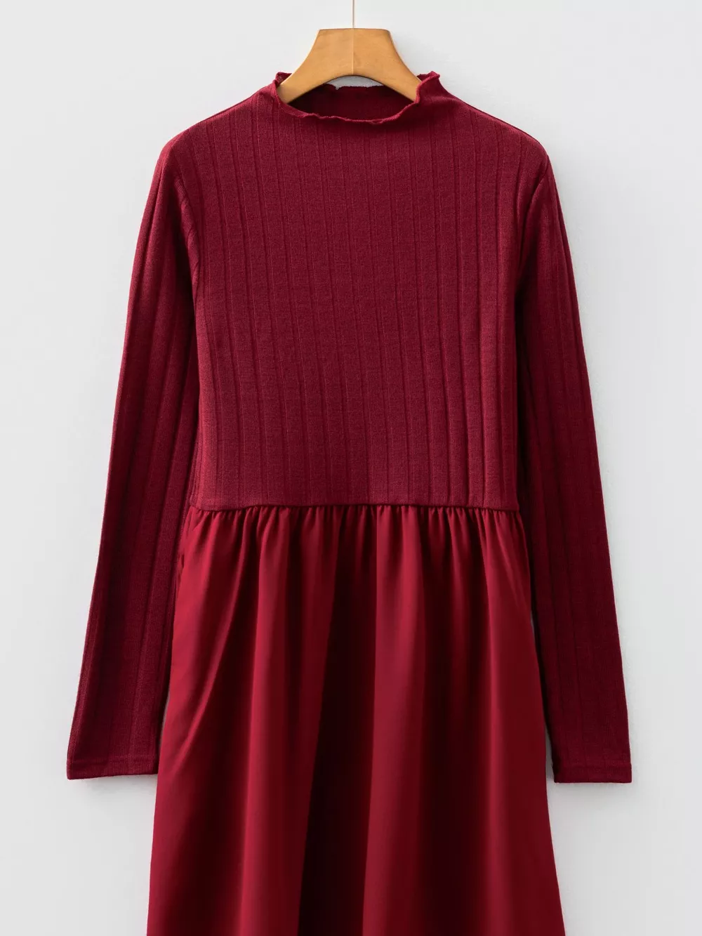 Frilled Neck Ribbed Knit Patchwork Long Sleeve Mini Dress