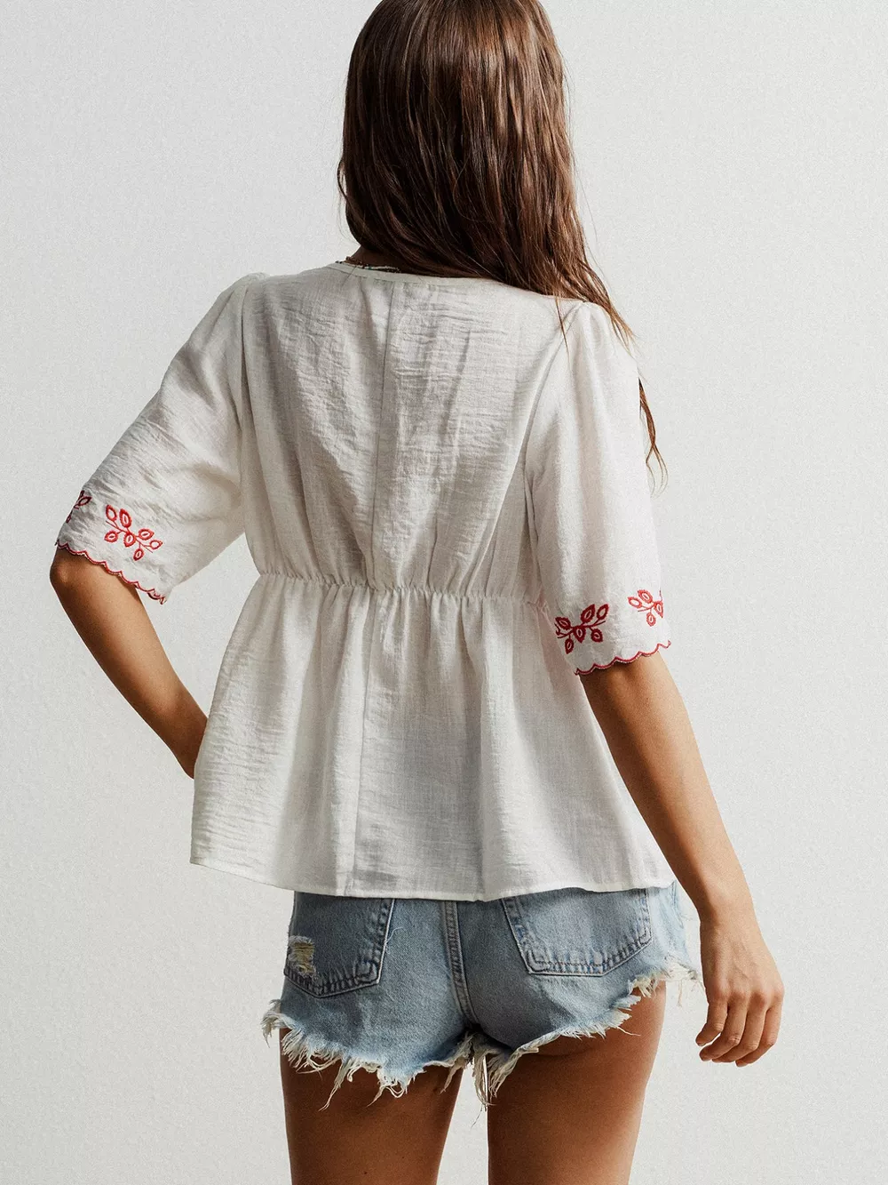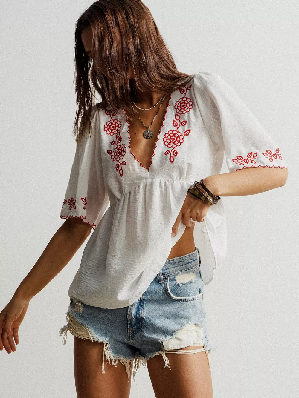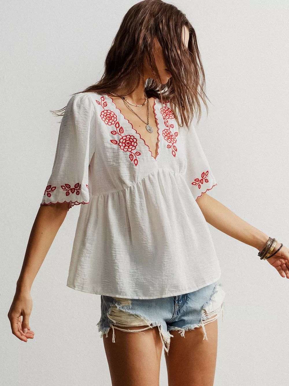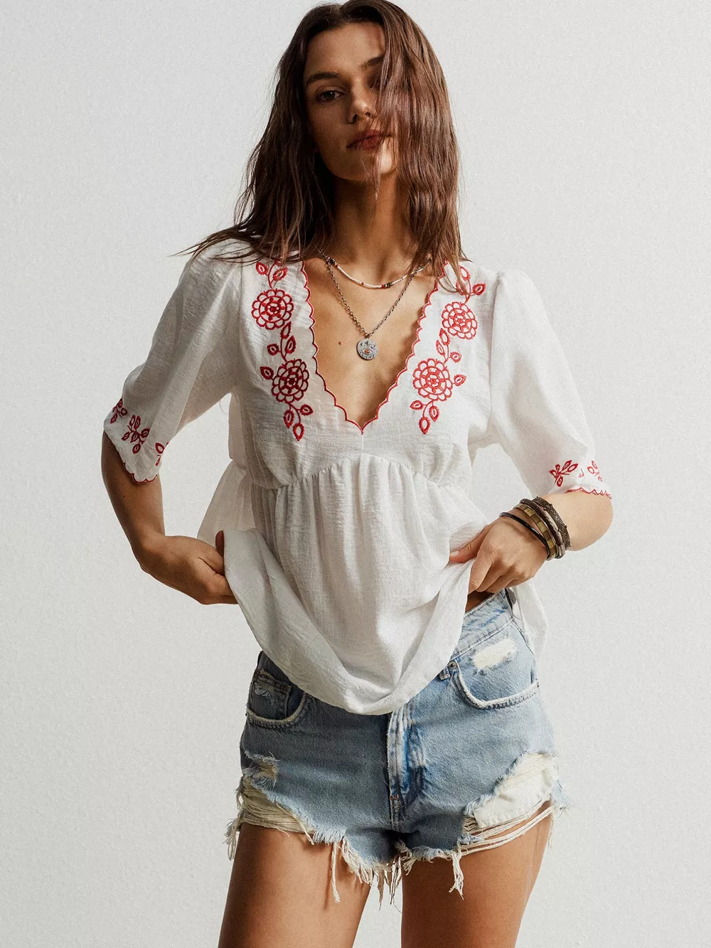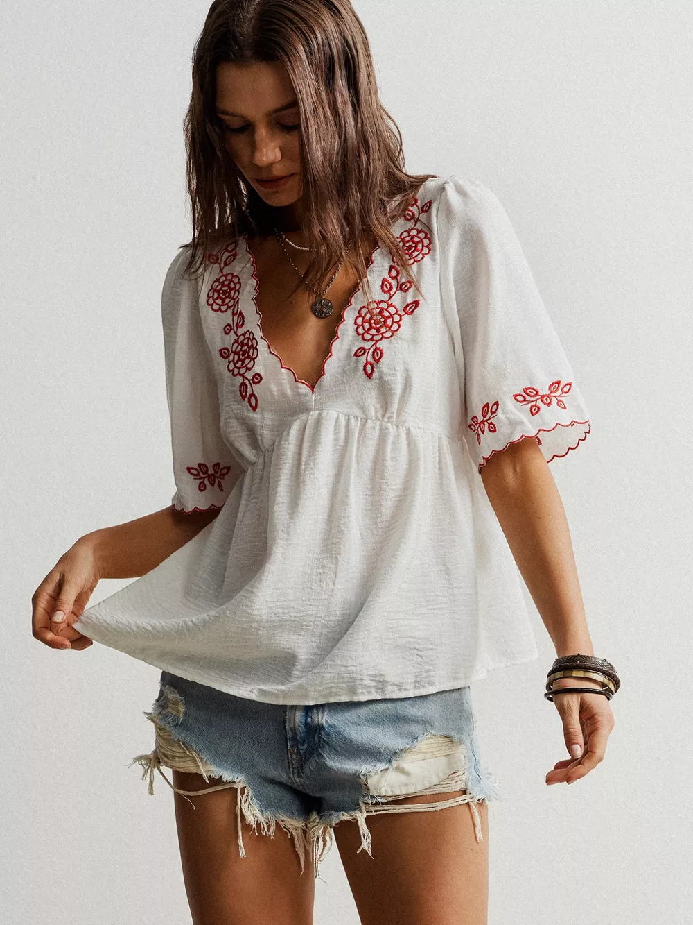 Embroidered Floral V-Neck Blouse