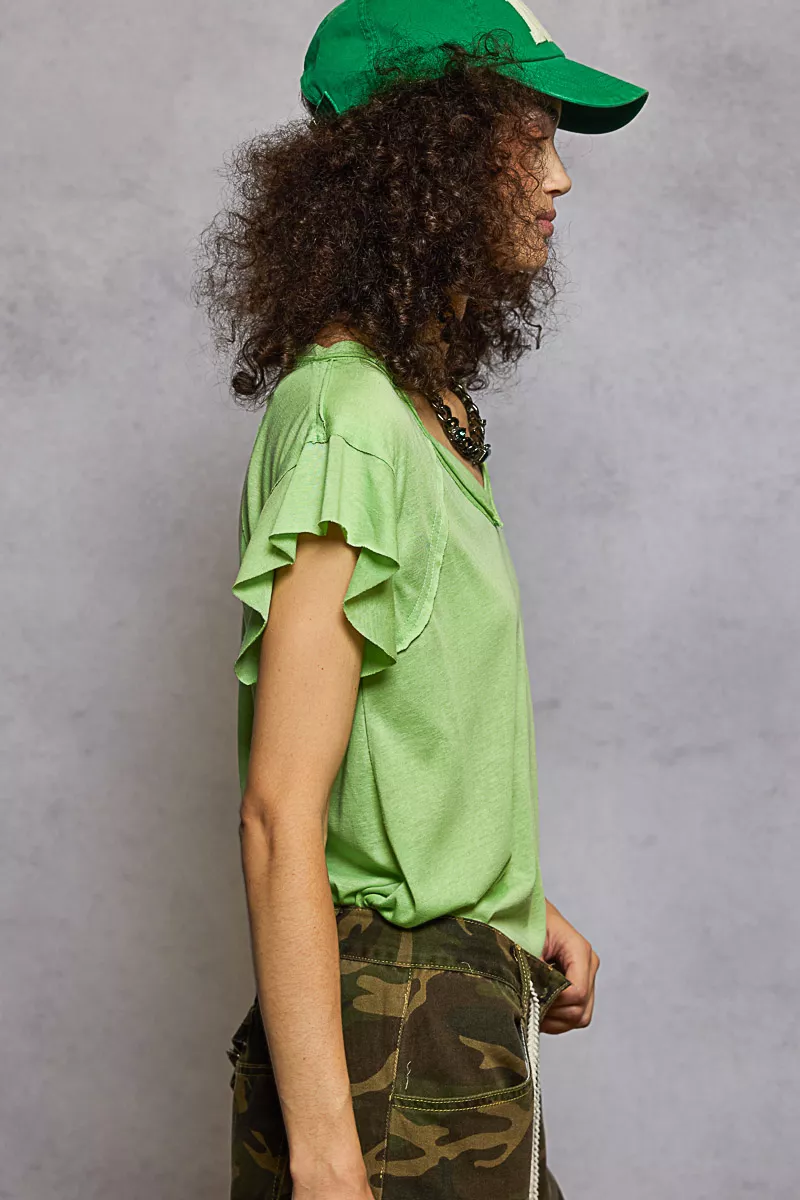 POL V-Neck Short Sleeve T-Shirt with Ruffle Sleeve