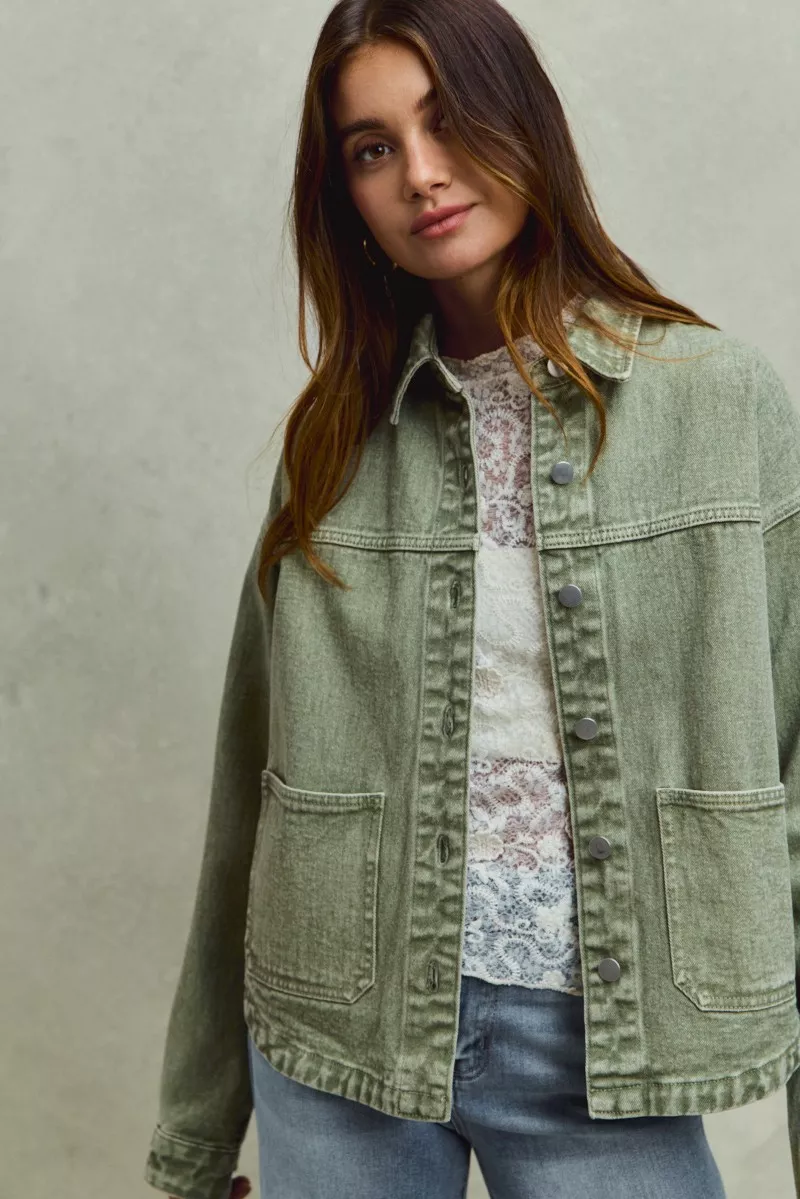 Detailed description of the SO ME Vintage Washed Button Twill Shacket, highlighting quality, design, and unique features that make it appealing to end consumers.