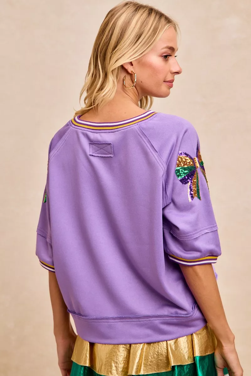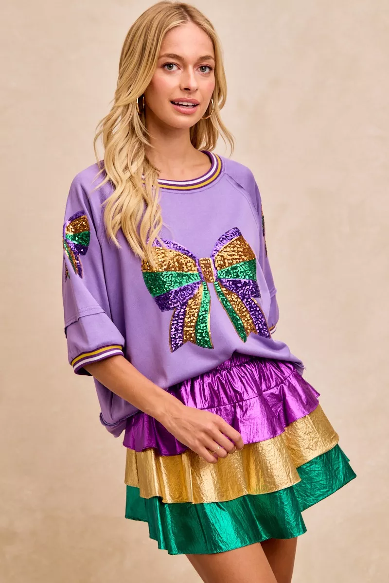 BiBi Mardi Gras Theme Ribbon Sequin Patched Top