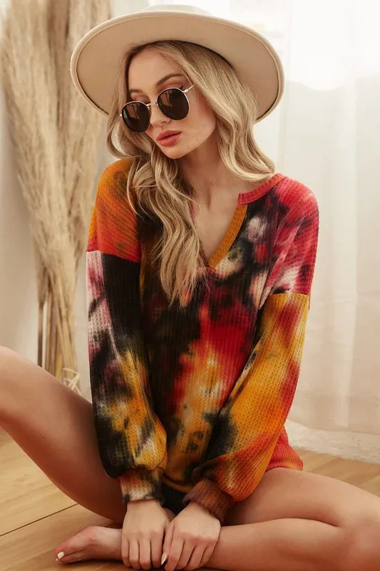 This tie-dye brushed waffle top features trendy bubble sleeves for a stylish twist on a classic design. The unique tie-dye pattern adds a fun and modern element to the top. The brushed waffle fabric is soft and cozy, perfect for all-day comfort. The bubble sleeves add a touch of volume and interest to the overall silhouette. Elevate your casual wardrobe with this chic and on-trend top.