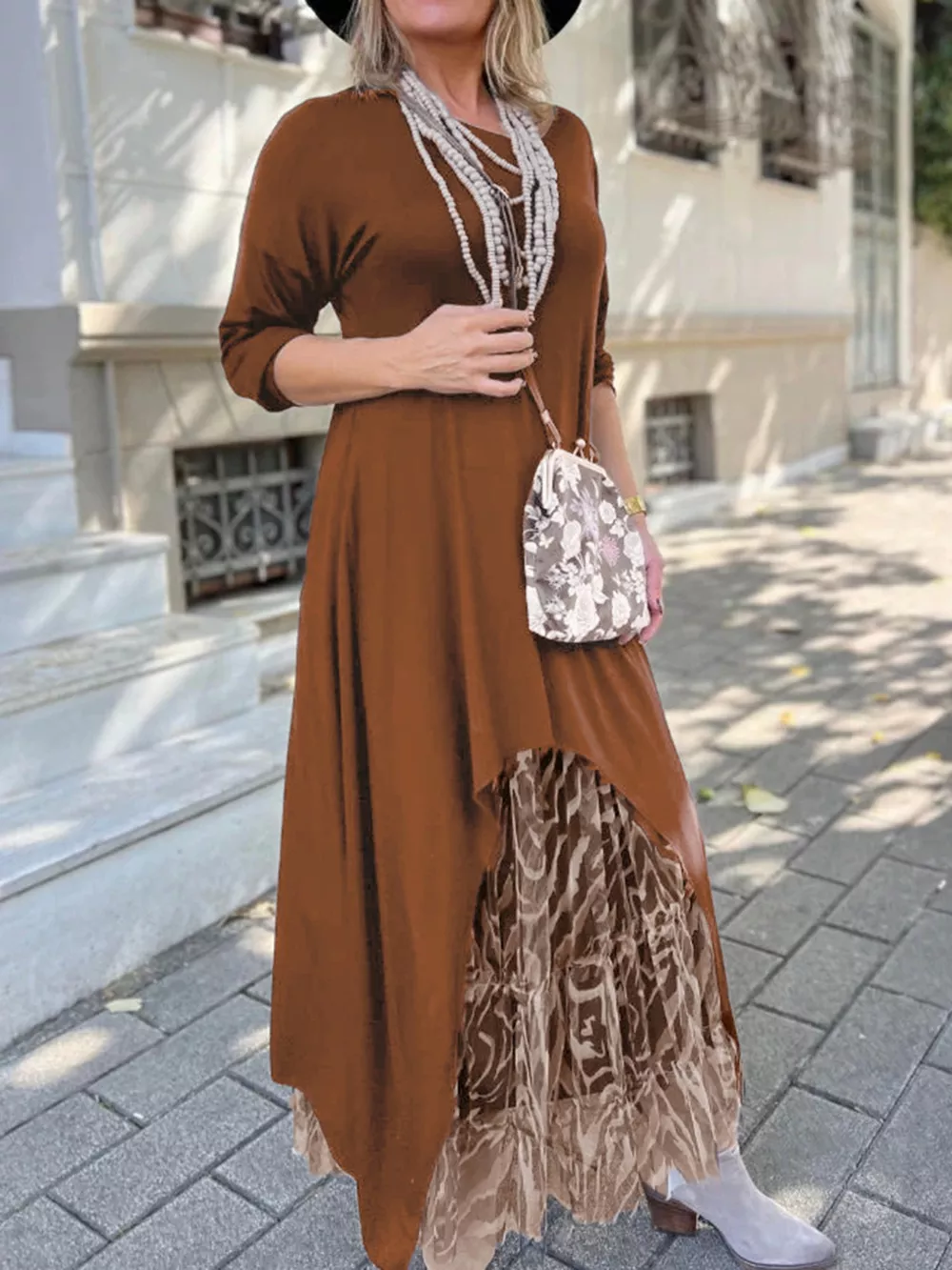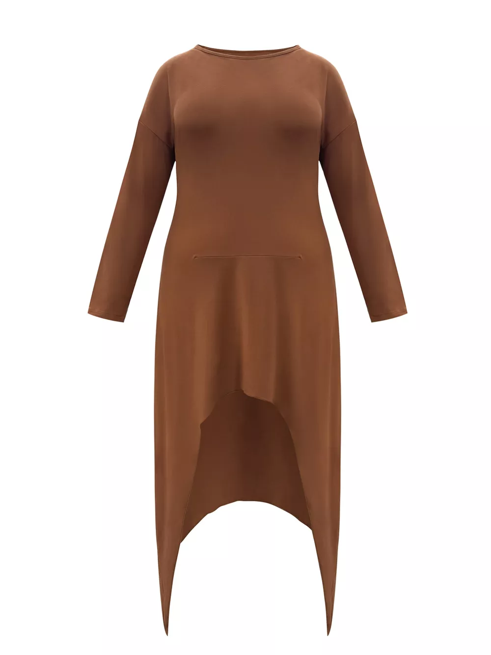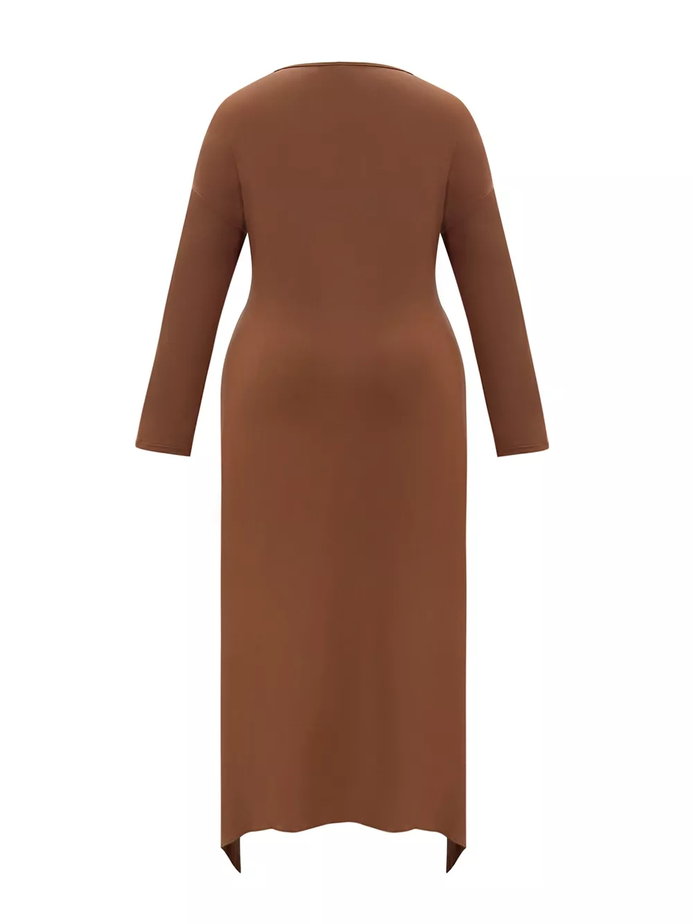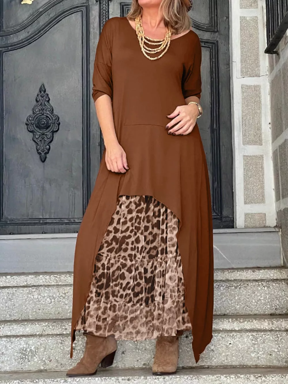 Plus Size Leopard Print Asymmetrical Hem Midi Dress
