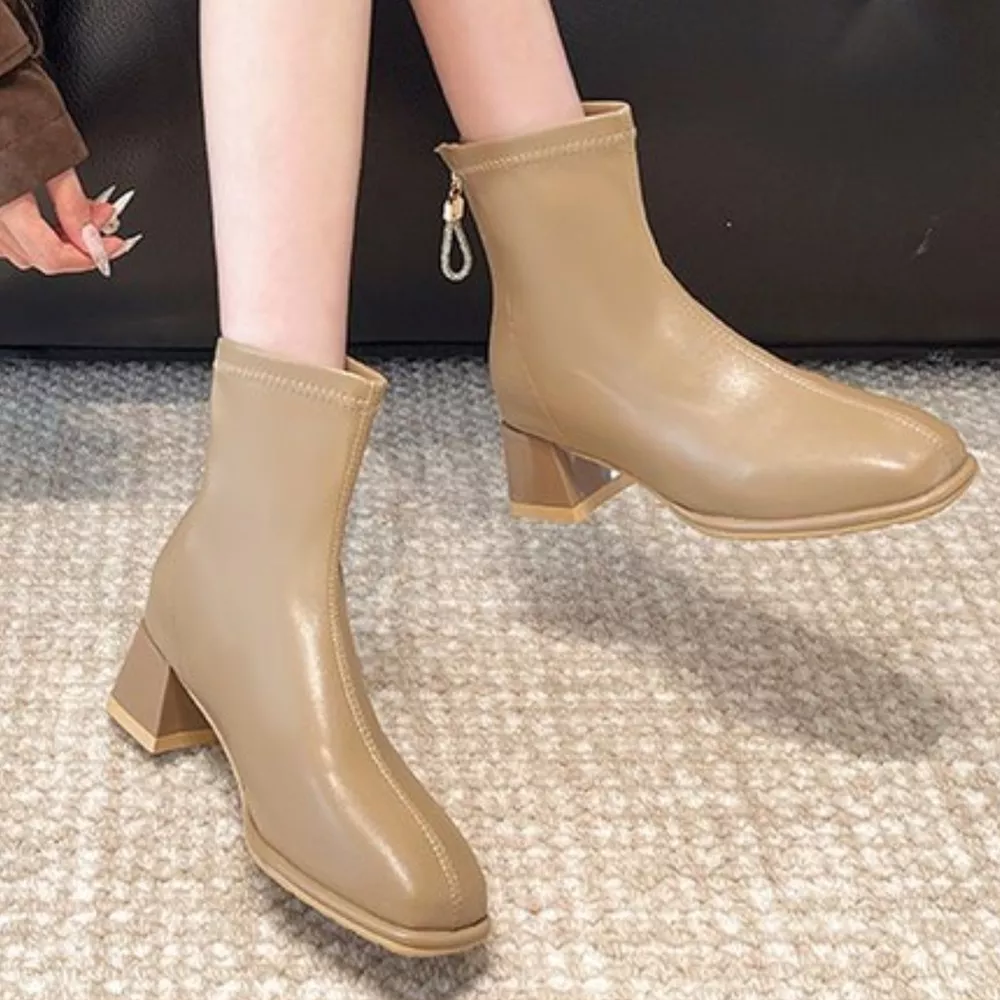 Square Toe Block Heels Boots