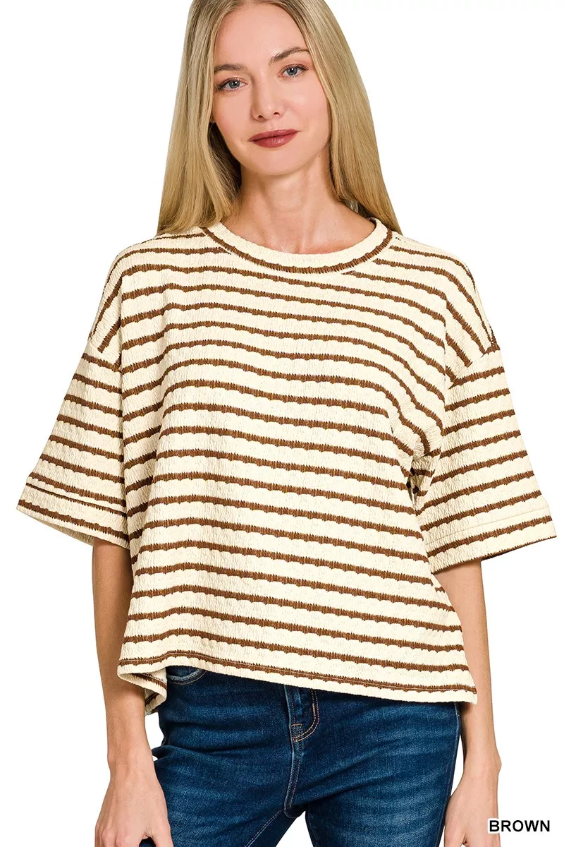 Zenana Striped Short Sleeve Tee & Shorts Set