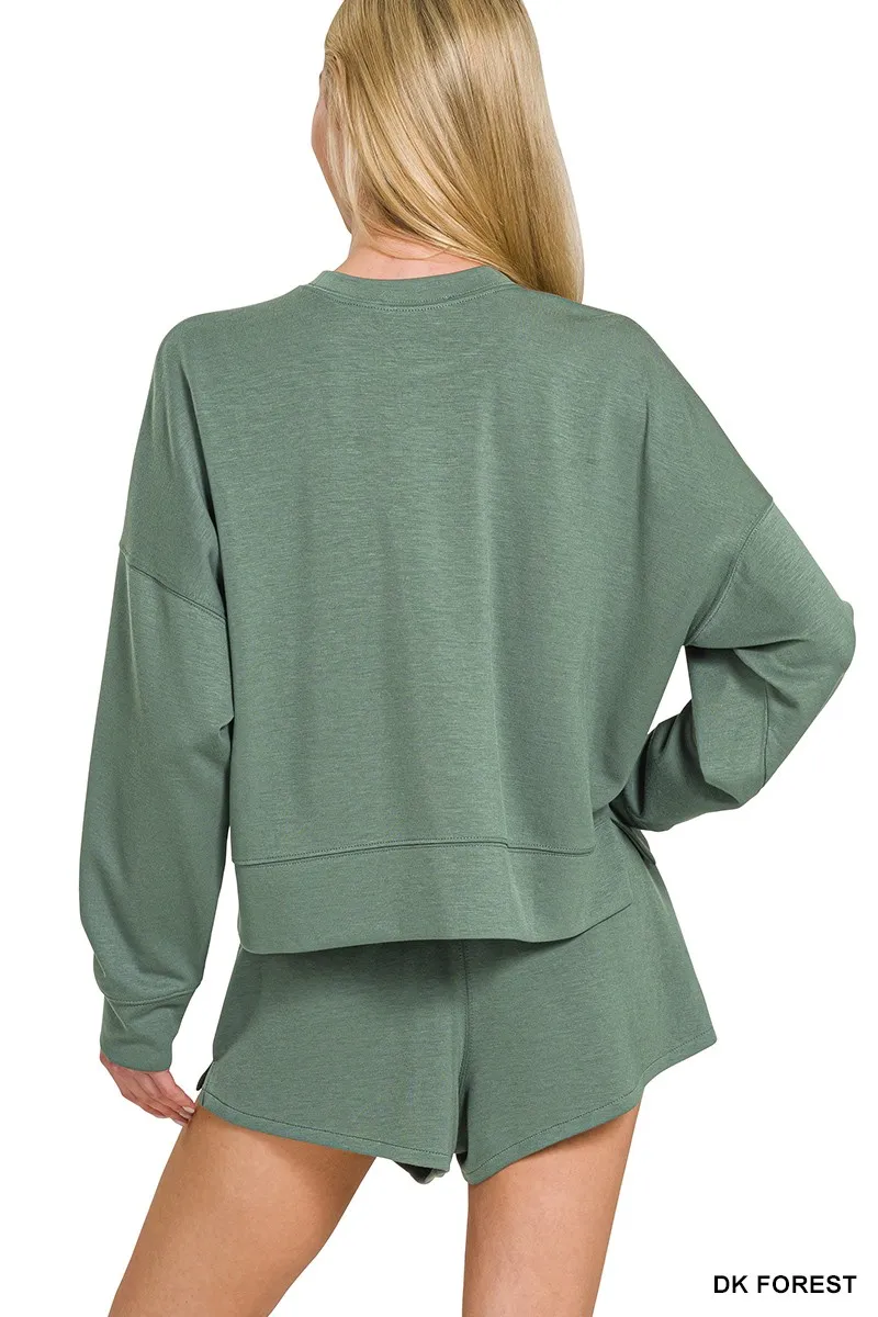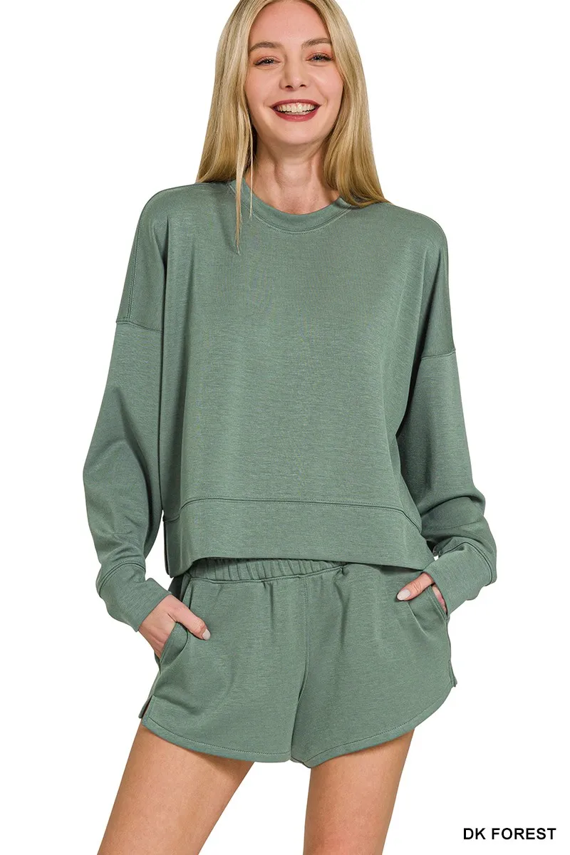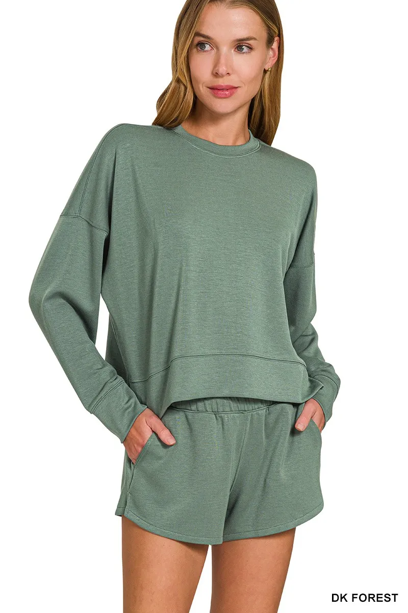 Zenana Scuba Long Sleeve Sweatshirts & Shorts Set
