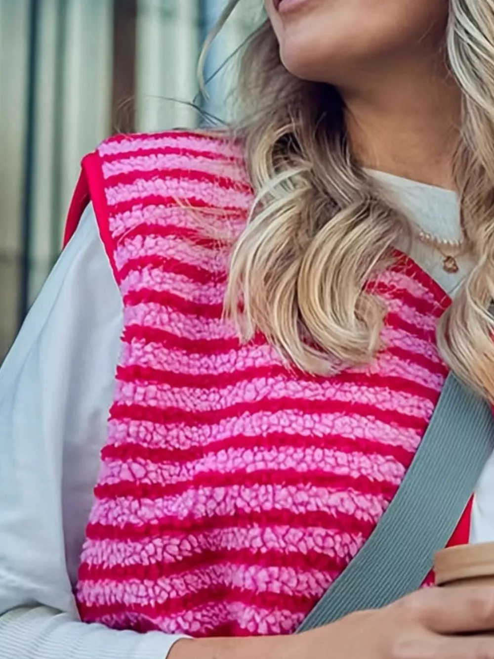 Striped Fleece Button-Up Vest Coat