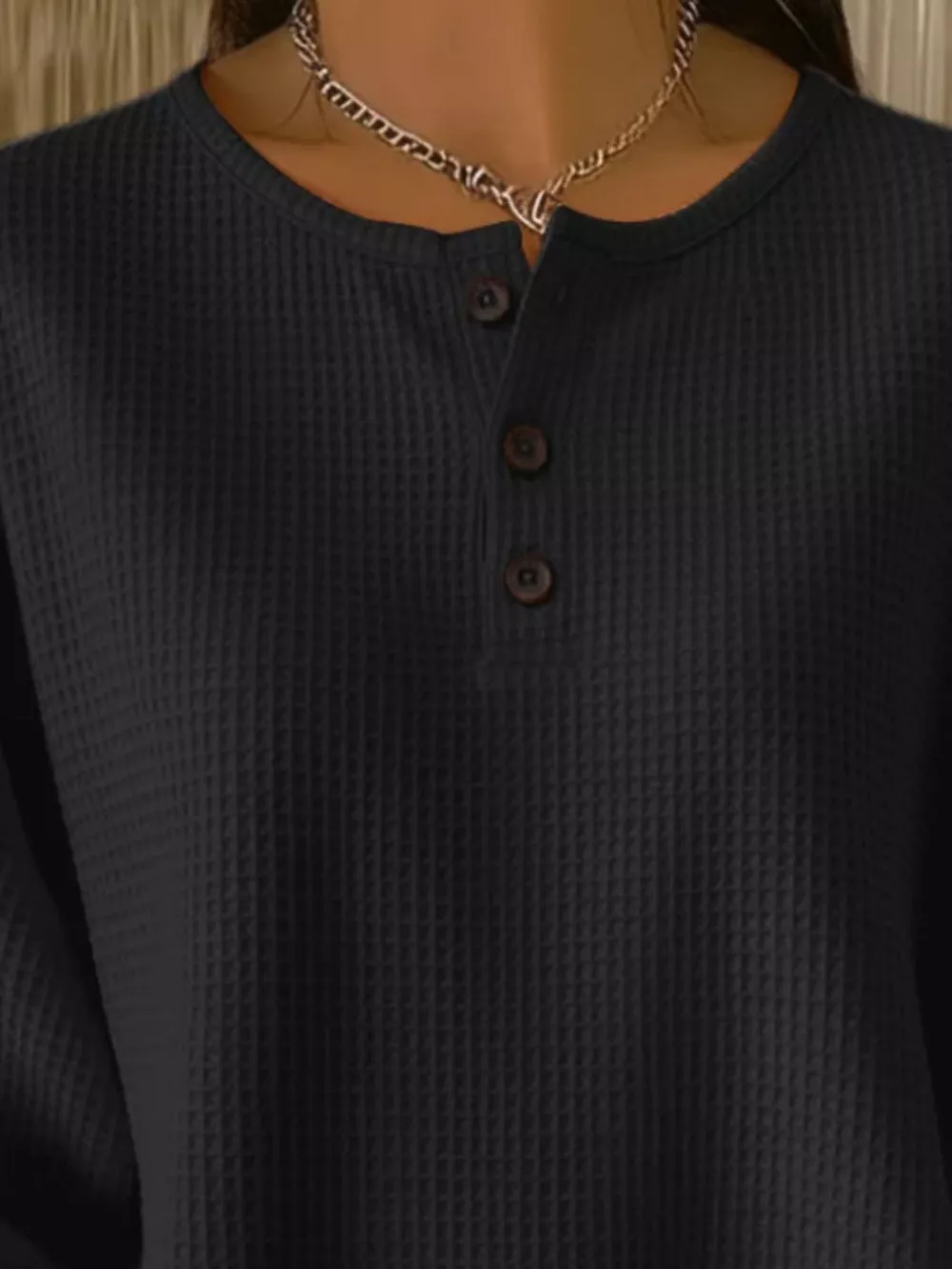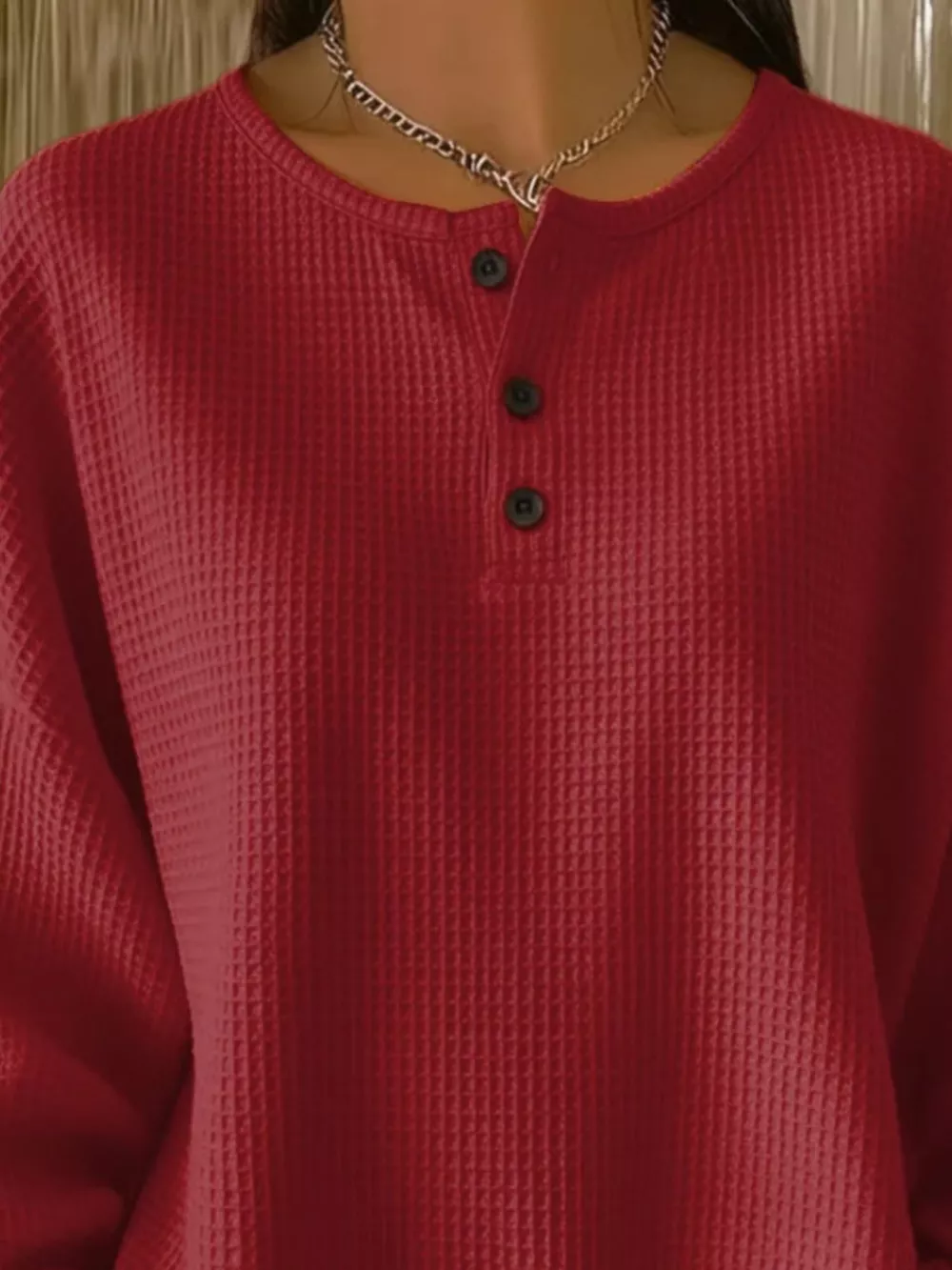 Full Size Casual Waffle Knit Button Detail Pullover Plus Size