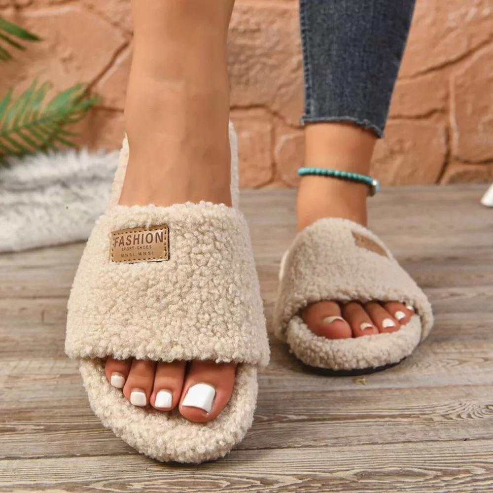 Fuzzy Open Toe Slippers