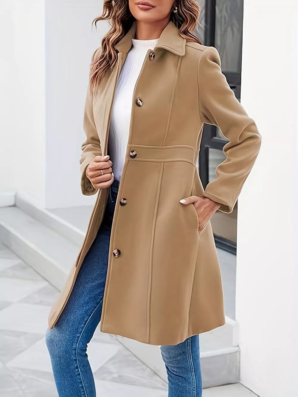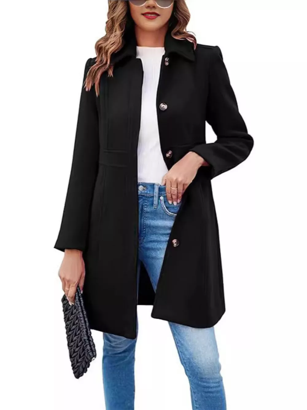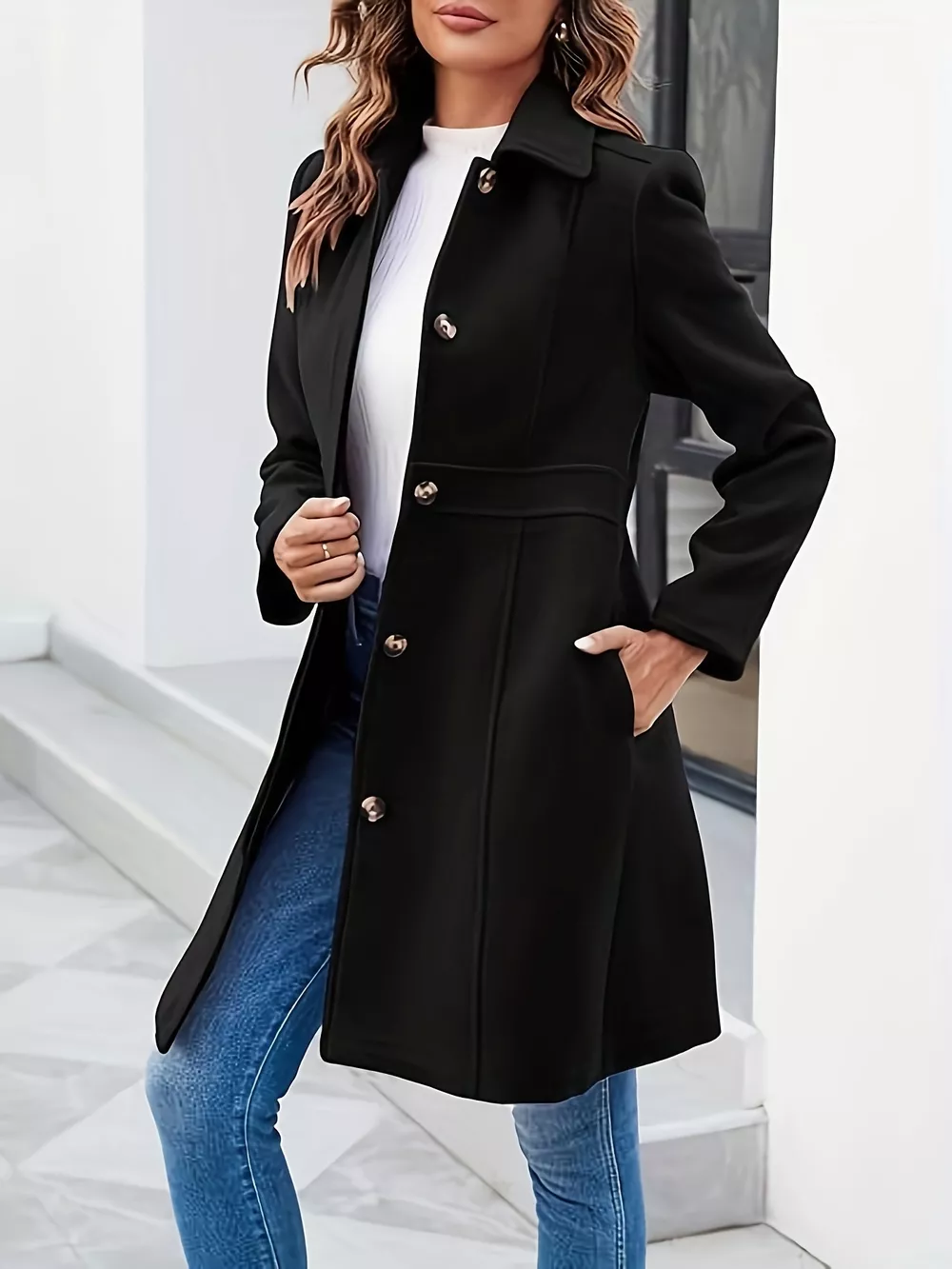 Button-Down Wool Blend Coat