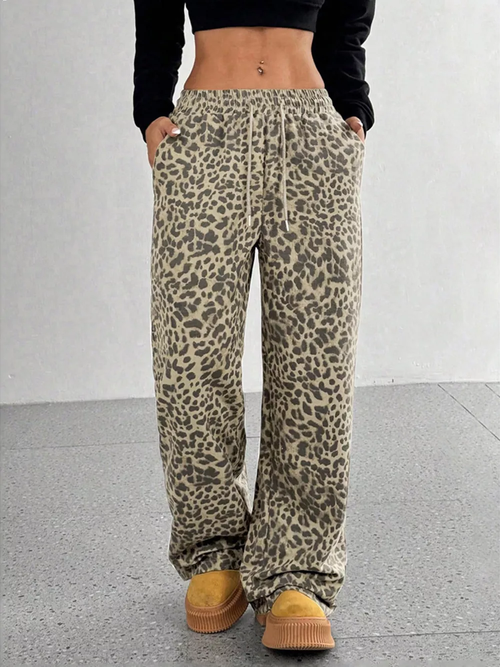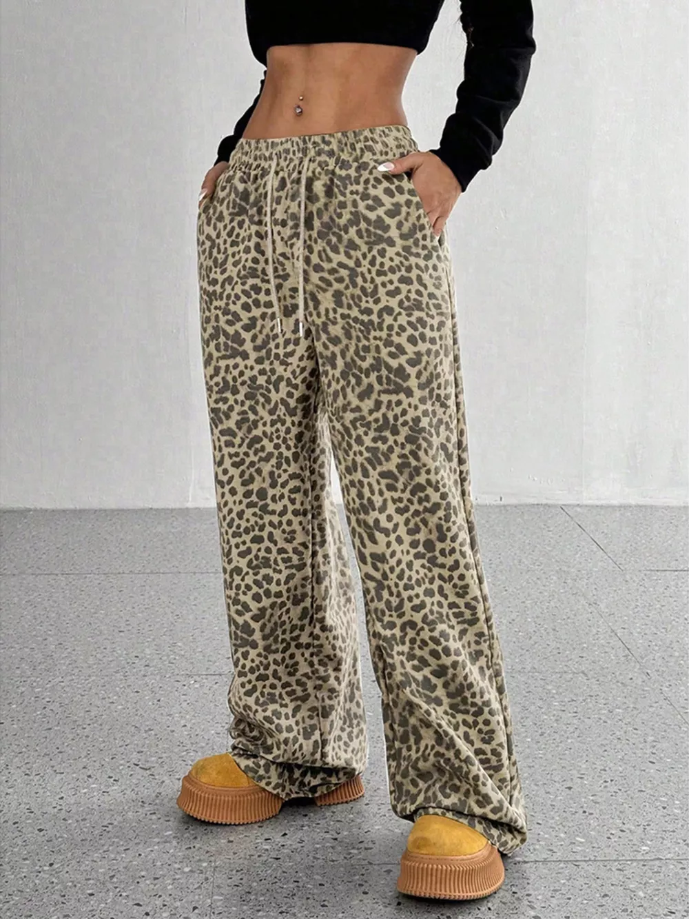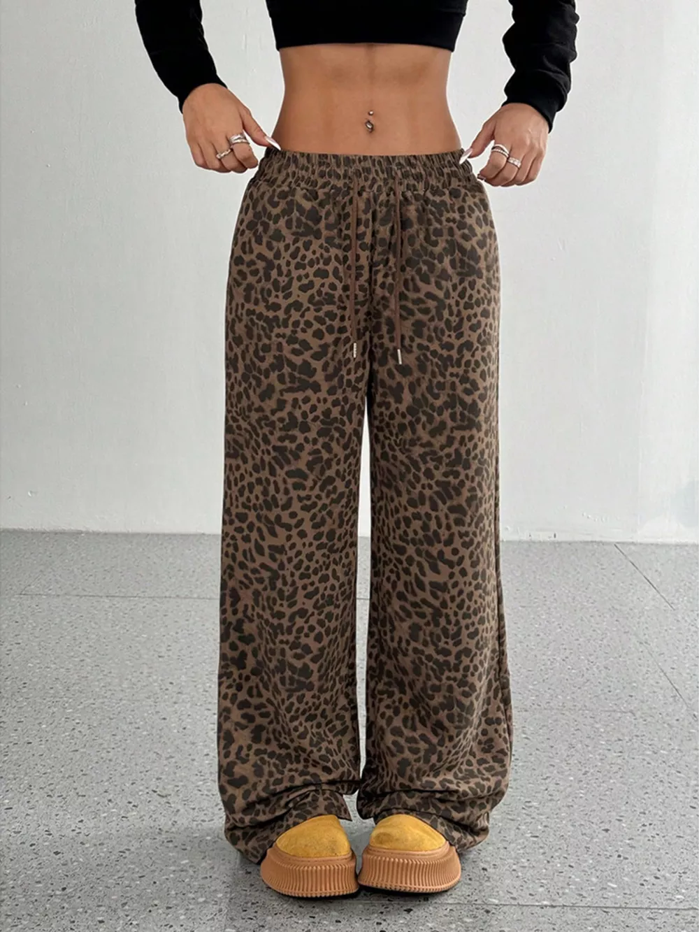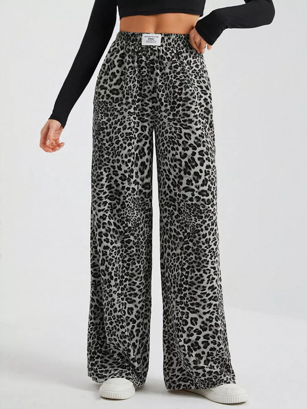 Full Size Leopard Print Wide Leg Pants Plus Size