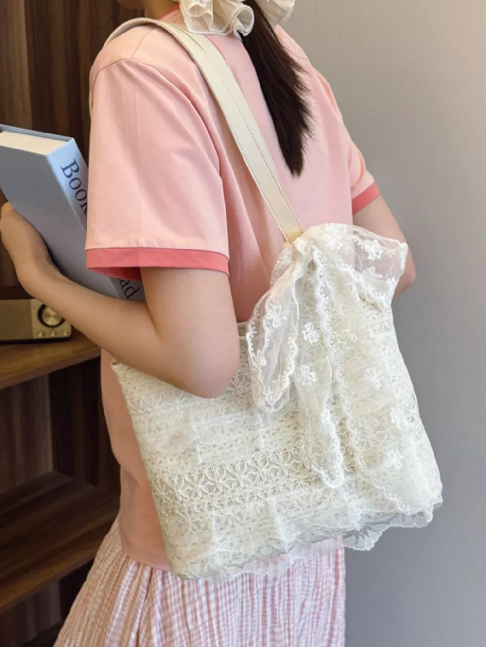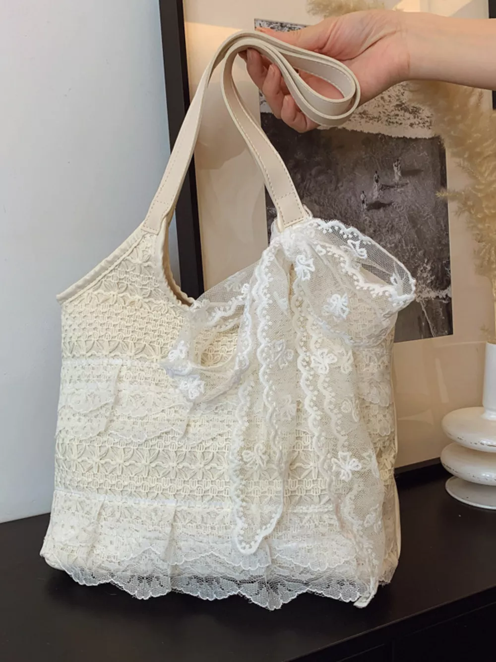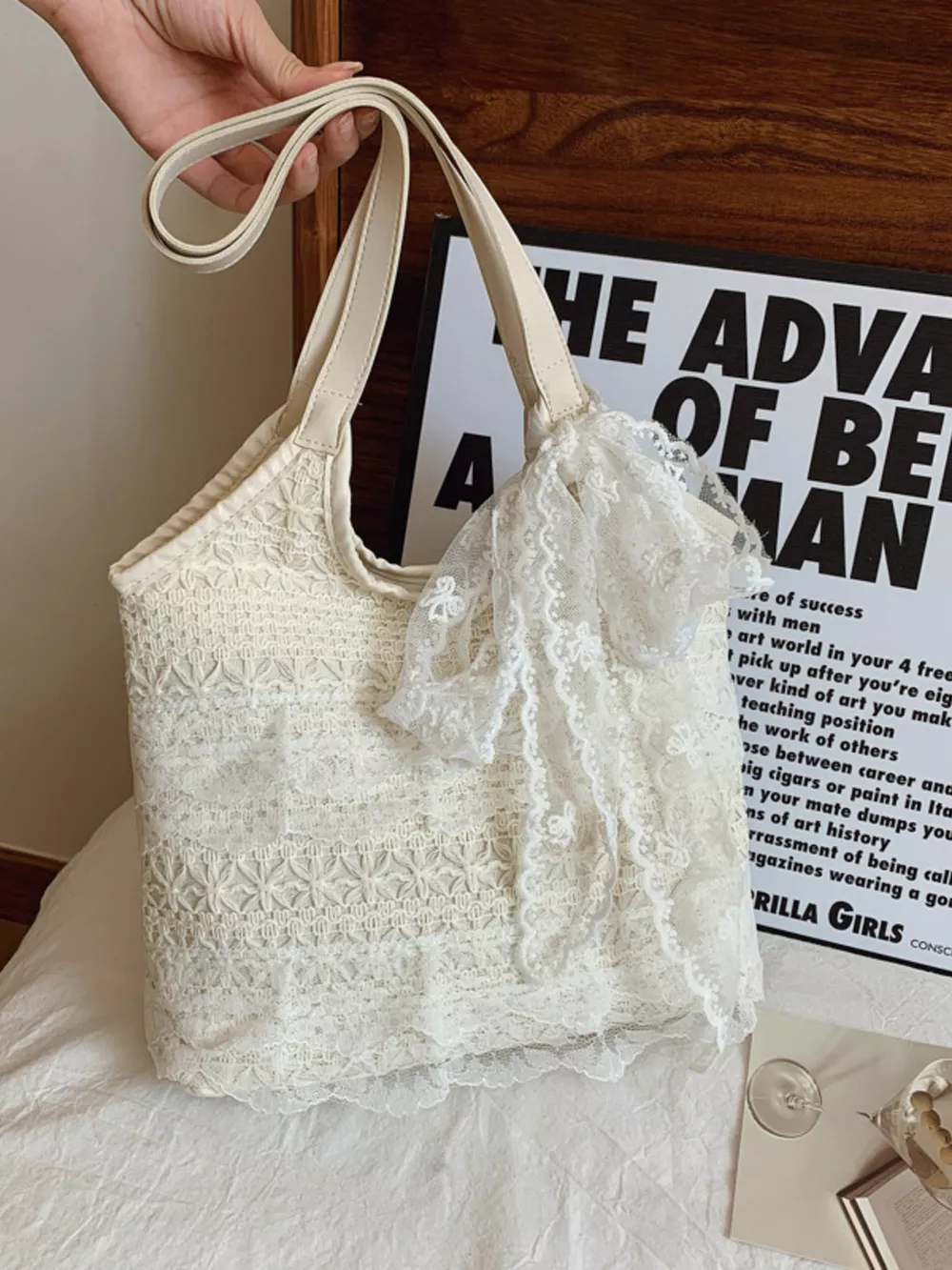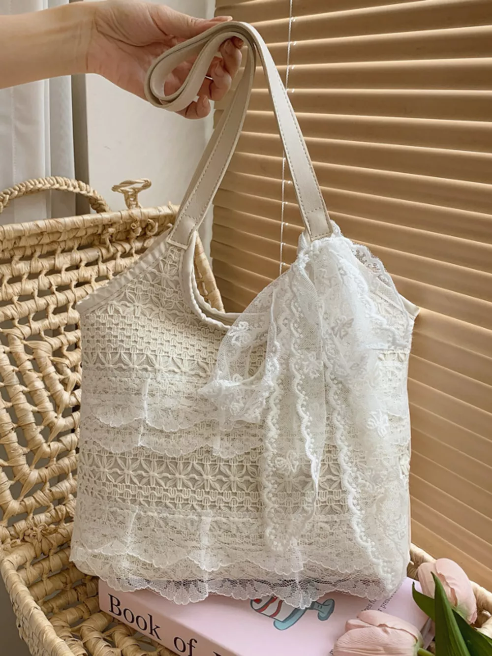 Lace Bowknot Woven Handbag