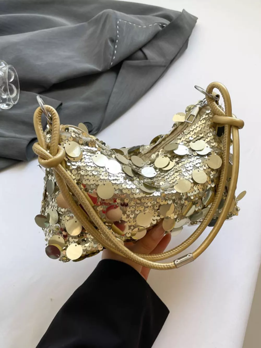- Material:Sequin,PU Leather