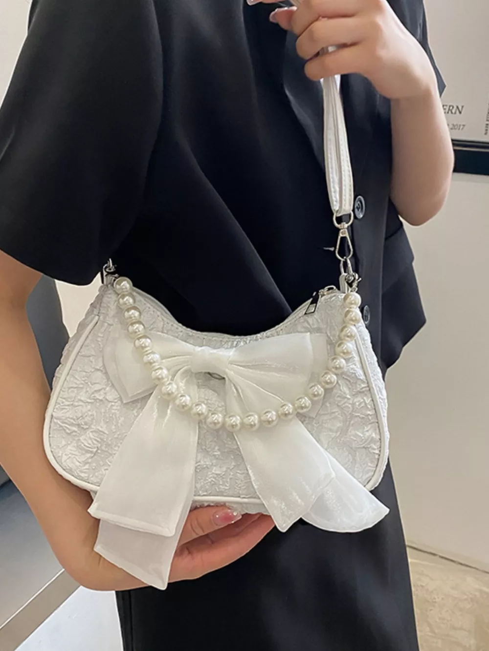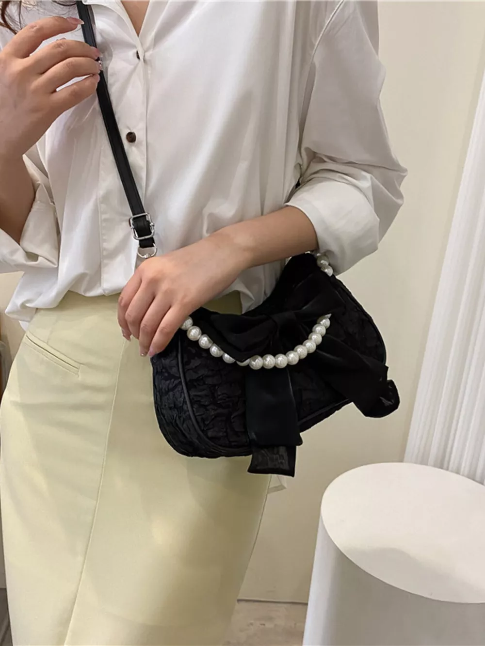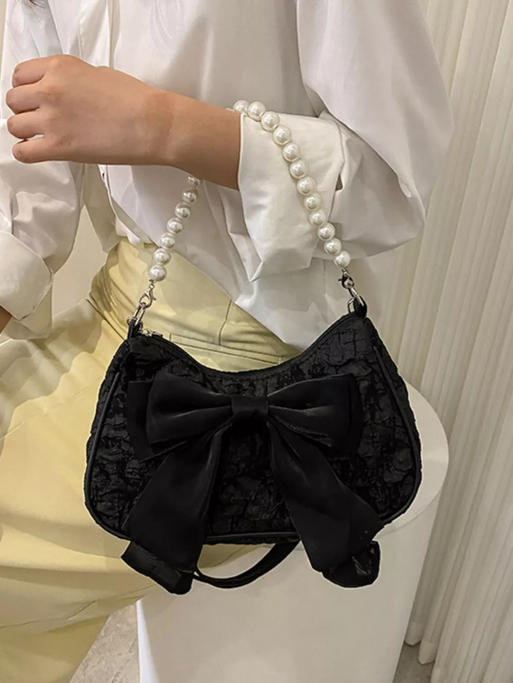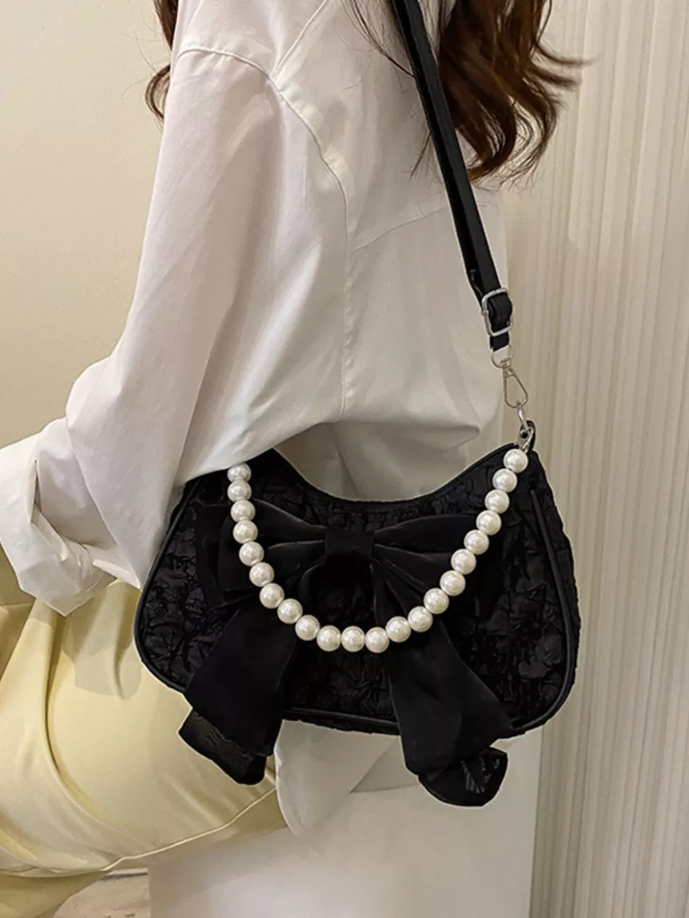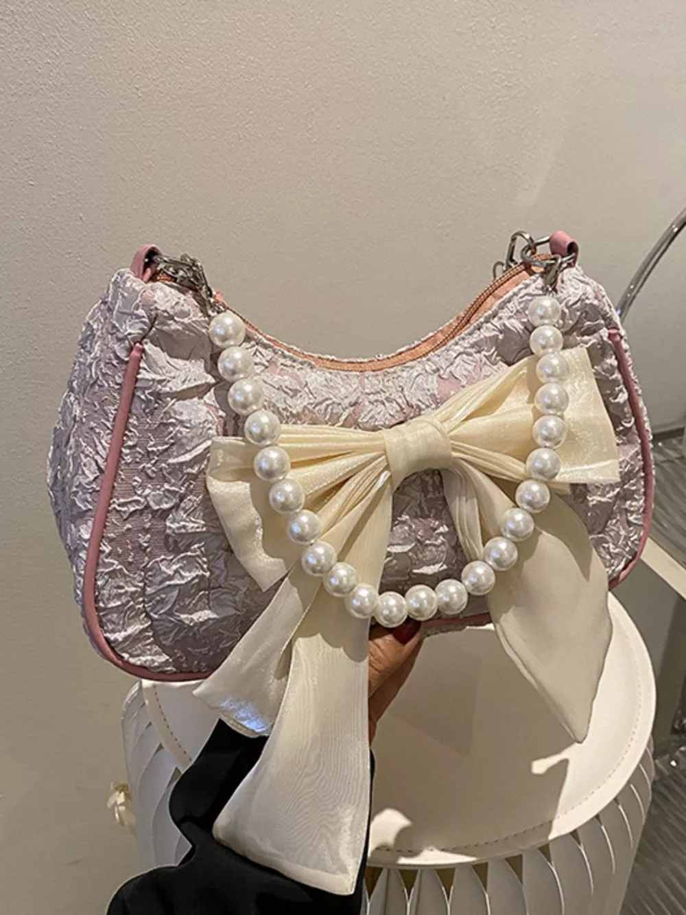 Bow Pearl Chain Crossbody Bag