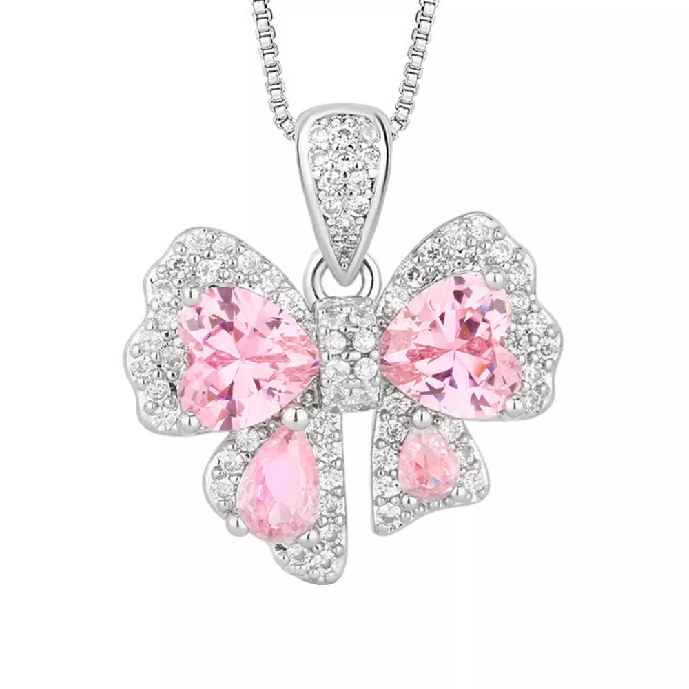 Zircon Bow Pendant Necklace