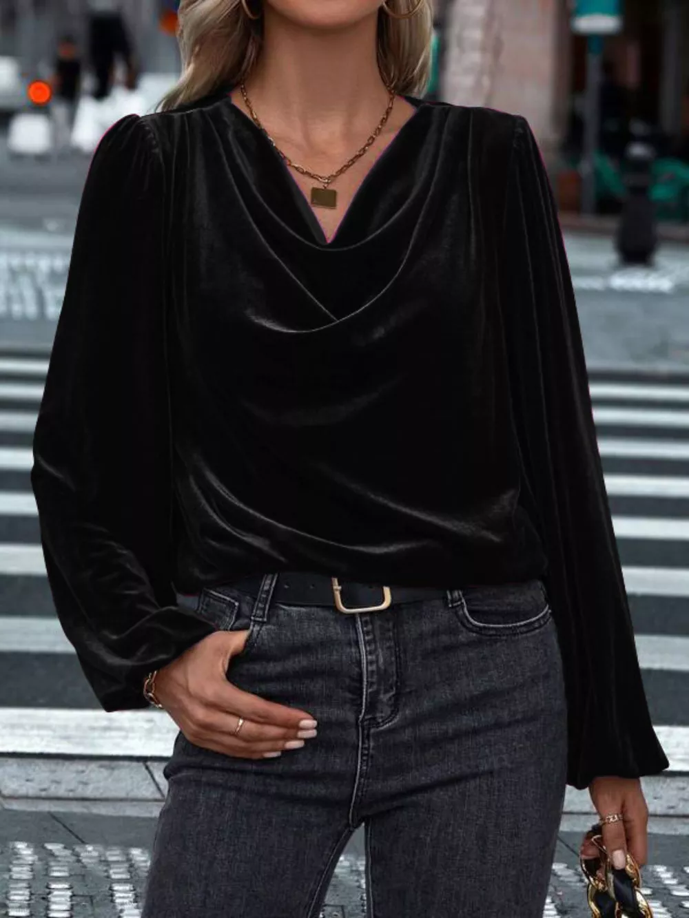 Full Size Velvet Cowl Neck Blouse Plus Size