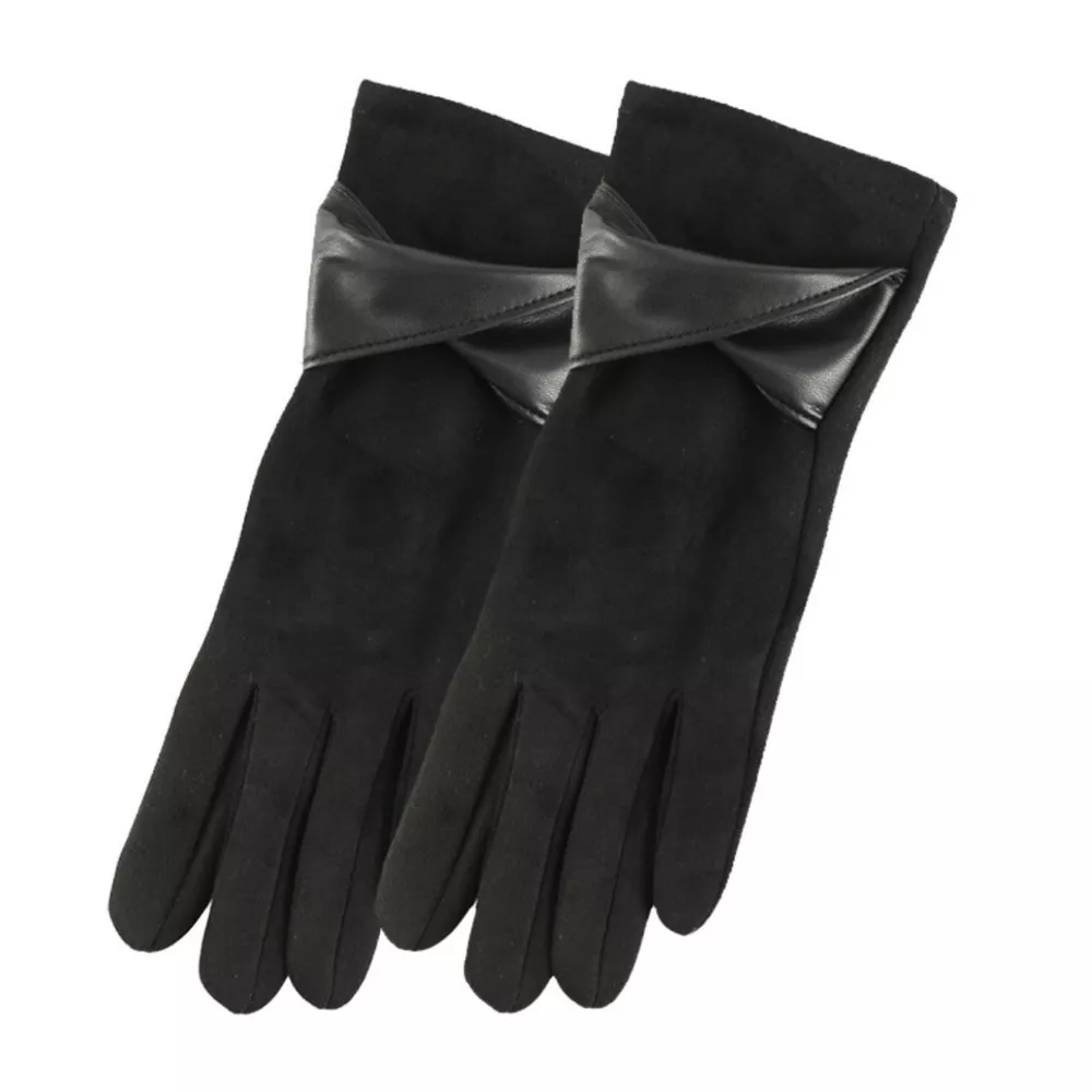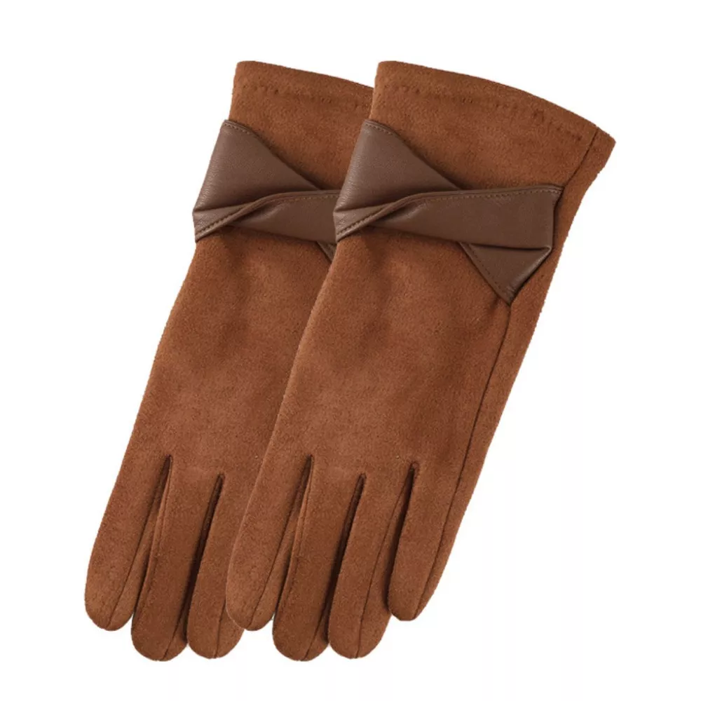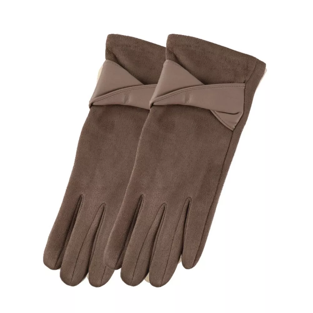 Warm Leather Trimmed Suede Gloves
