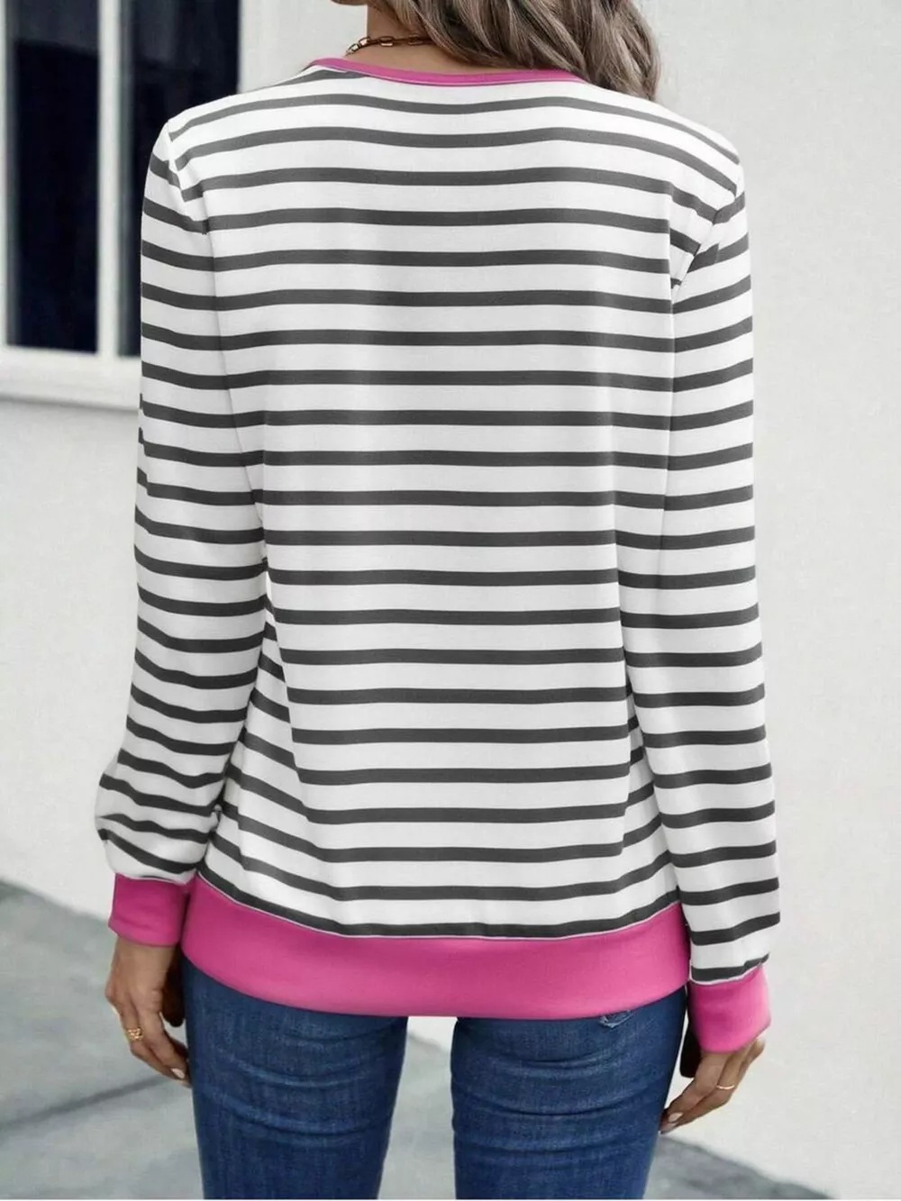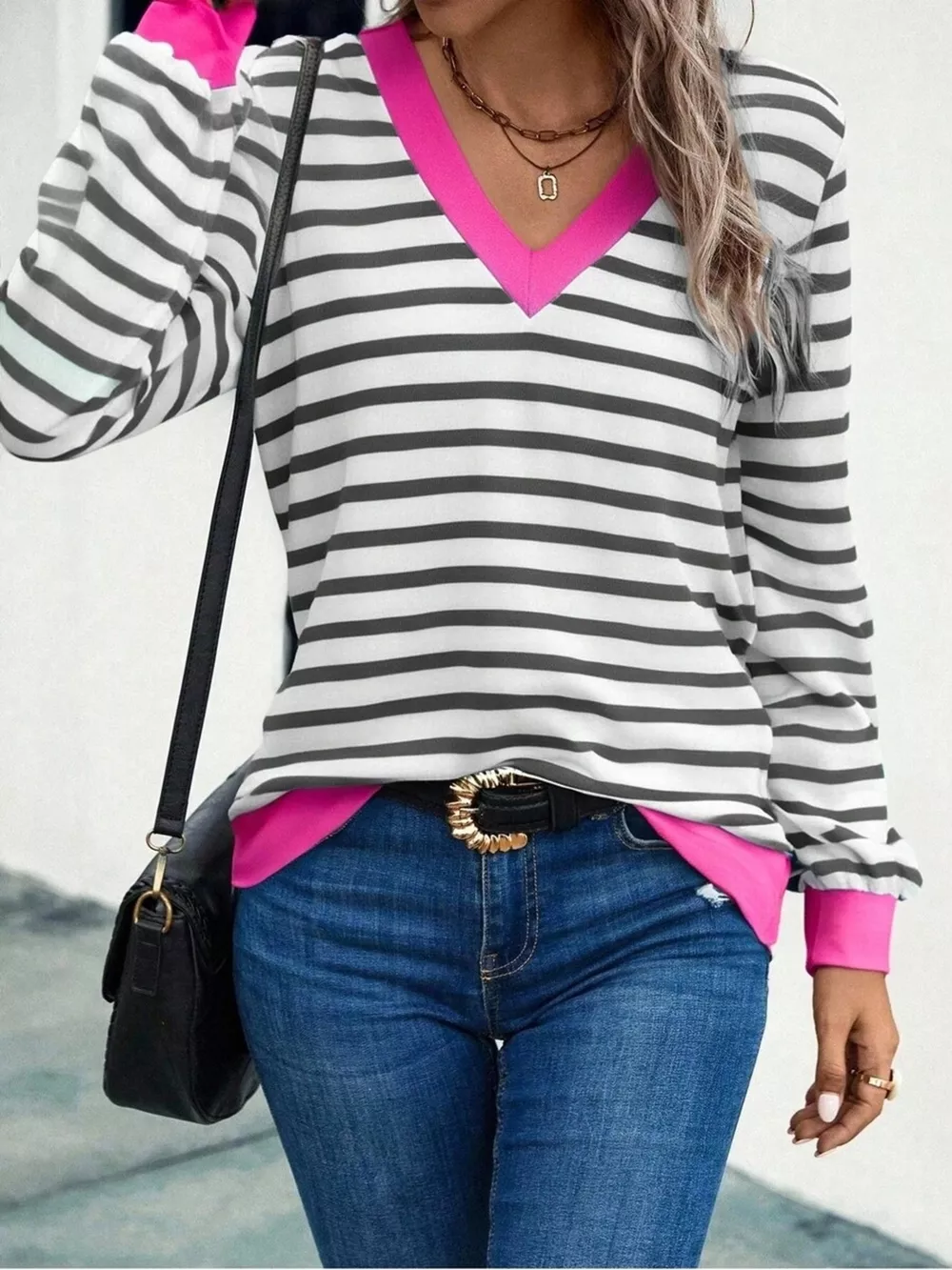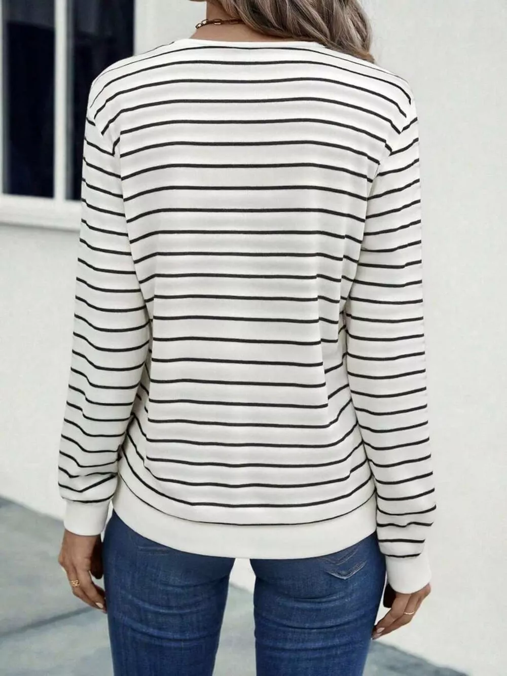 Striped V-Neck Long Sleeve T-Shirt