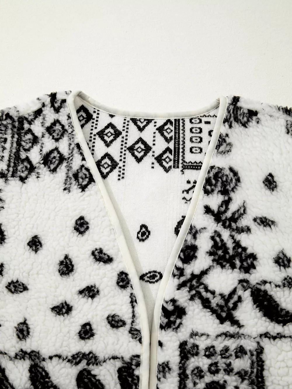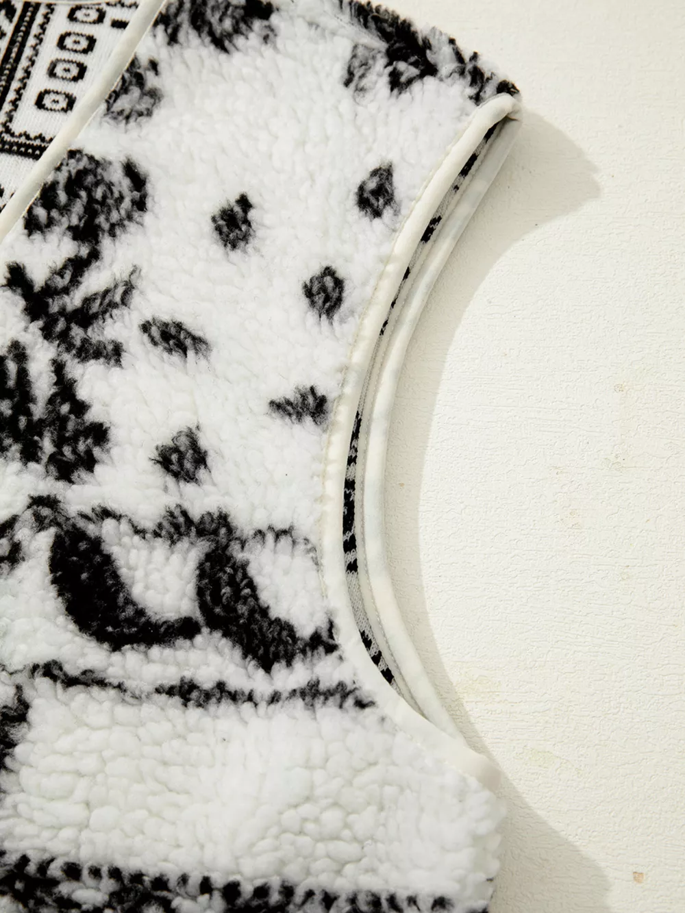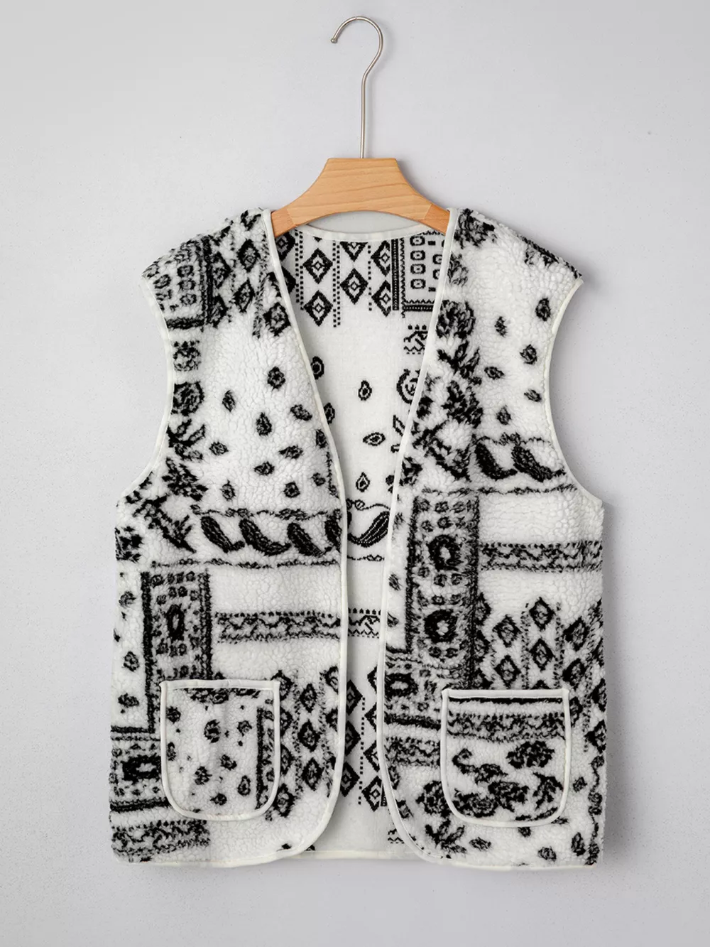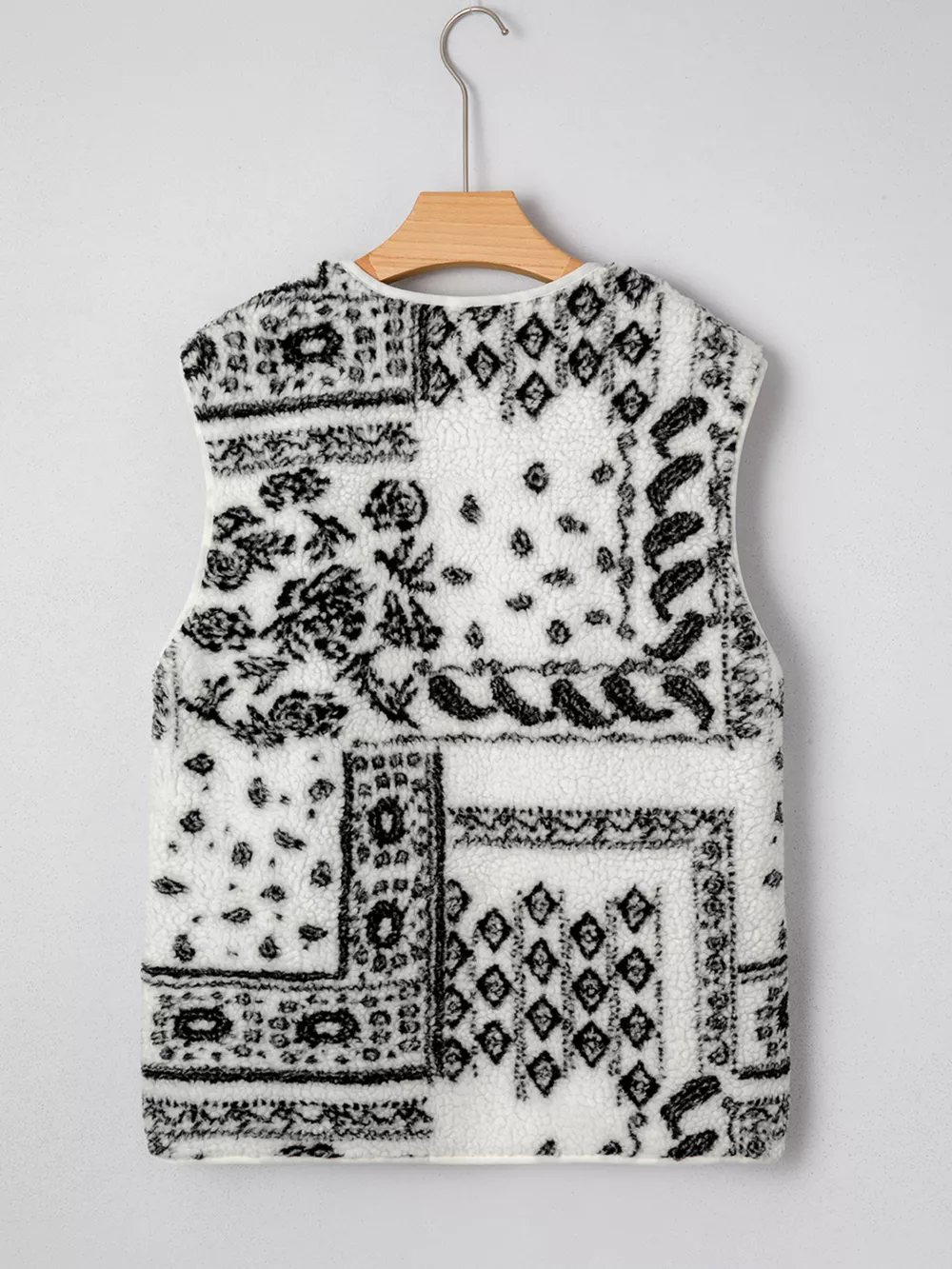 Sherpa Paisley Print Pocketed Western Fashion Vest Jacket