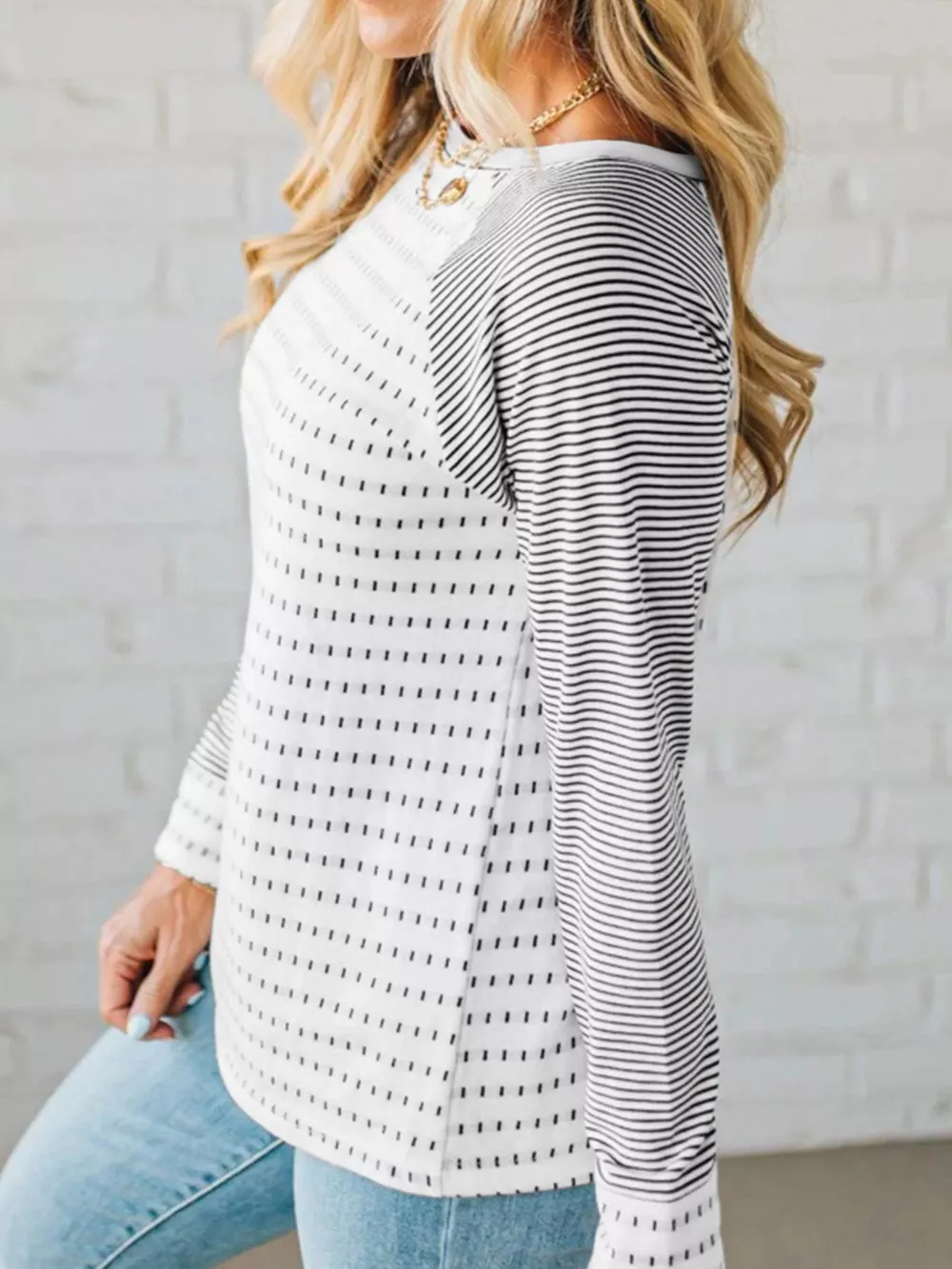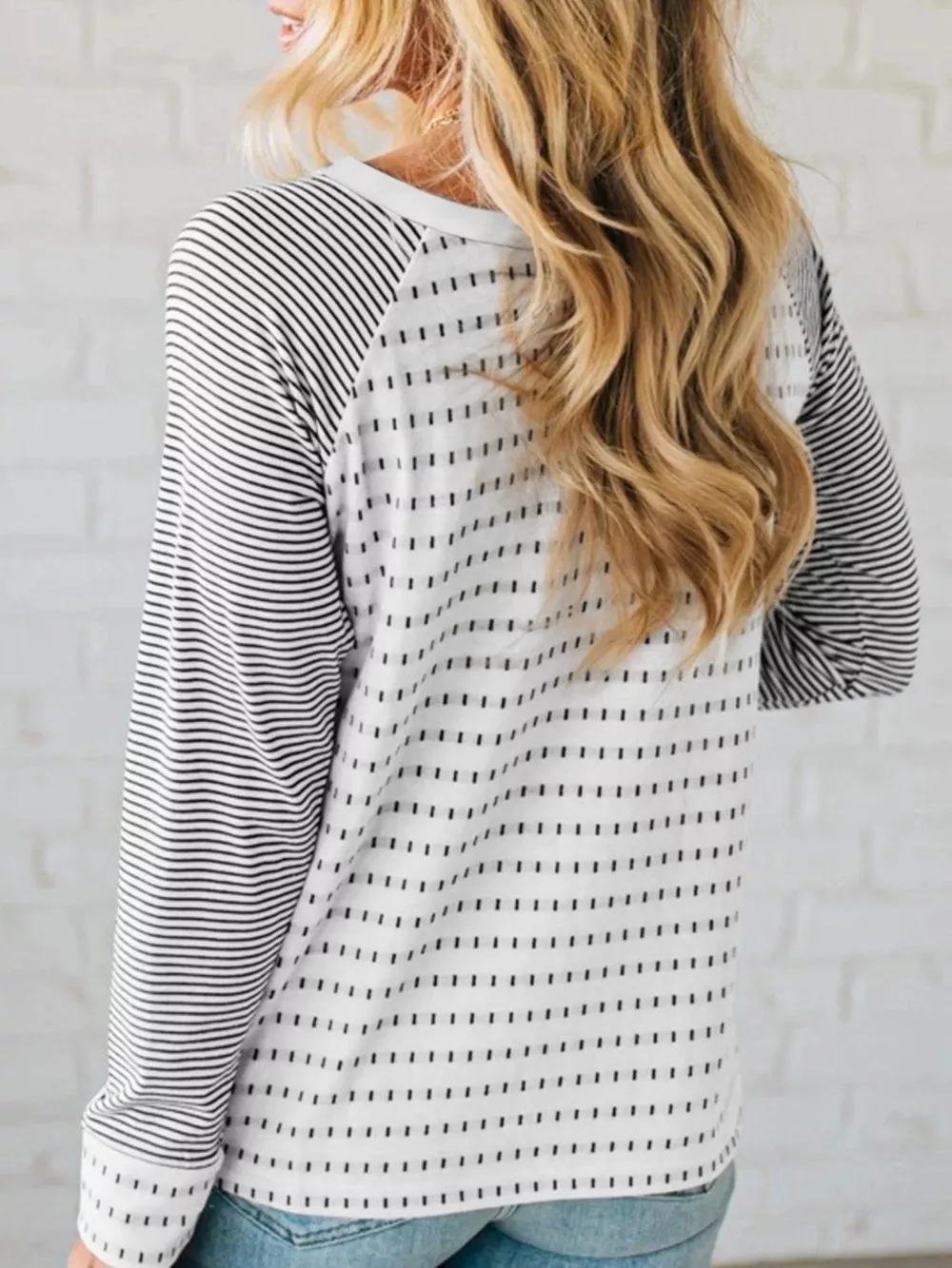 Stripe Raglan Patchwork Long Sleeve Top
