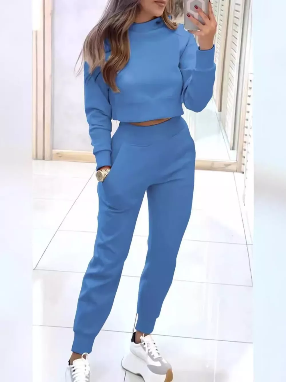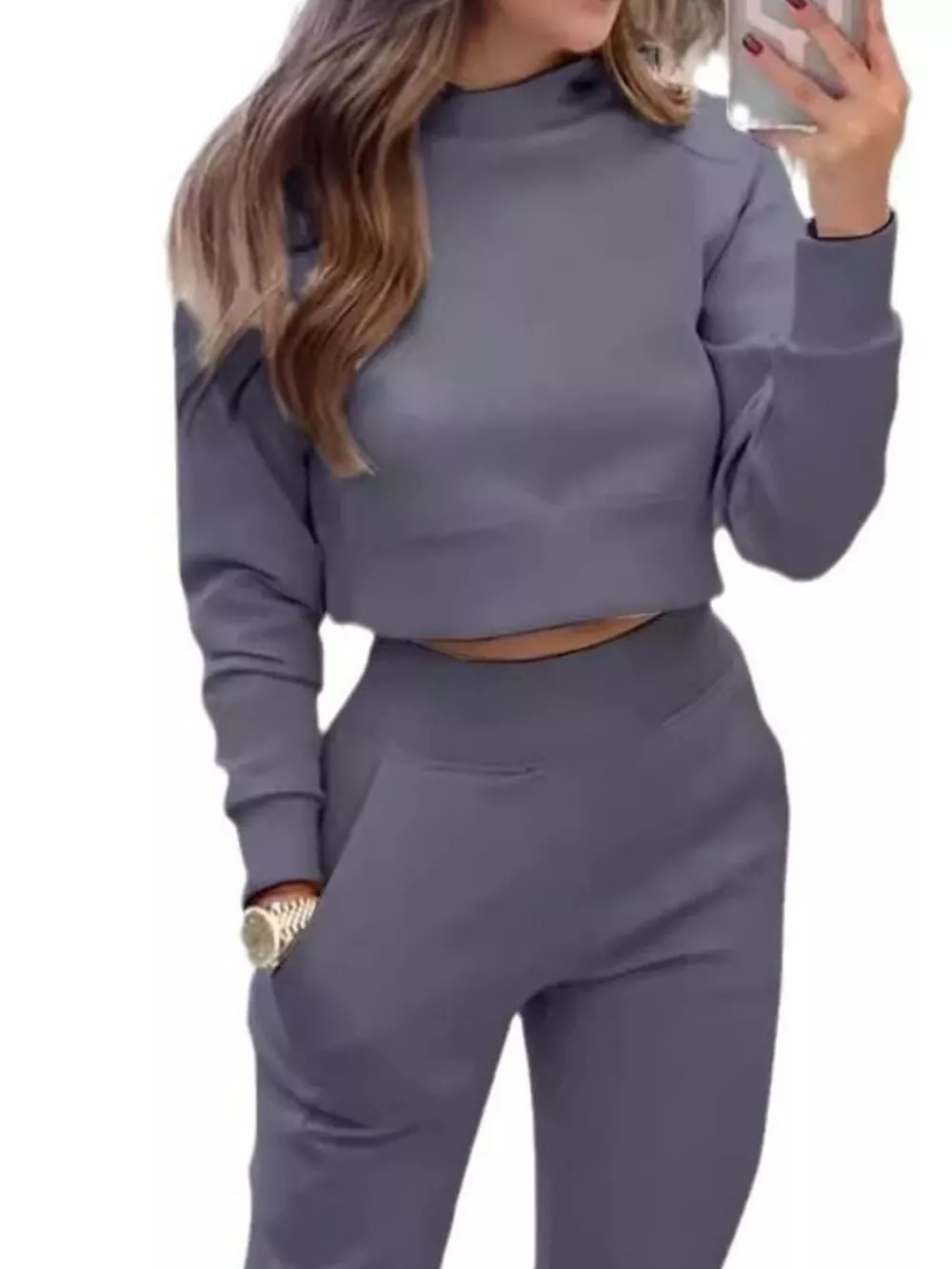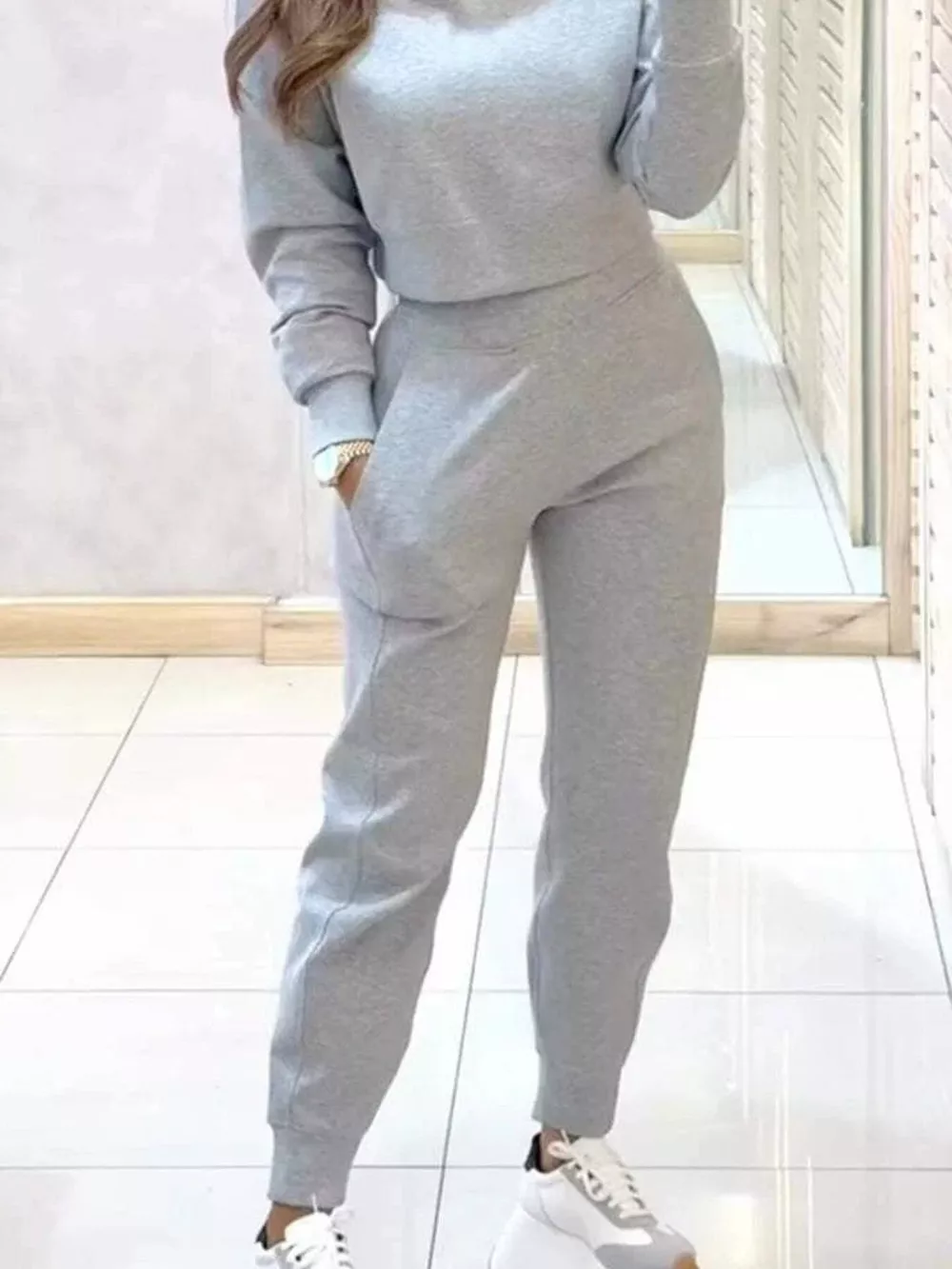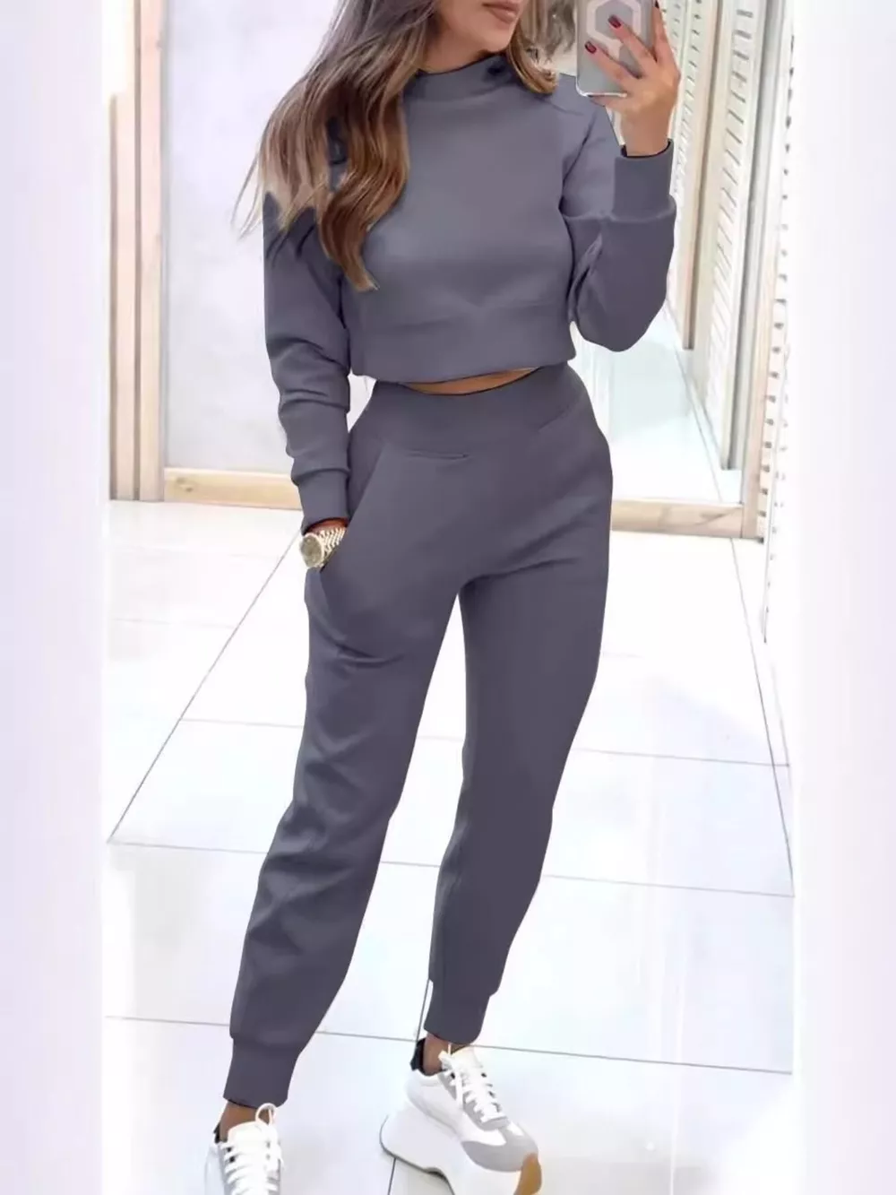 Casual Chic Cropped Sweatshirt and Jogger Set