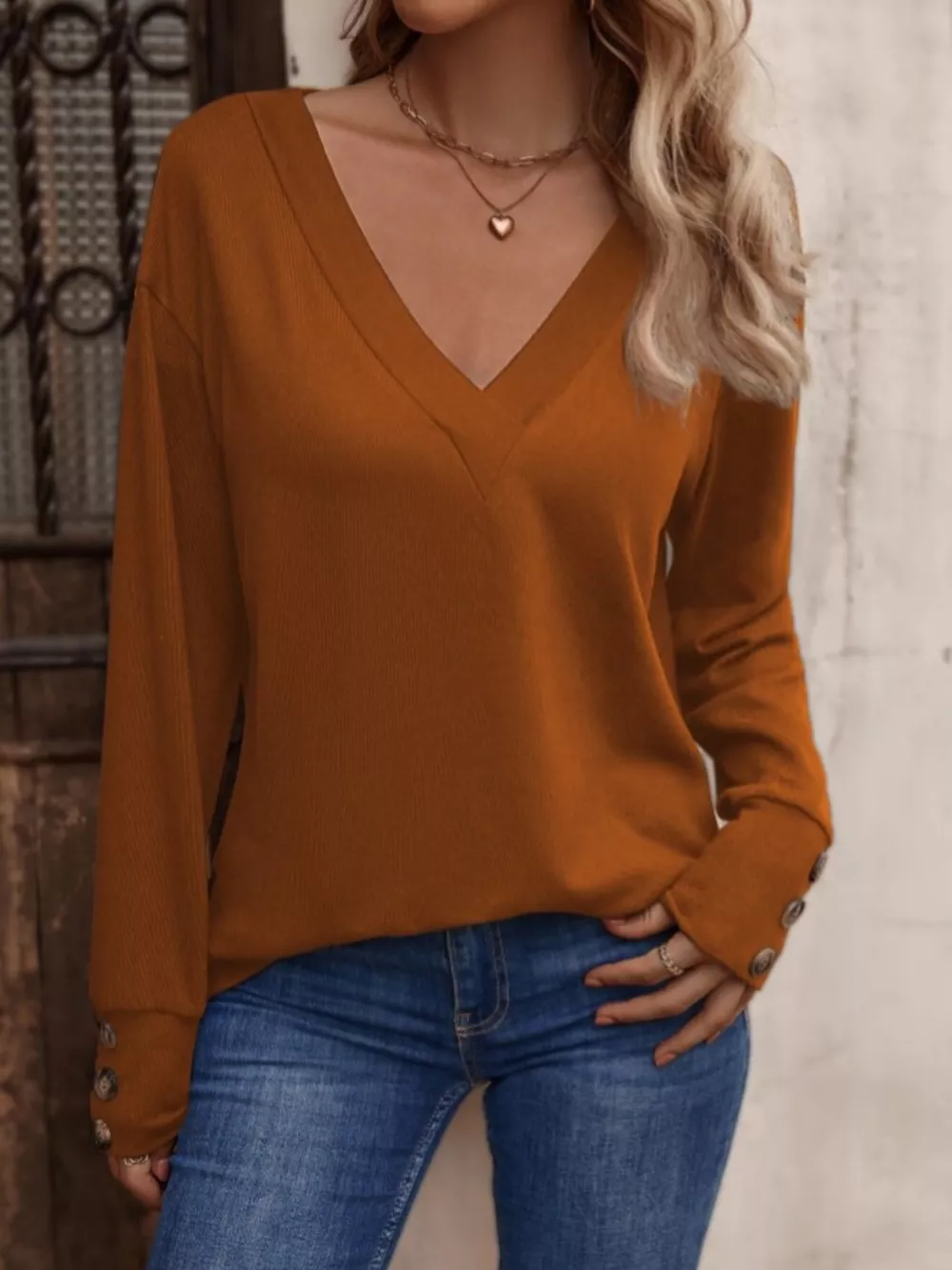 V-Neck Long Sleeve T-Shirt